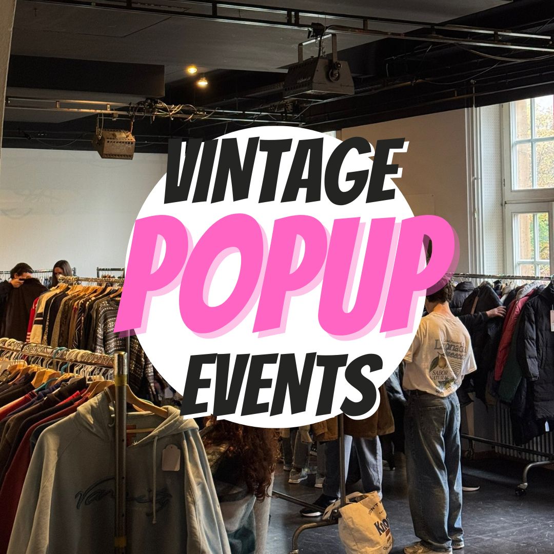 Jede Woche sind wir mit unseren PopUp Events in Städten in ganz Deutschland unterwegs mit bis zu zwei Tonnen handverlesener Kleidung im Gepäck. Sichere dir ein kostenloses Ticket, shoppe einzigartige Einzelstücke und erlebe Vintage live vor Ort.