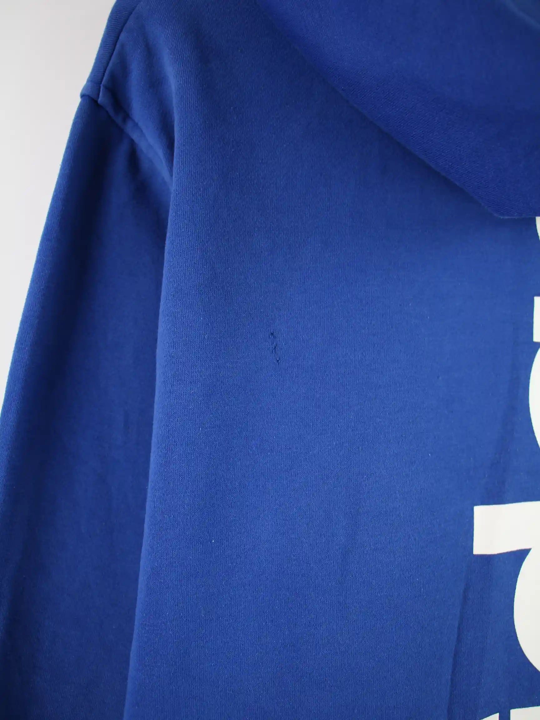 Hoodie der Brand Adidas in Größe XL. Er ist aus einer Baumwollmischung gefertigt und in Blau auf Lager. Mit schönem Trefoil Print.
