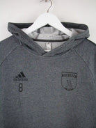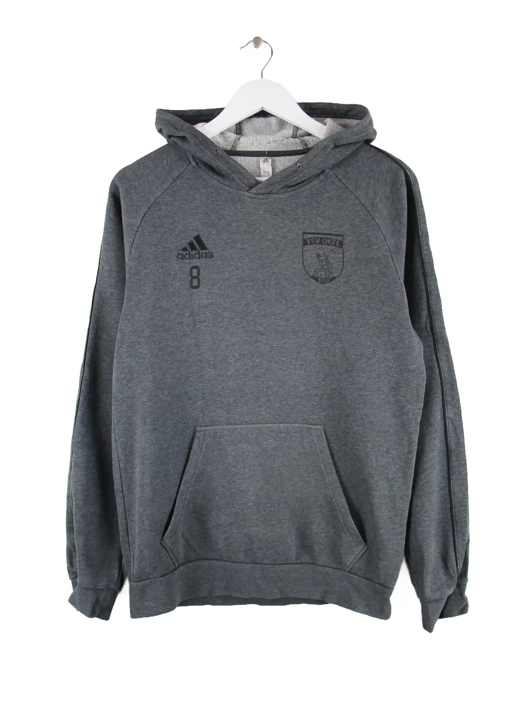 Grauer Hoodie vom Label Adidas in Größe S. Er ist aus einer Baumwollmischung angefertigt und in gutem Zustand in Stock. Mit seltenem Print.