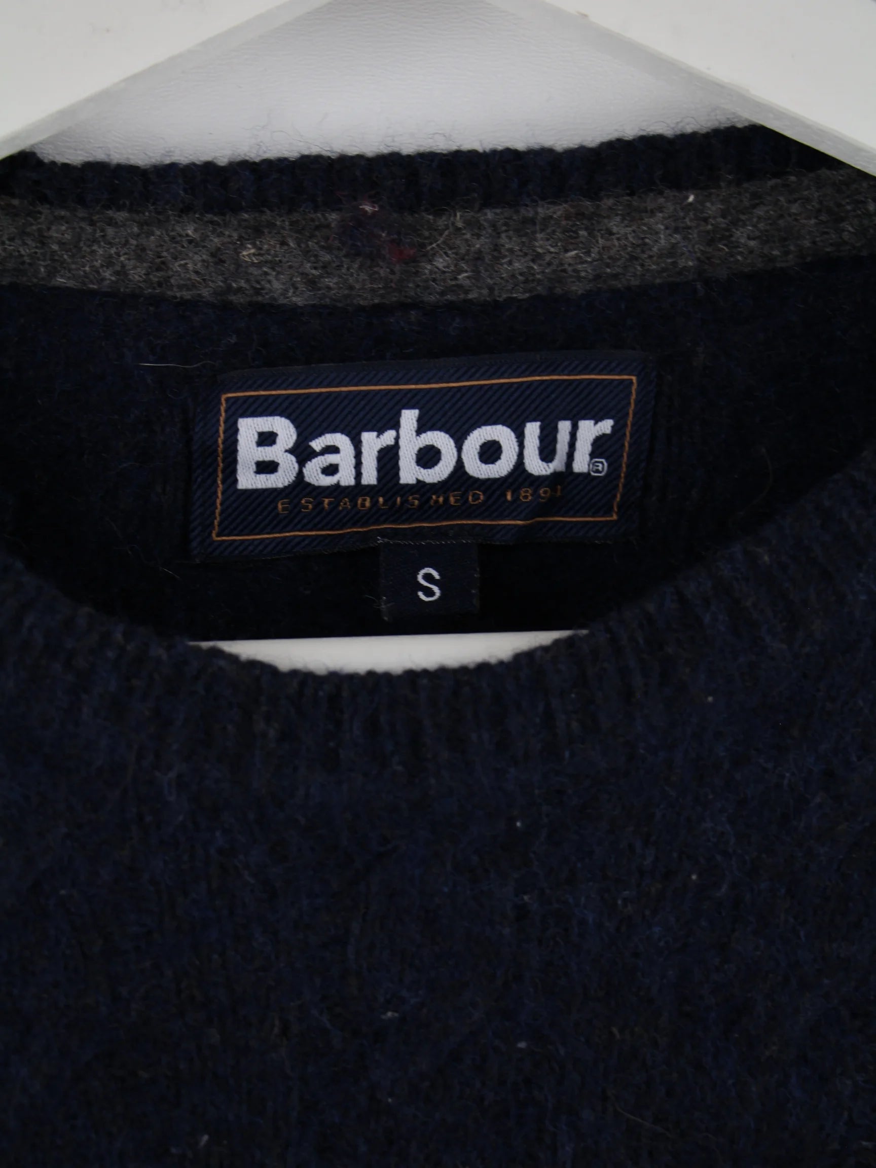 Blauer Pullover von Barbour in Größe S. Er ist aus einer Wollmischung angefertigt und in gutem Zustand lieferbar.