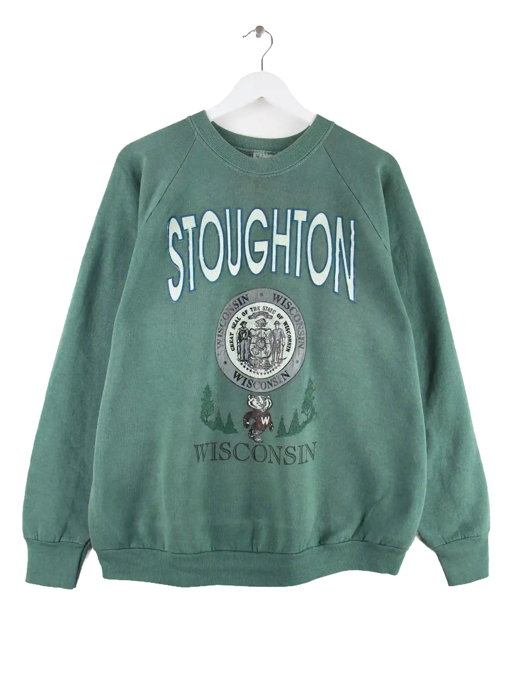 Fruit of the Loom 80s Vintage Stoughton Wisconsin Sweater Grün XL