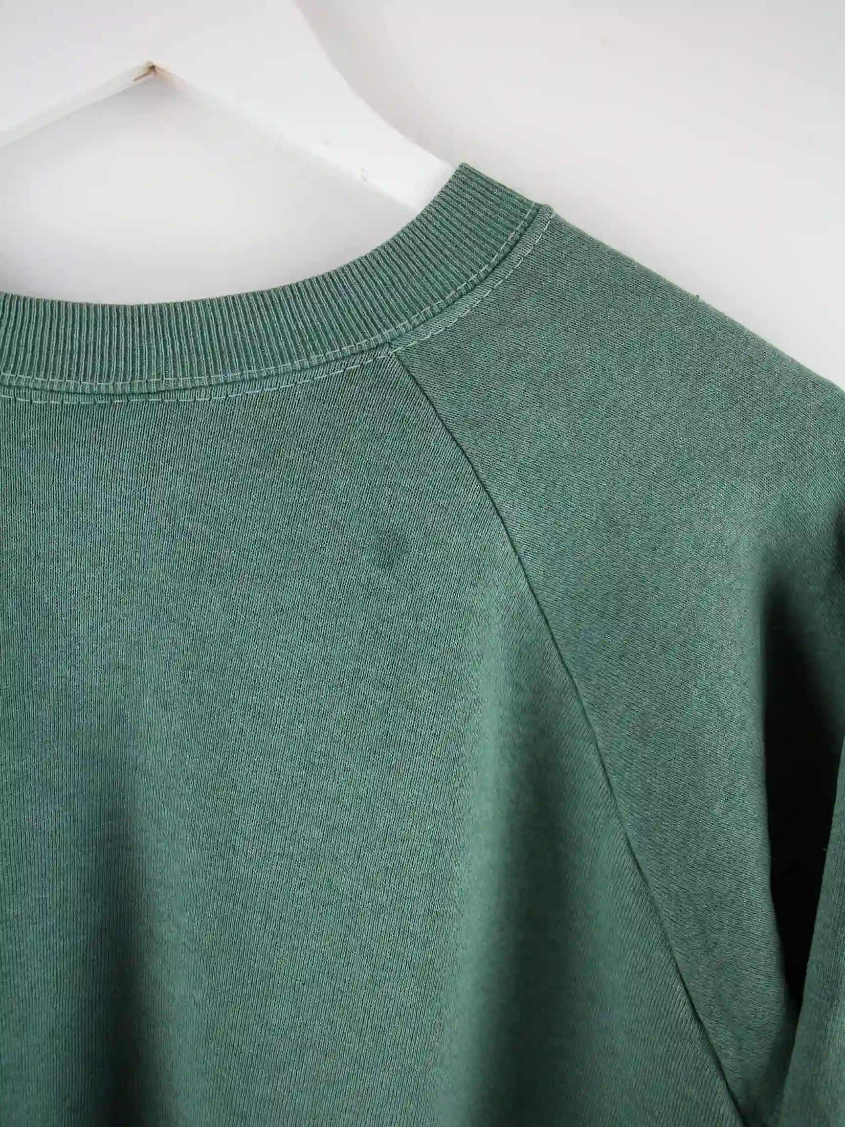 Sweater des Labels Fruit of the Loom in Größe XL aus den 80'ern. Er ist aus einer Baumwollmischung produziert und in Grün bei uns zu bekommen.