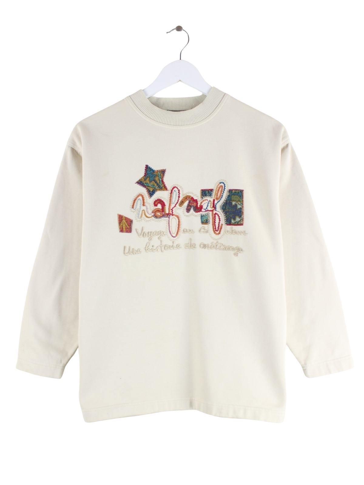 Beigefarbener Sweater vom Label Naf Naf aus den 90'ern in Größe S. Er ist aus einer Baumwollmischung angefertigt. Den Zustand würden wir als 'In Ordnung' bezeichnen (vergl. Bilder).