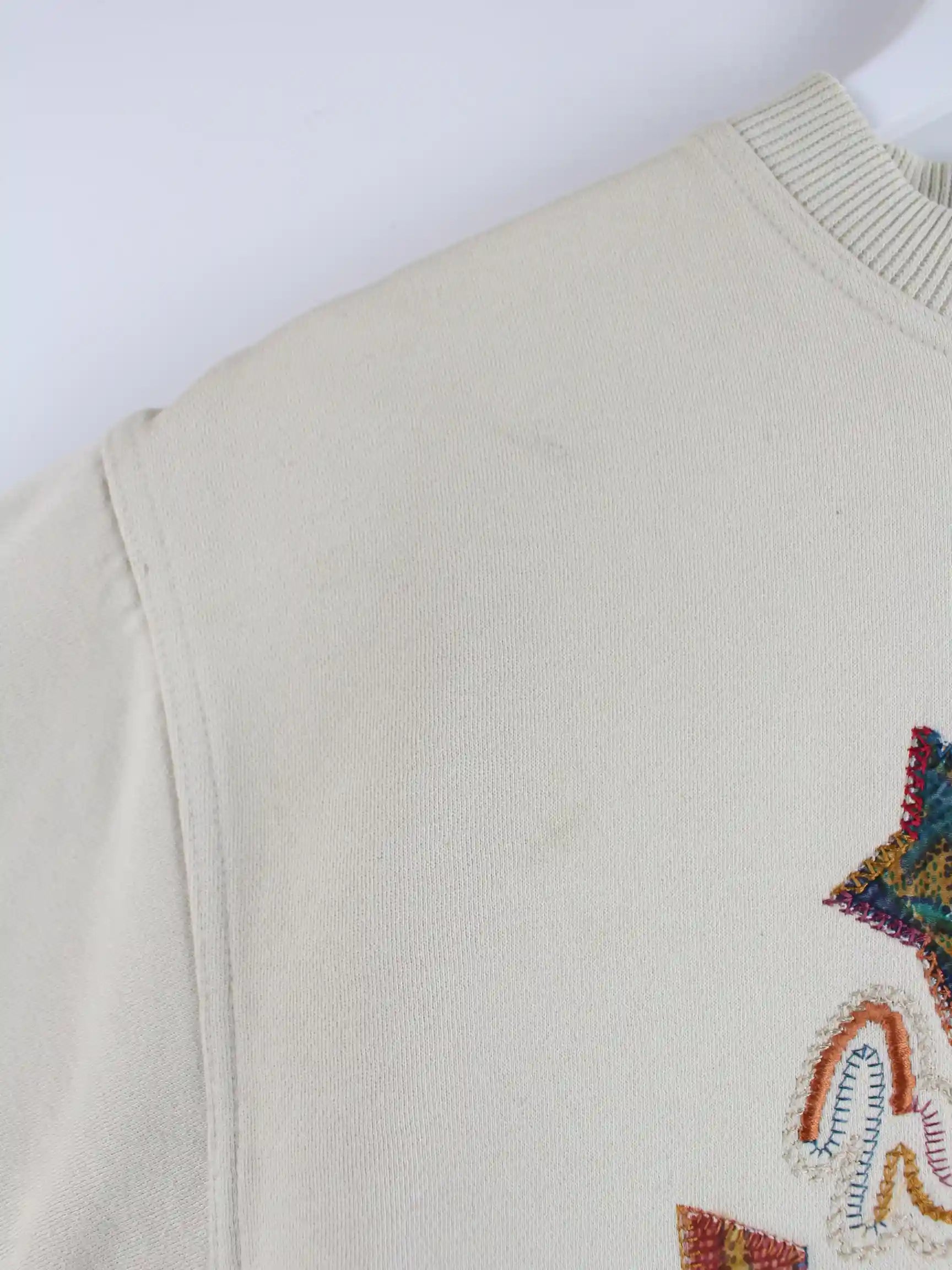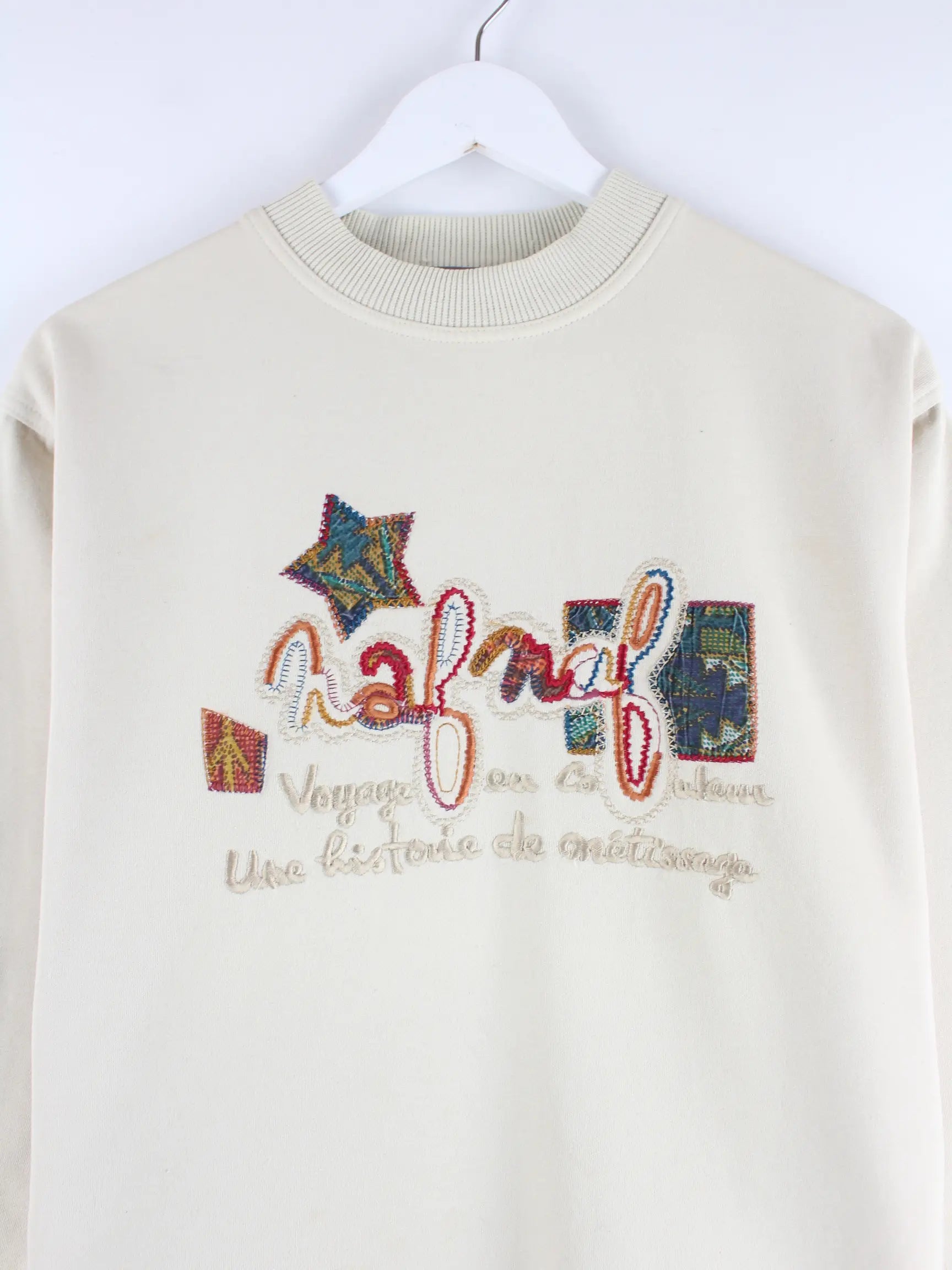 Naf Naf Damen 90s Vintage Crazy Big Logo Sweater Beige S