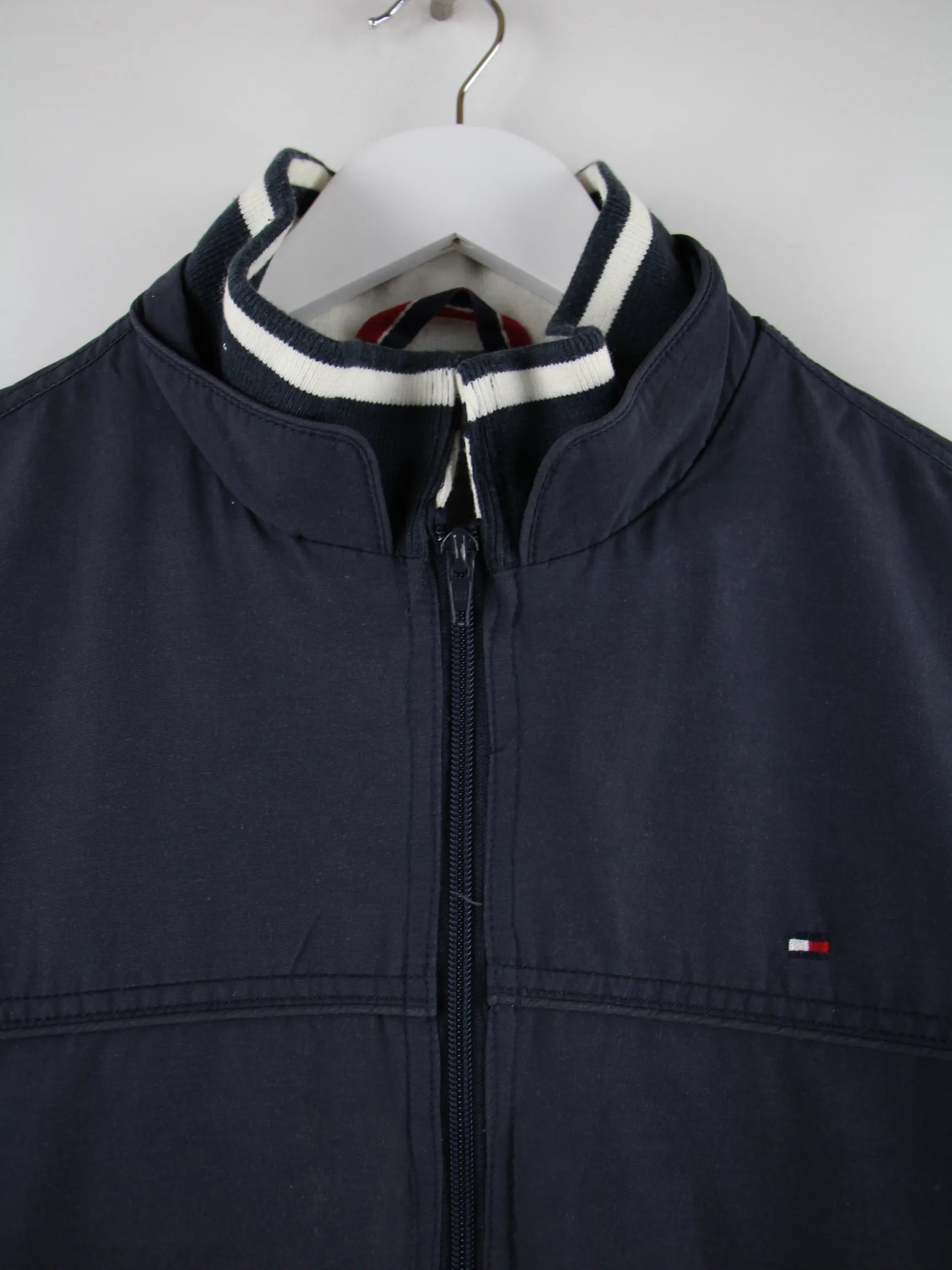 Blaue Leichte Jacke der Marke Tommy Hilfiger in Größe L. Sie ist aus Synthetik und in gutem Zustand auf Lager.