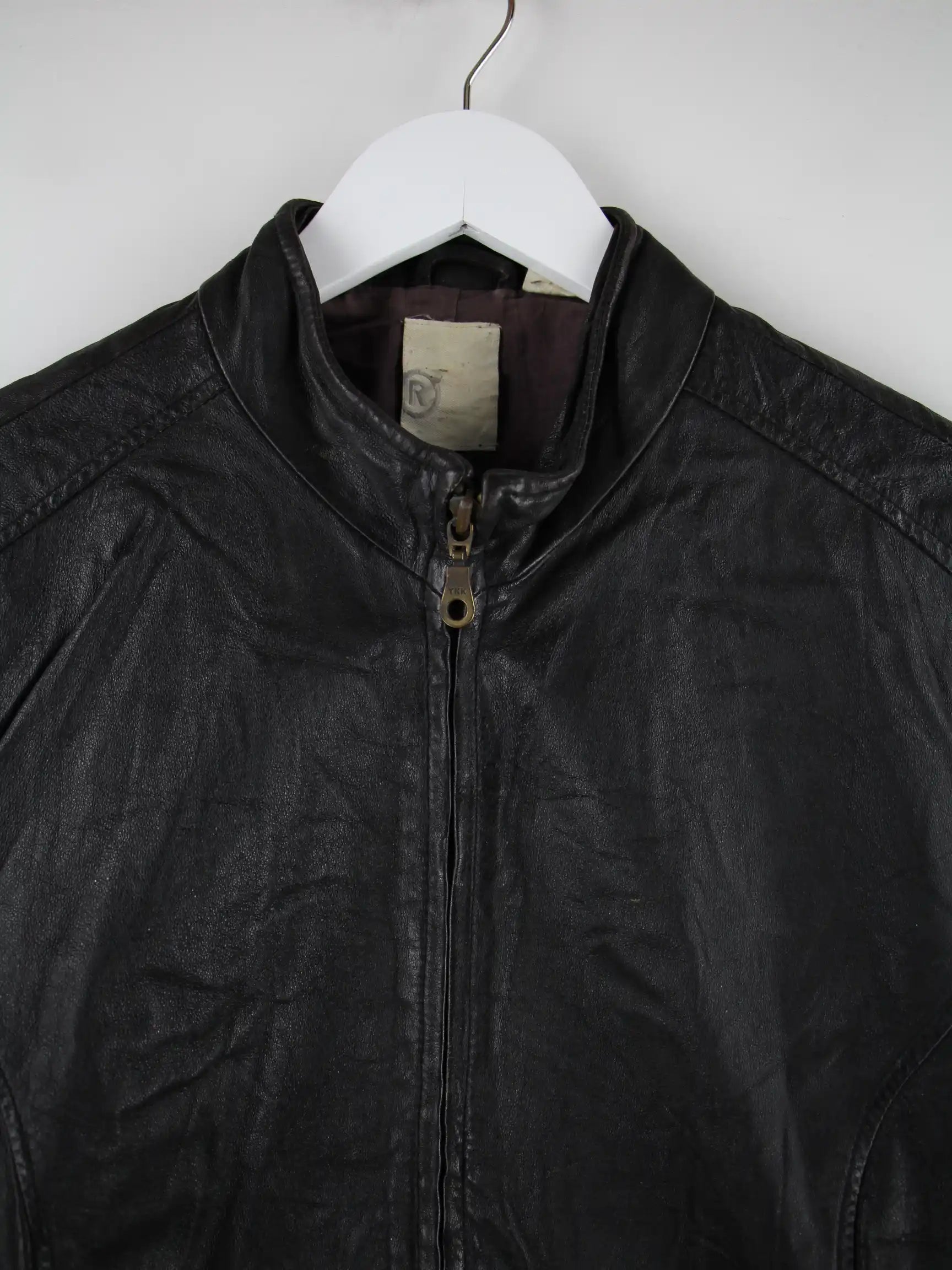 Vintage Jacke in Größe M. Sie ist aus Leder und in Schwarz im Bestand.