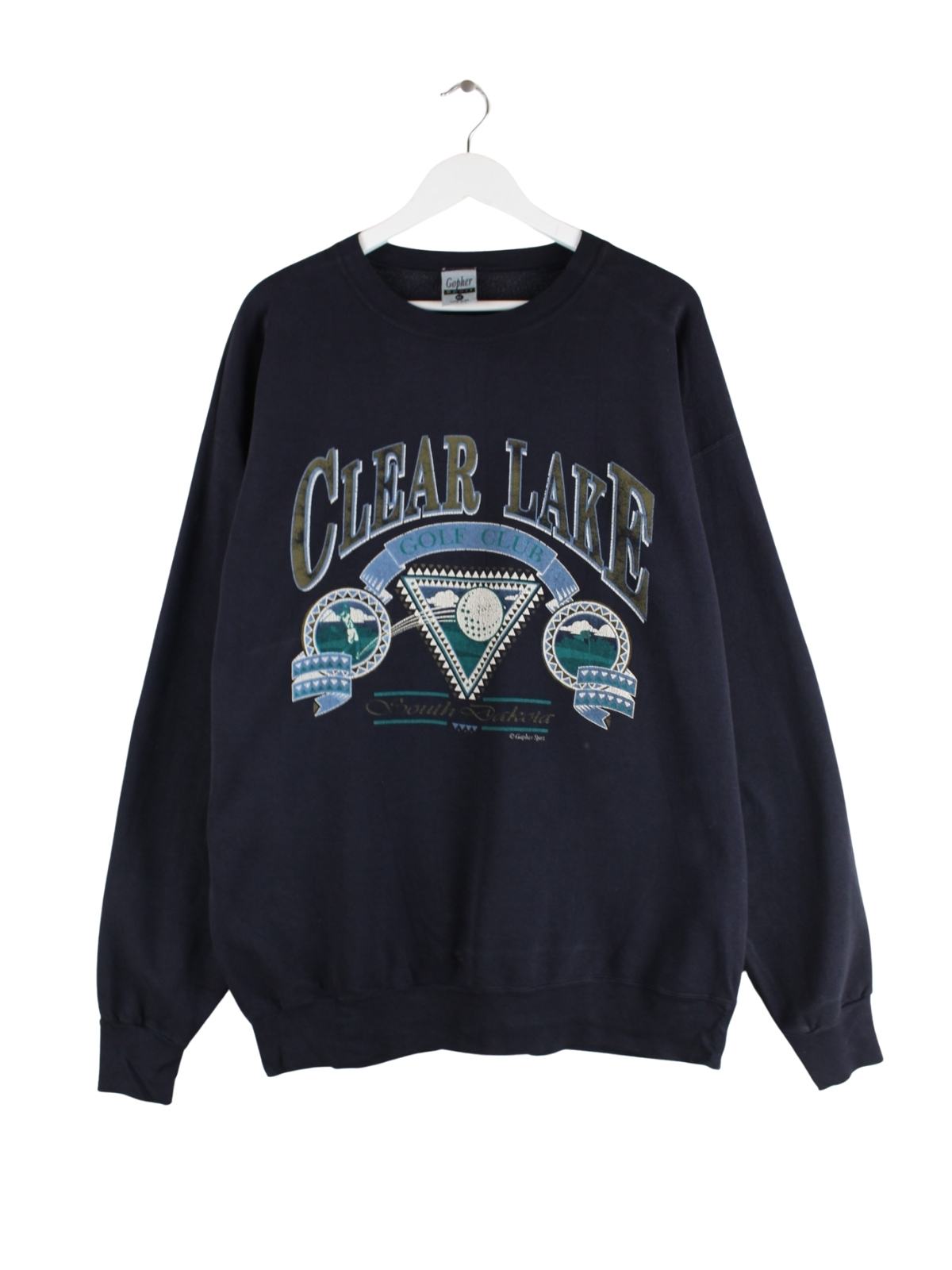 Vintage Sweater in Größe XL. Er ist aus einer Baumwollmischung gefertigt und in Schwarz zu haben. Mit schönem Club Print.