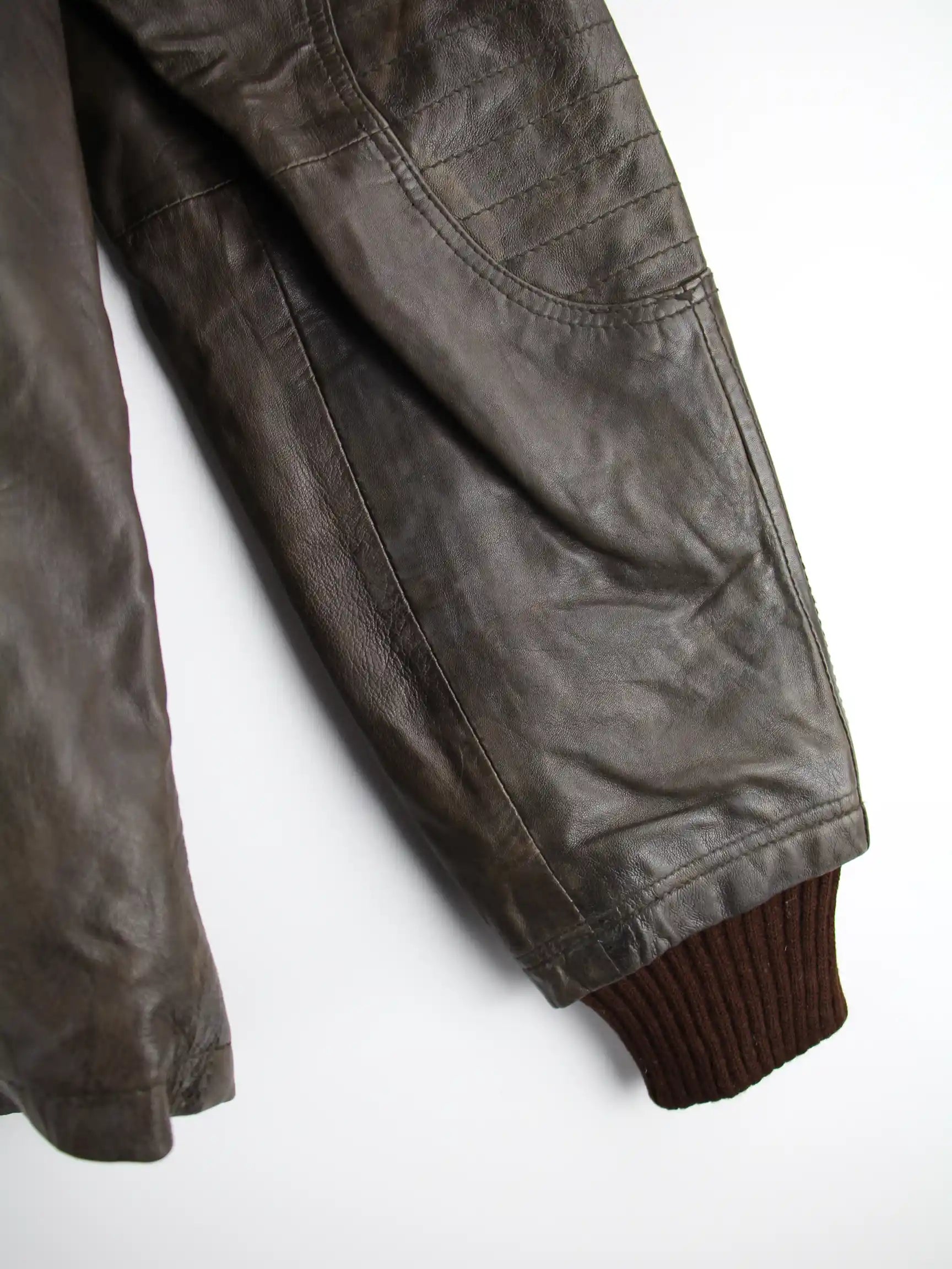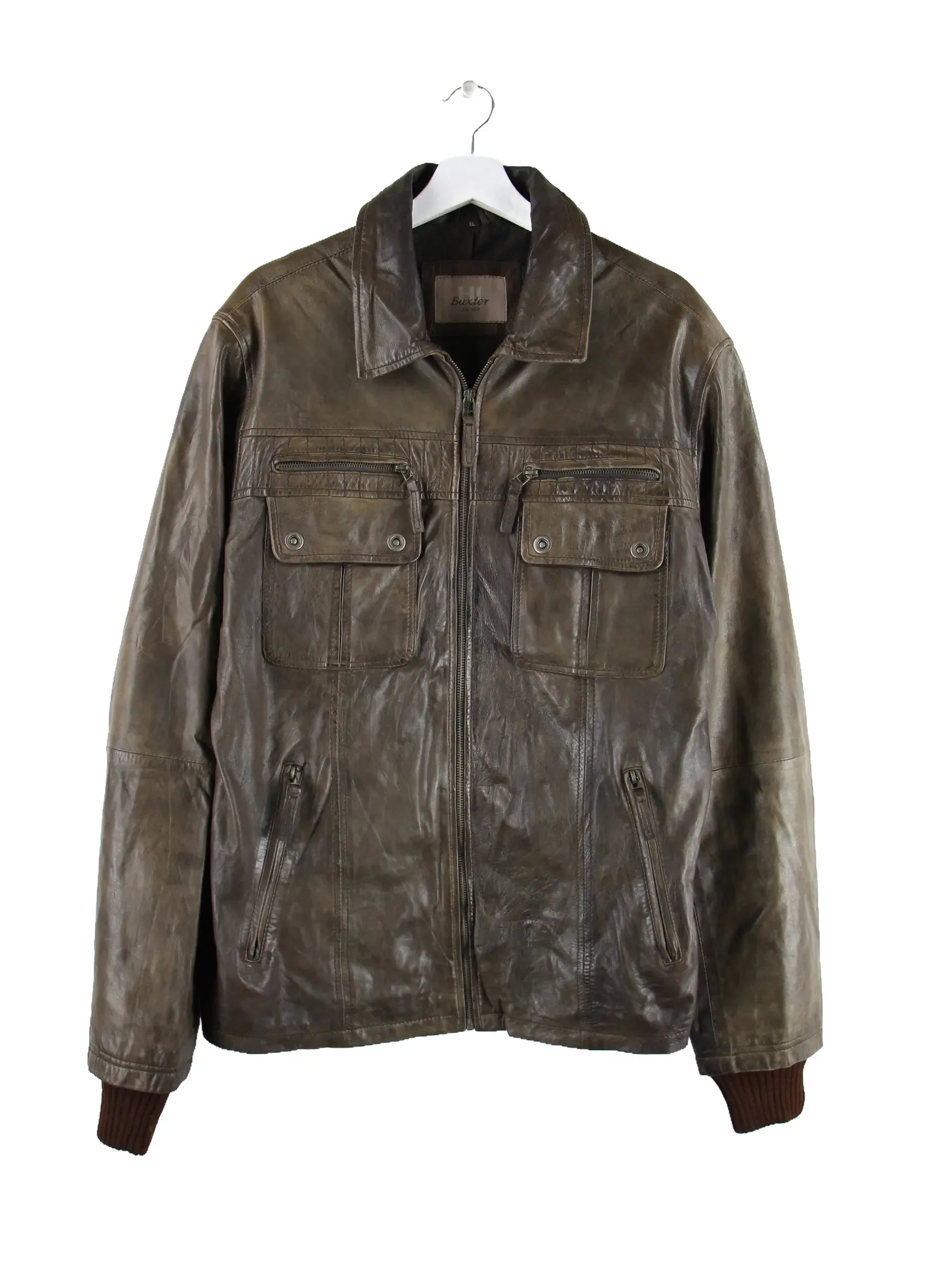 Vintage Jacke in Größe XL. Sie ist aus Leder hergestellt und in Braun in Stock.