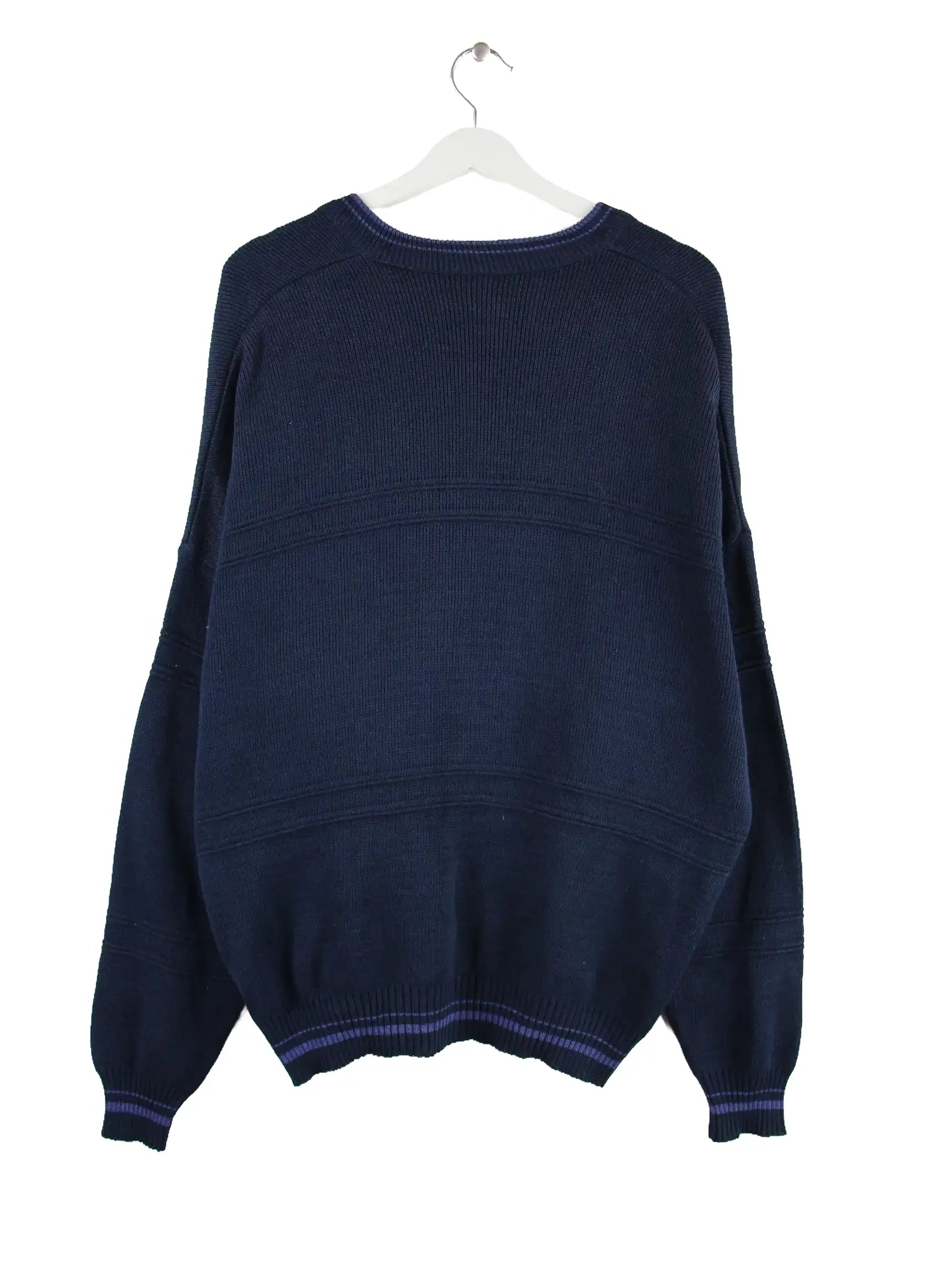 Blaue Vintage Strickjacke aus den 80'ern in Größe M. Sie ist aus einer Synthetikmischung gefertigt und in sehr gutem Zustand im Bestand.