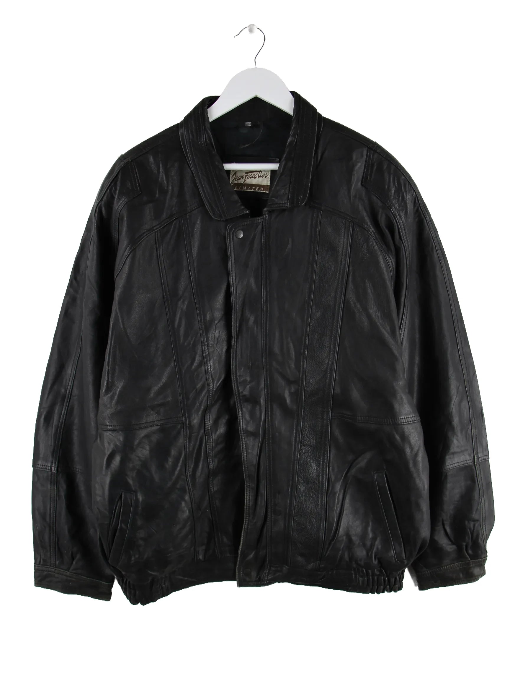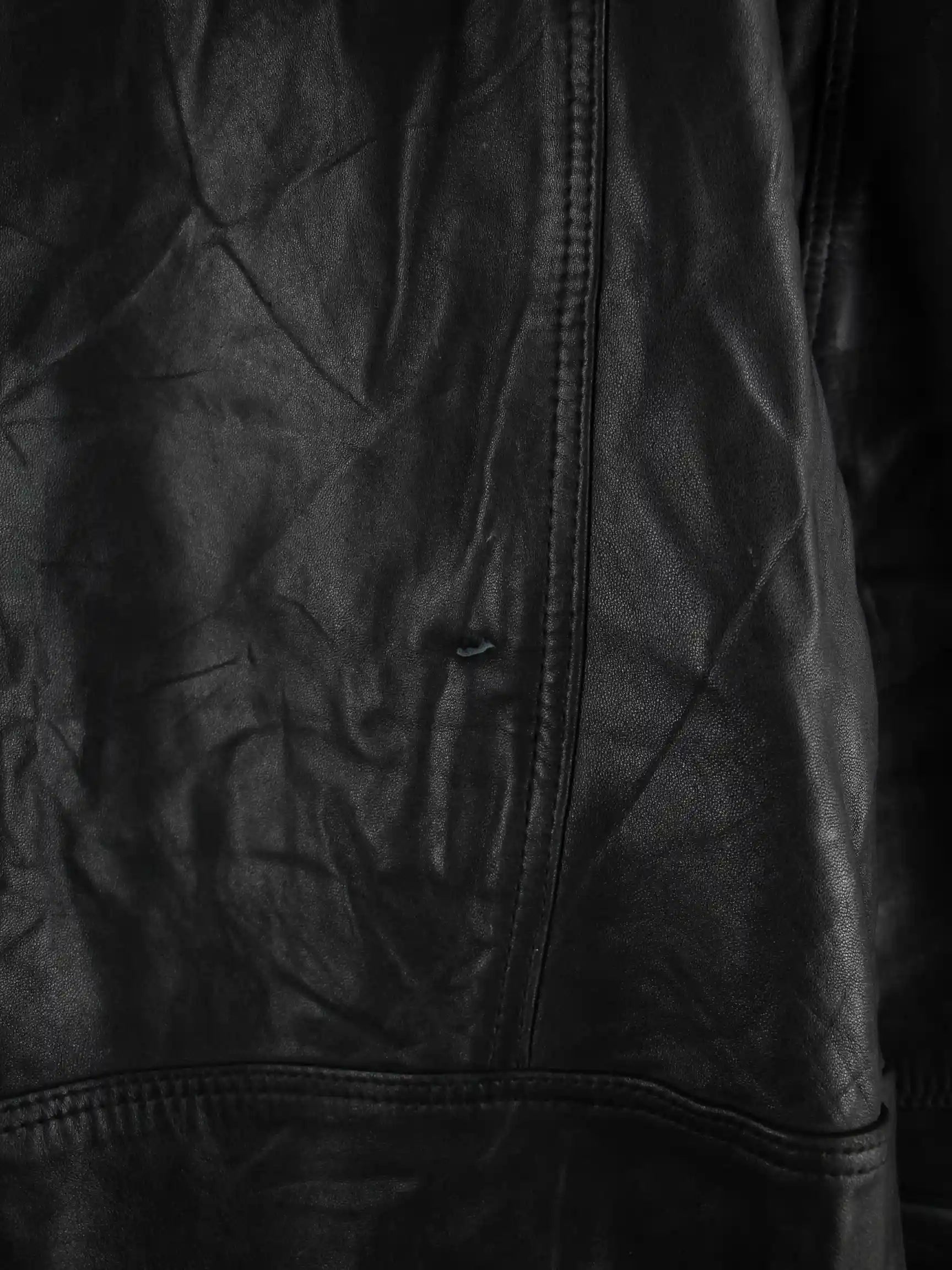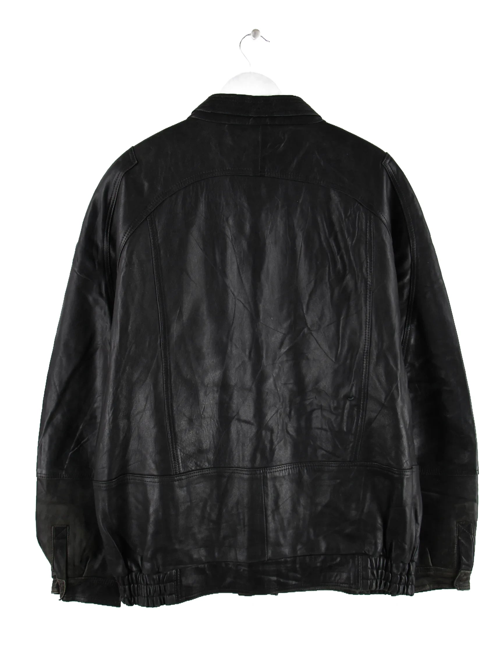 Vintage Jacke in Größe 3XL aus den 90'ern. Sie ist aus Leder und in Schwarz in Stock.