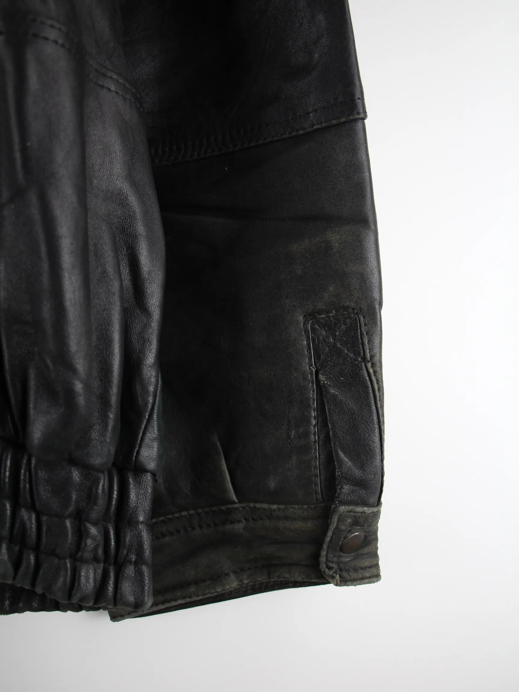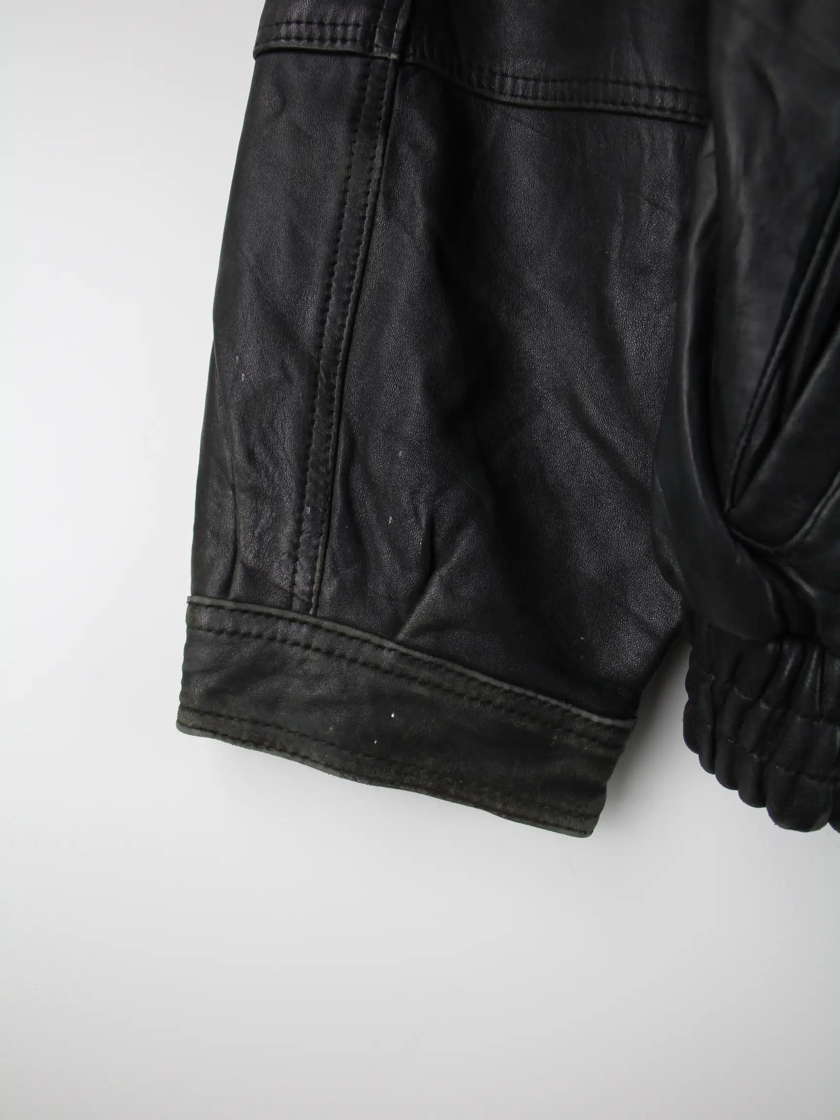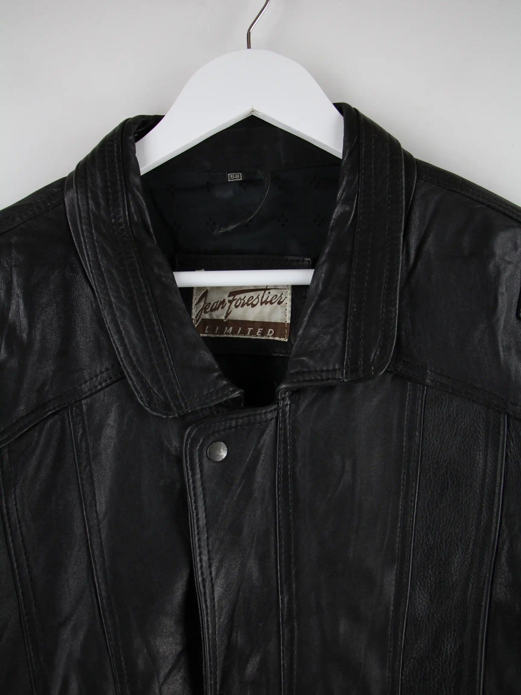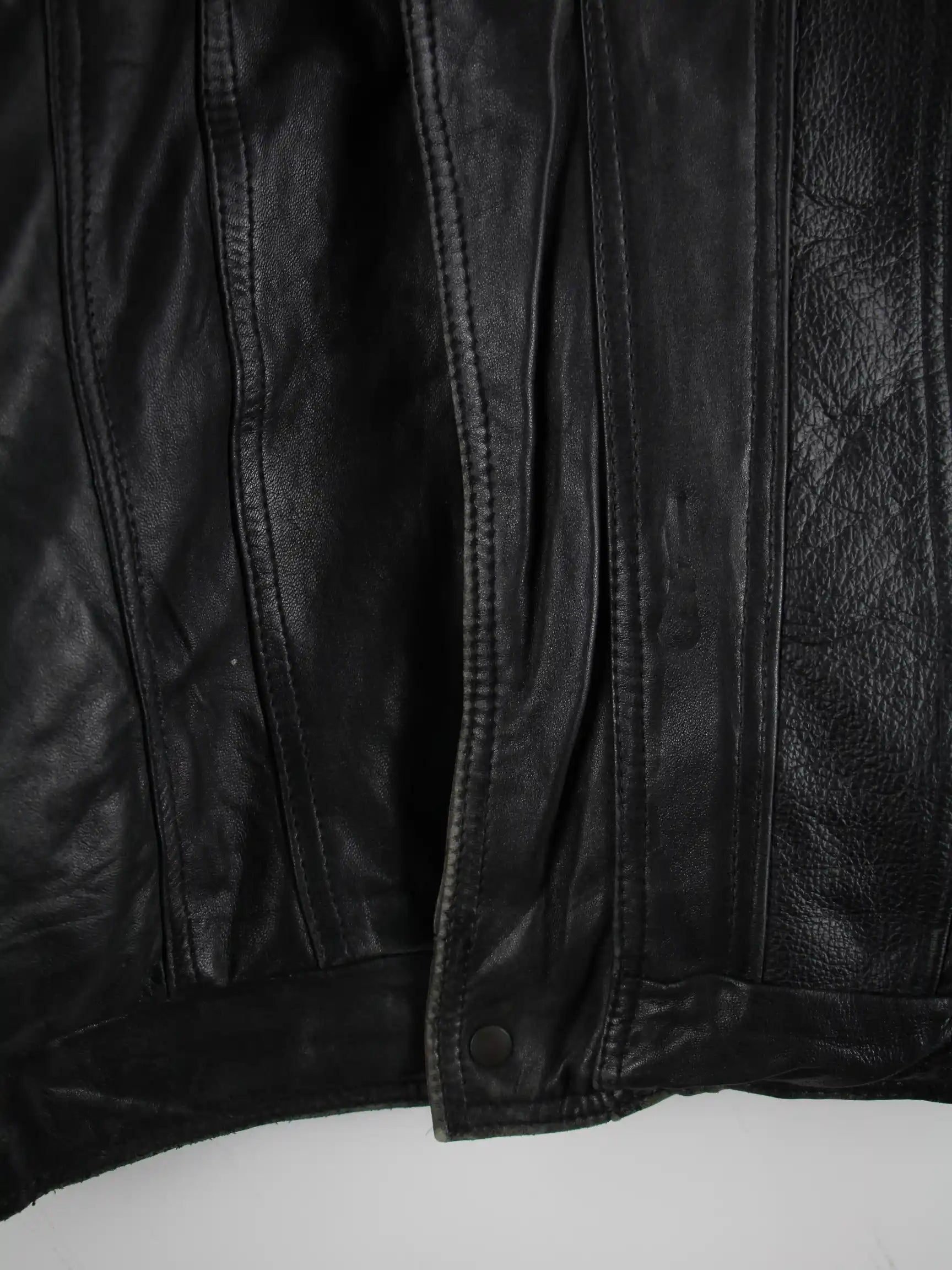 Vintage Jacke in Größe 3XL aus den 90'ern. Sie ist aus Leder und in Schwarz in Stock.