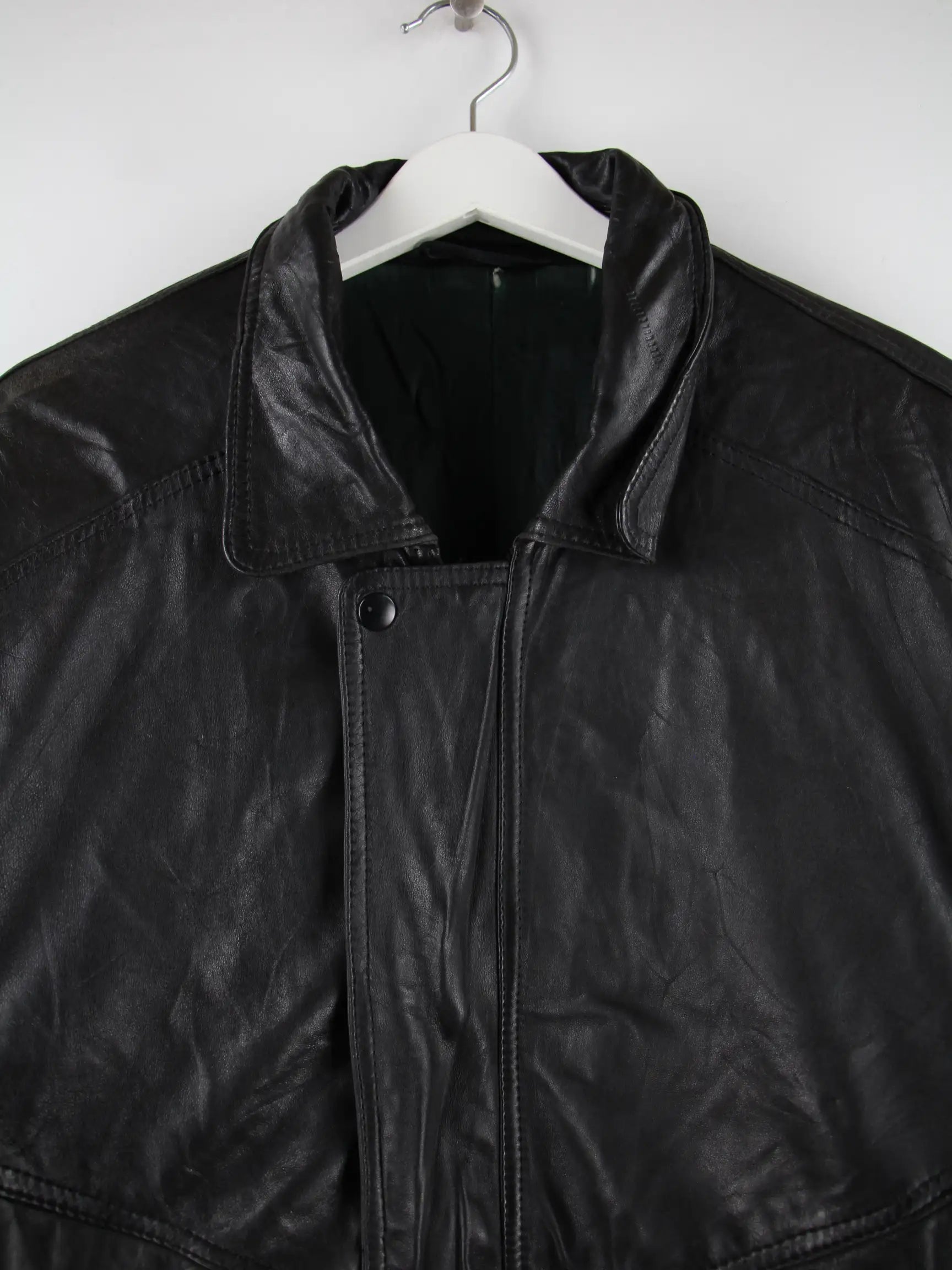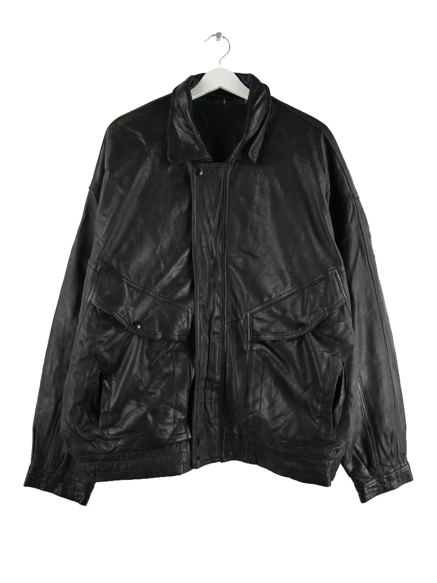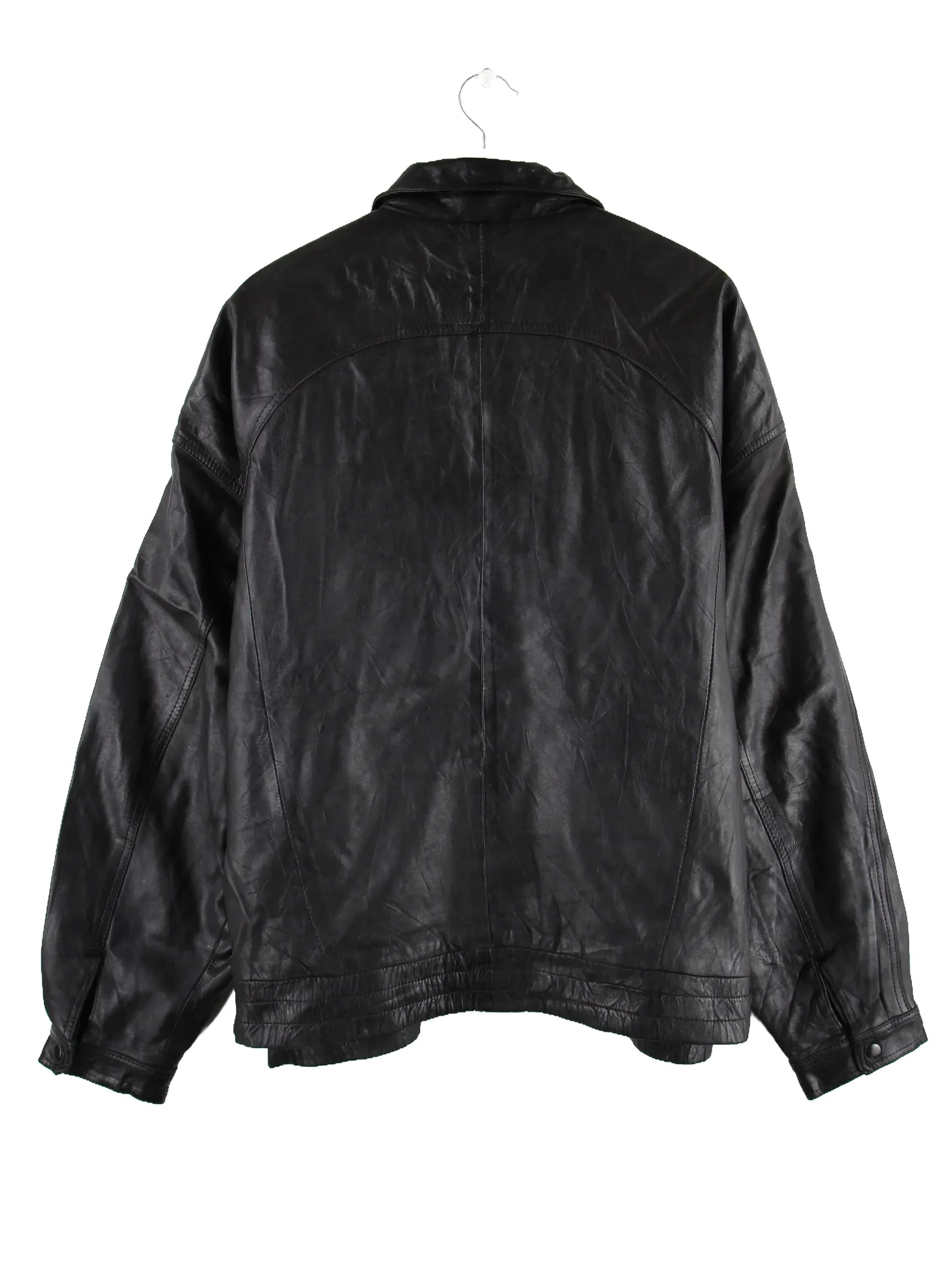 Vintage Jacke in Größe XL aus den 90'ern. Sie ist aus Leder angefertigt und in Schwarz zu bekommen.
