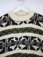 Vintage Pullover in Größe XL aus den 90'ern. Er ist aus Wolle und in Beige vorrätig.