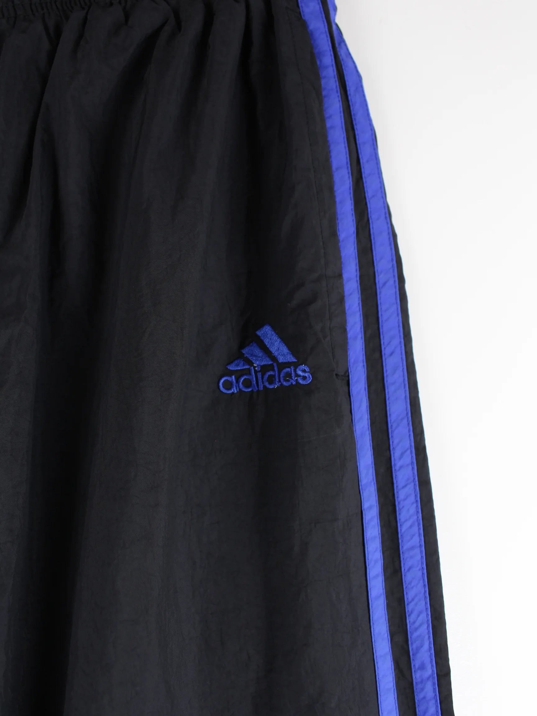 Track Pants der Marke Adidas in Größe M aus den 90'ern. Sie sind aus Synthetik und in Schwarz im Bestand.