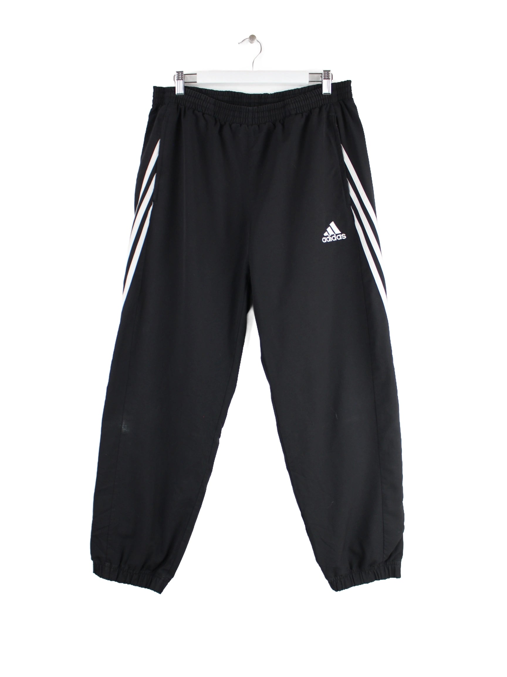 Schwarze Track Pants der Marke Adidas in Größe L. Sie sind aus Synthetik und in gutem Zustand zu bekommen.