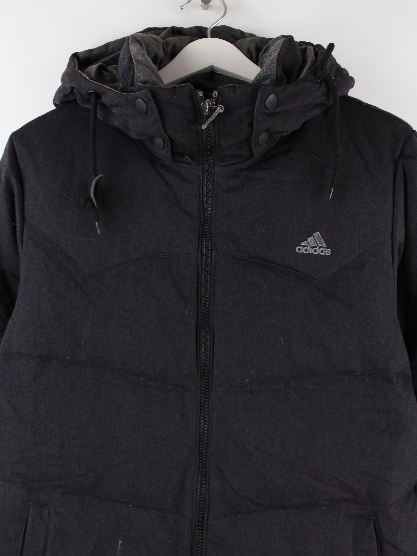 Schwarze Jacke der Brand Adidas in Größe S. Sie ist aus Synthetik gemacht und in gutem Zustand in Stock.
