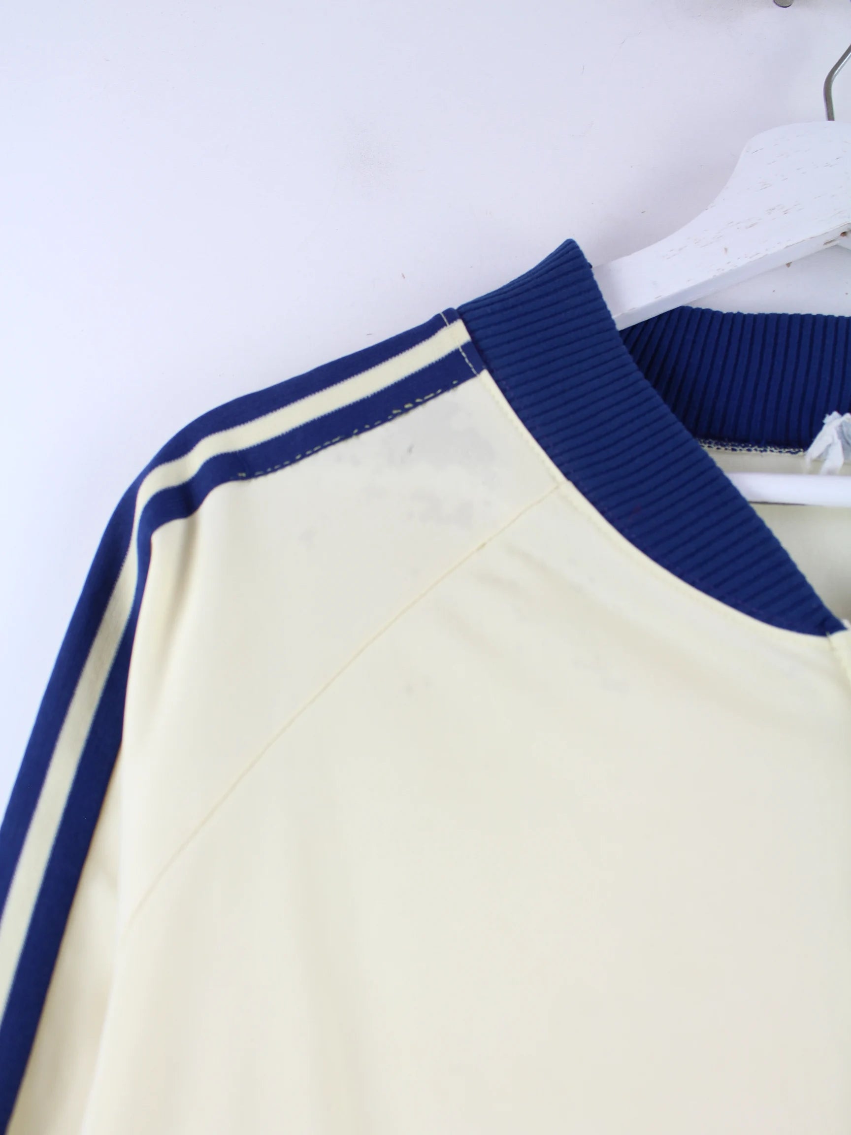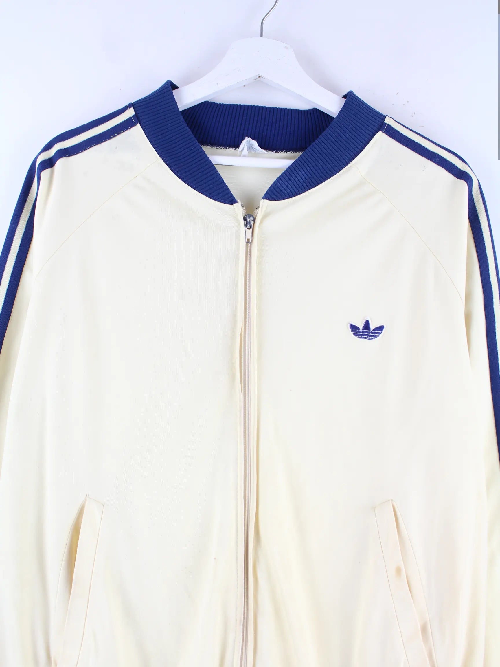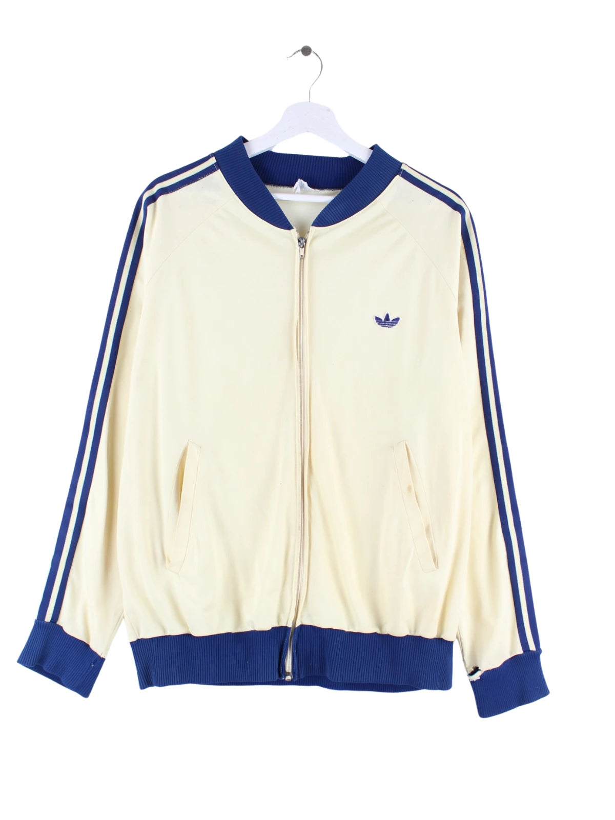 Beigefarbene Trainingsjacke von Adidas aus den 70'ern in Größe M. Sie ist aus Synthetik . Den Zustand würden wir als 'In Ordnung' bezeichnen (vergl. Bilder).