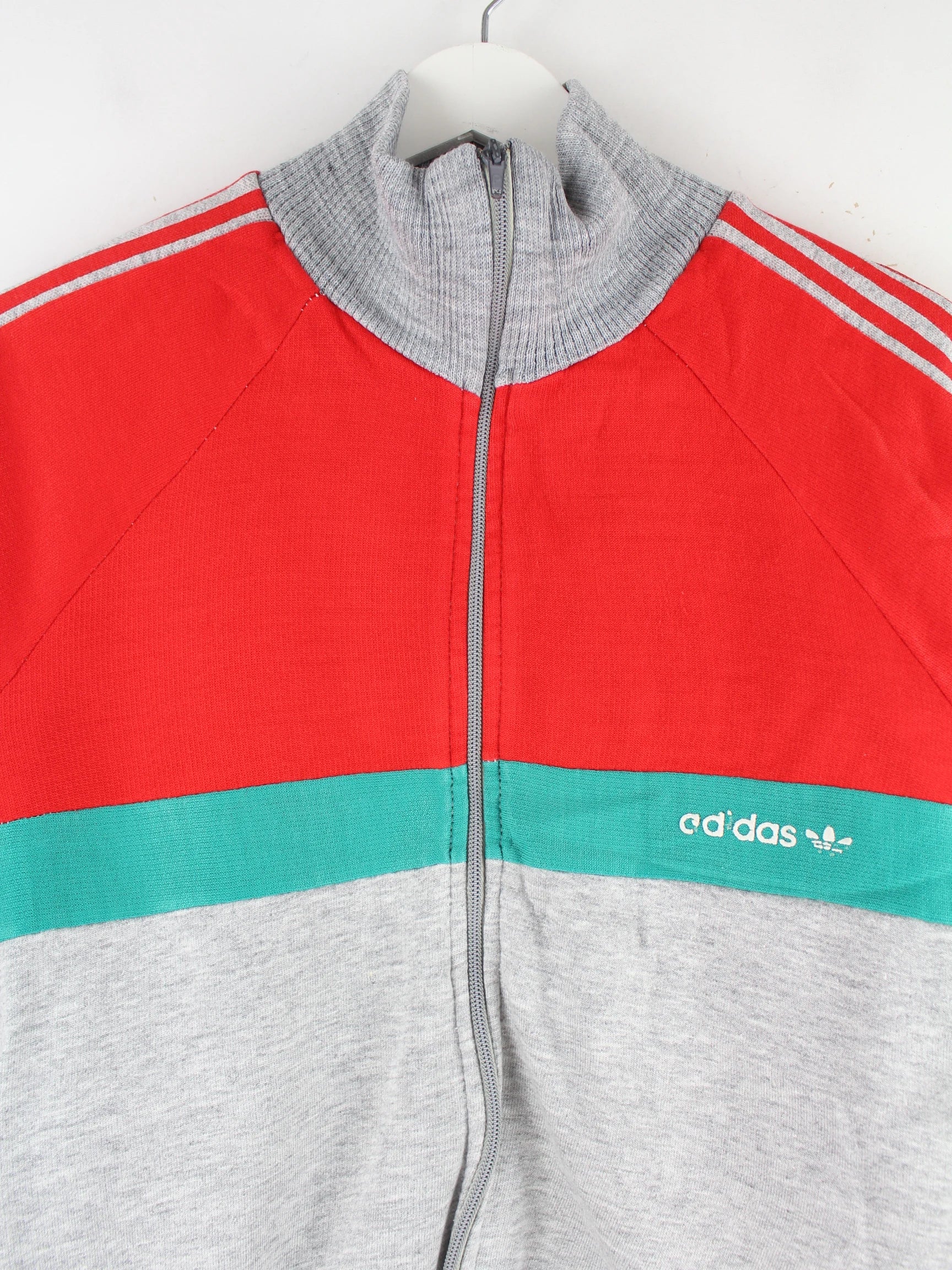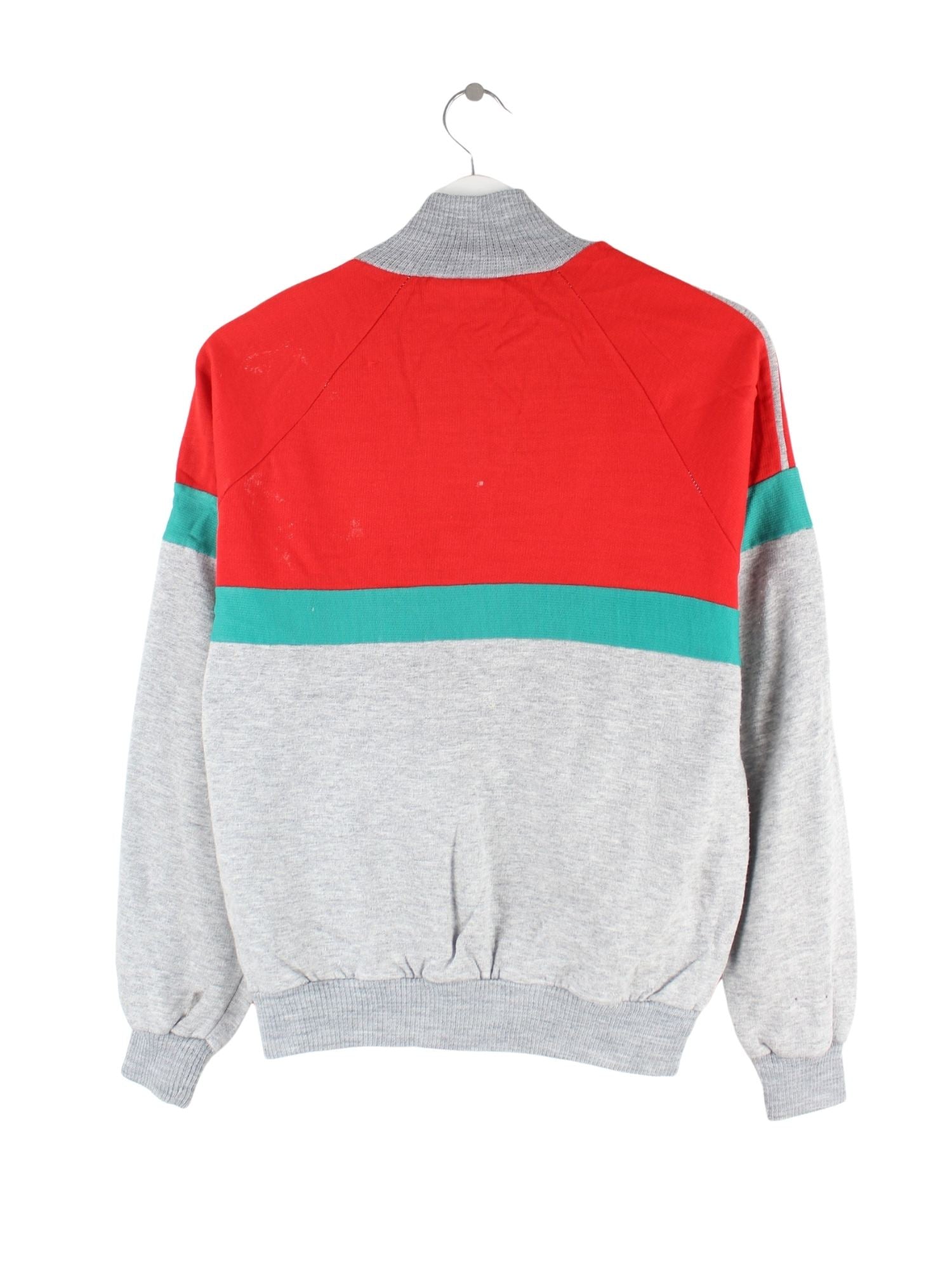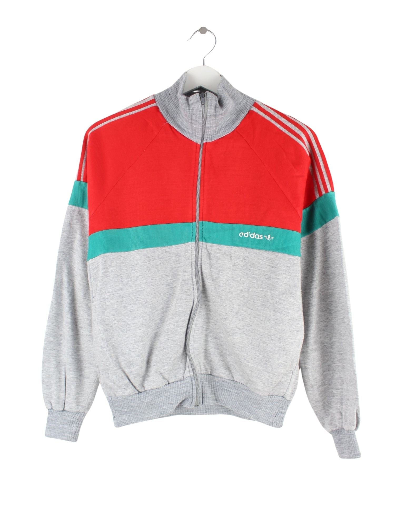 Trainingsjacke vom Brand Adidas in Größe XS aus den 70'ern. Sie ist aus Acryl und in Grau zu haben. Mit tollem Vintage Print.
