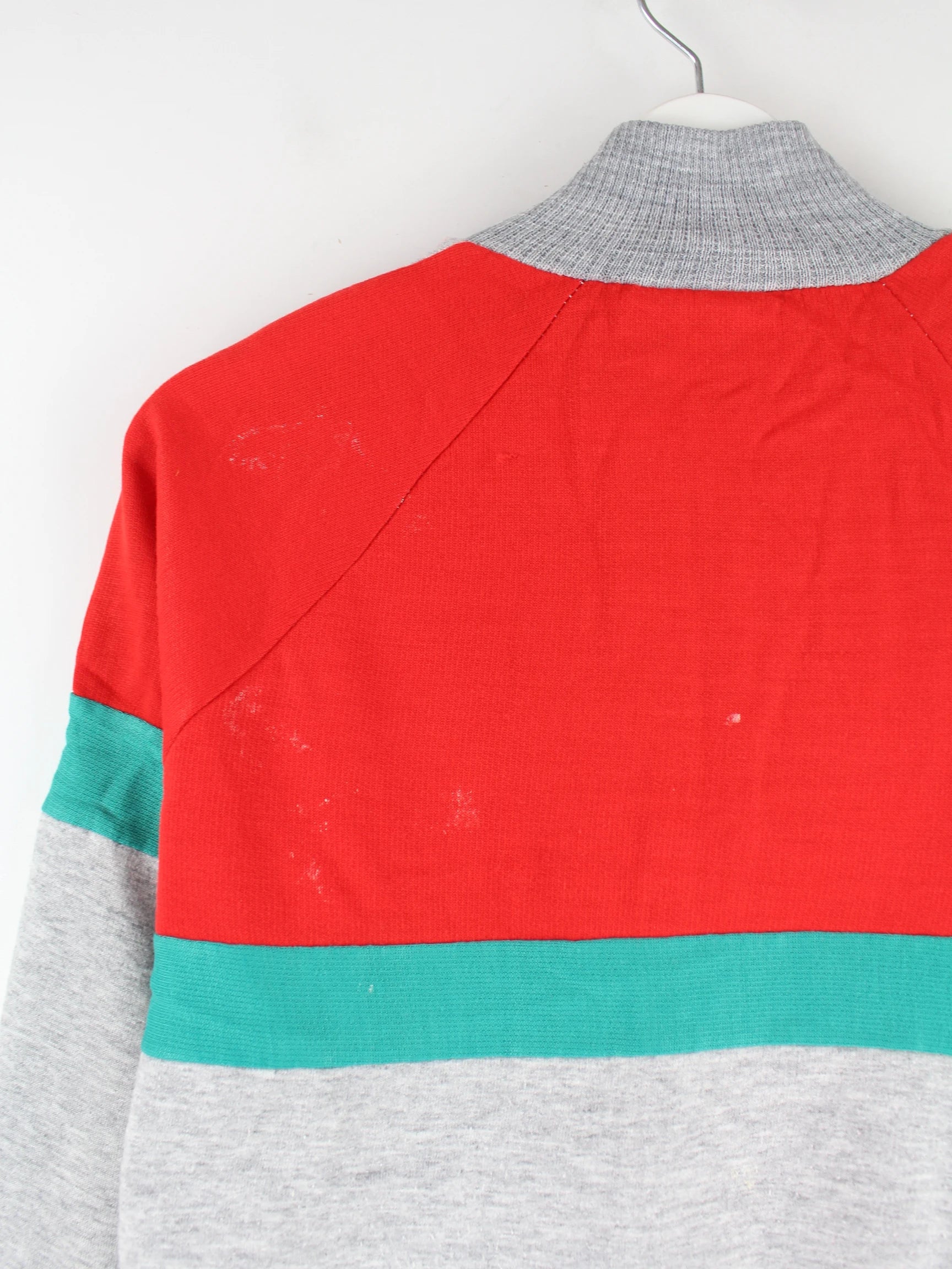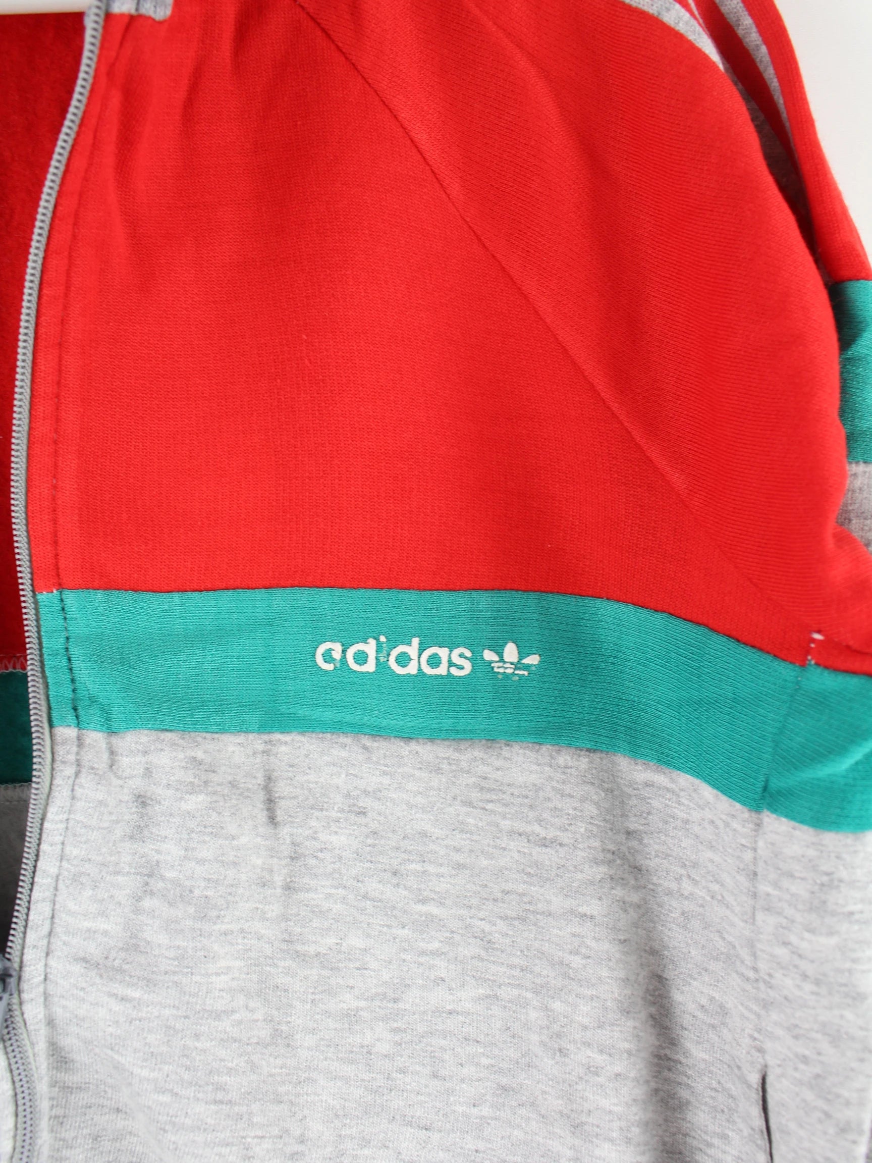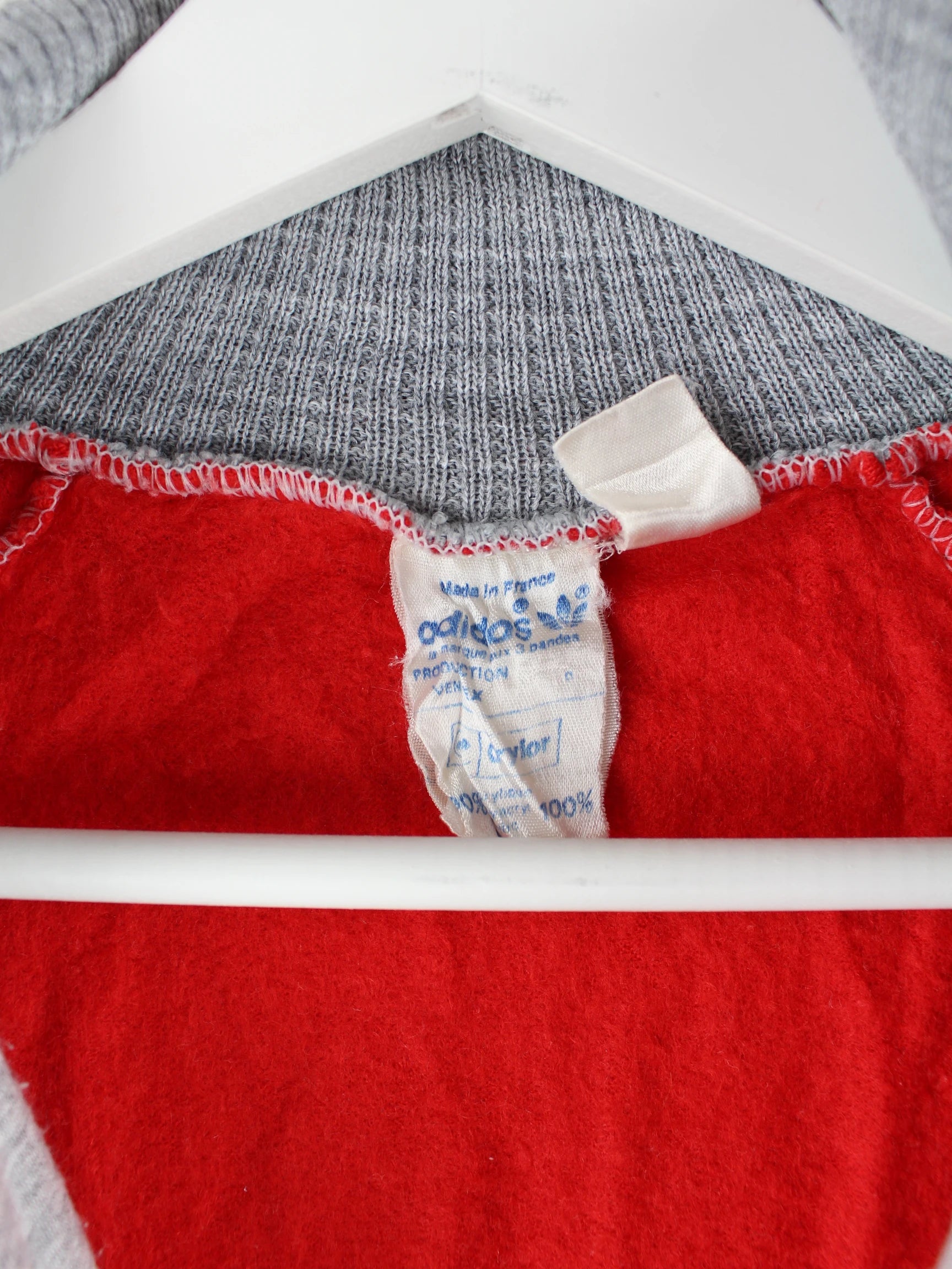 Trainingsjacke vom Brand Adidas in Größe XS aus den 70'ern. Sie ist aus Acryl und in Grau zu haben. Mit tollem Vintage Print.