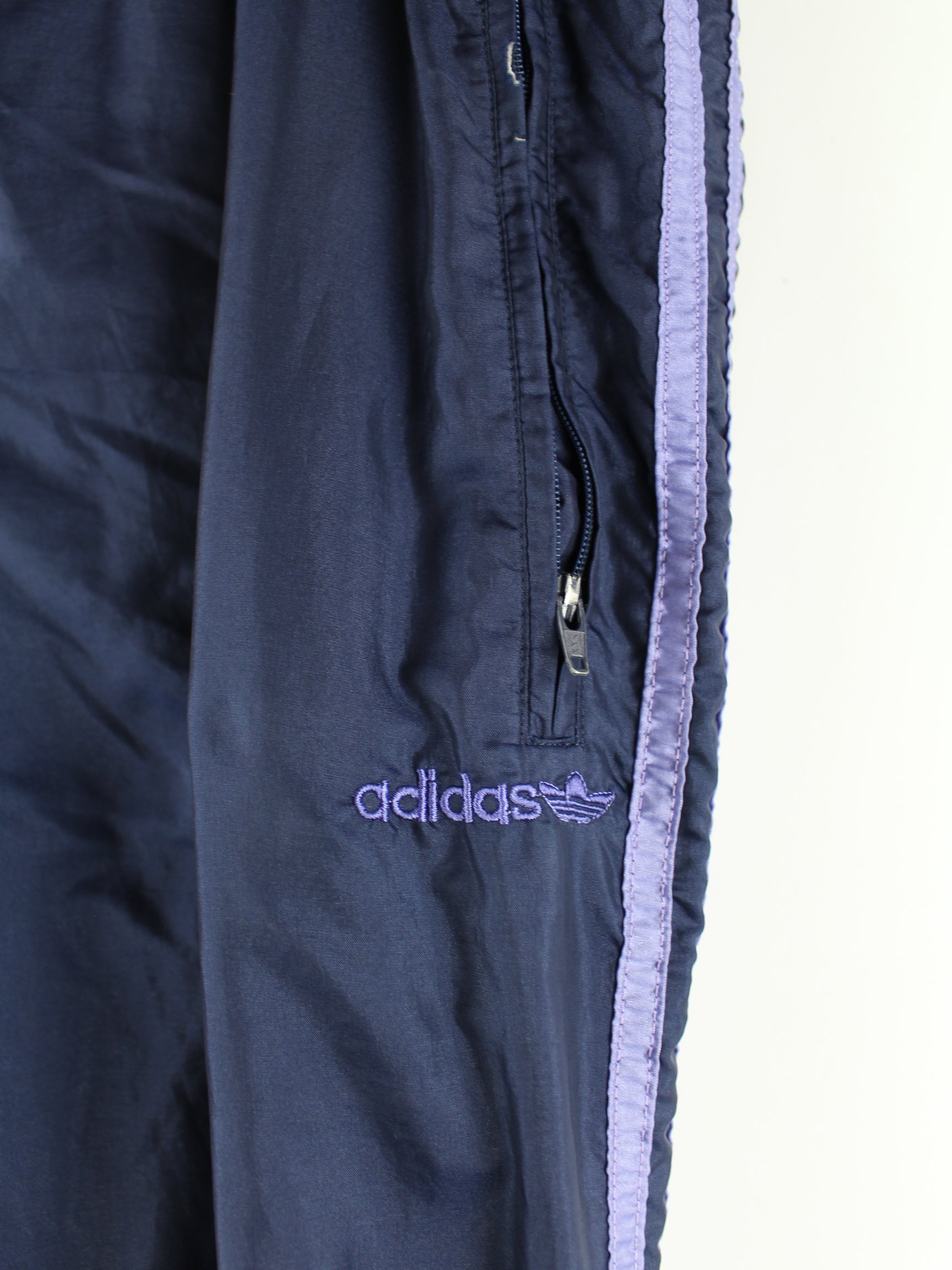Track Pants des Labels Adidas in Größe L aus den 70'ern. Sie sind aus Synthetik gefertigt und in Blau auf Lager.