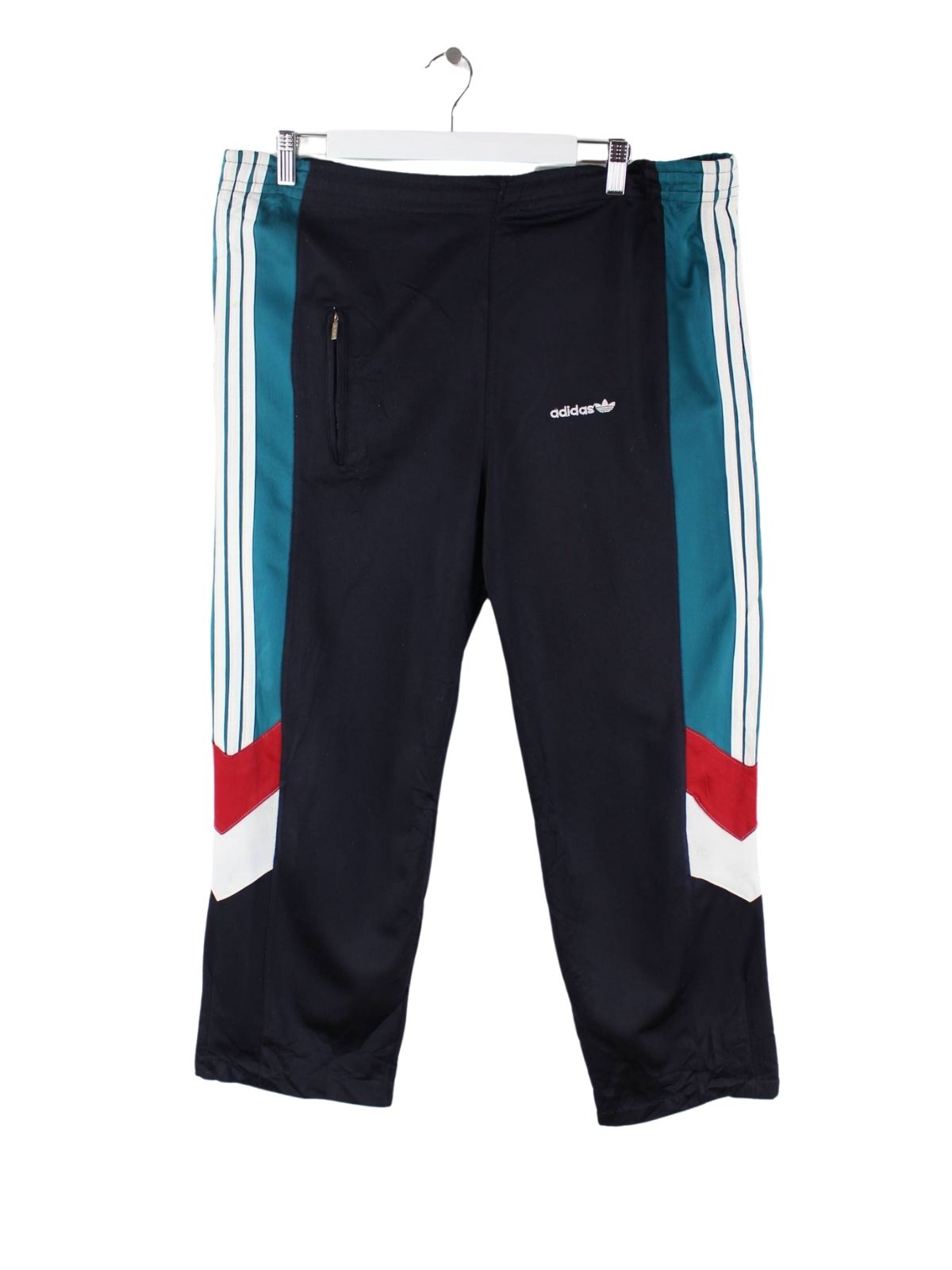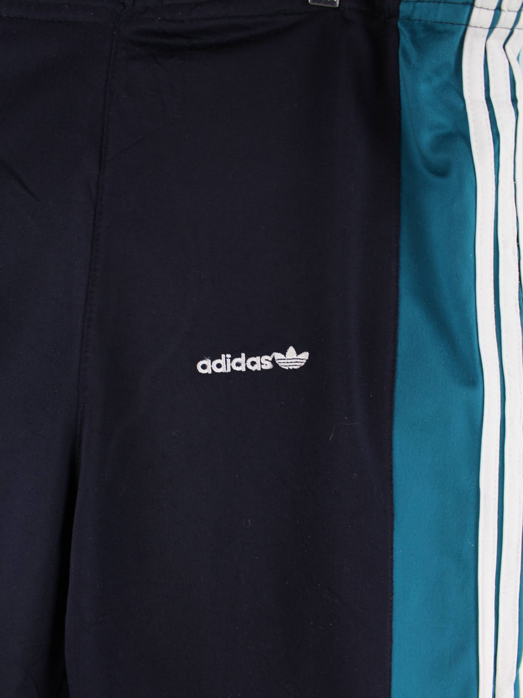 Blaue Track Pants aus dem Hause Adidas aus den 70'ern in Größe S. Sie sind aus Synthetik gemacht und in gutem Zustand vorrätig.