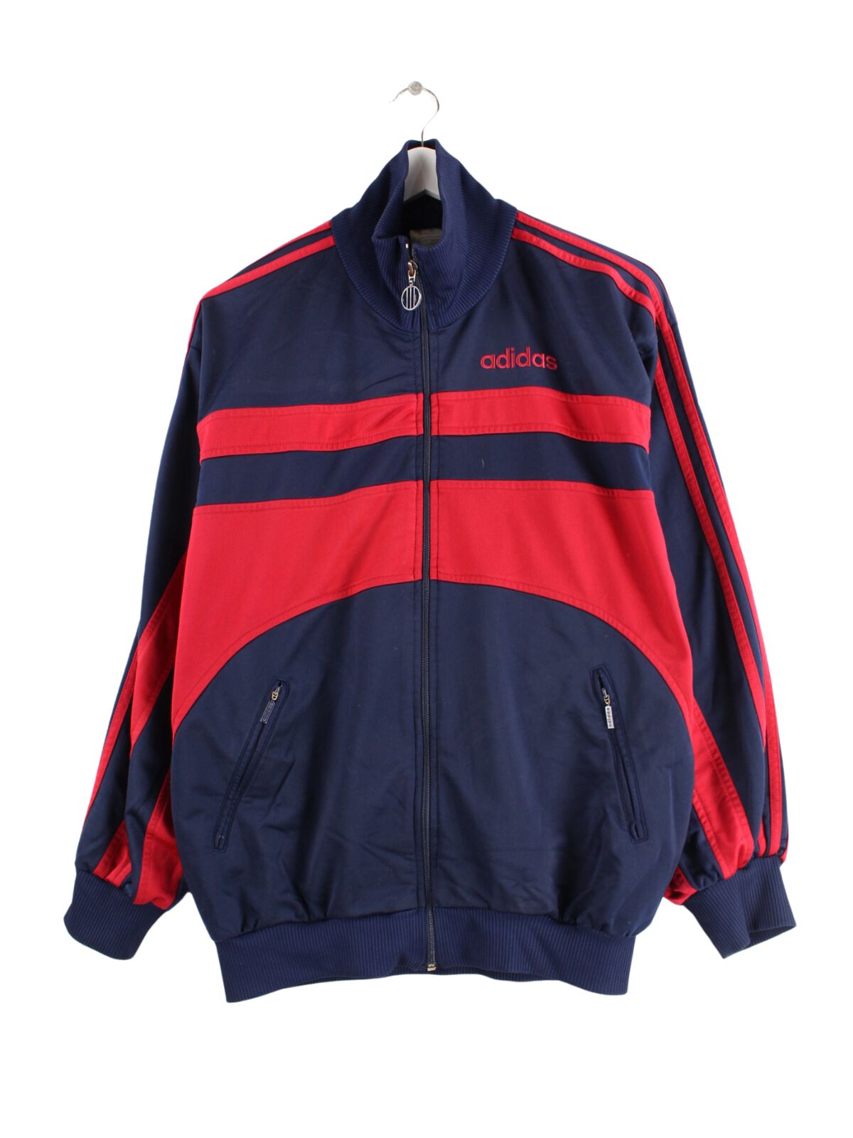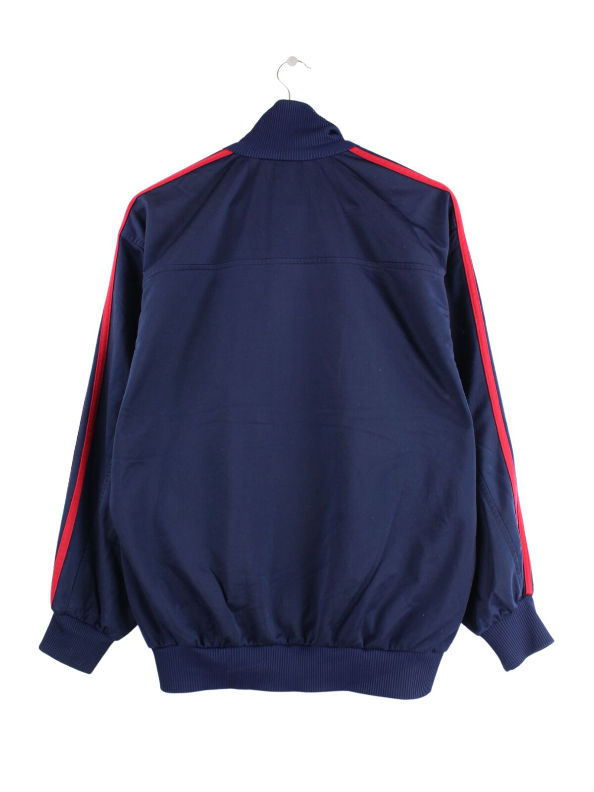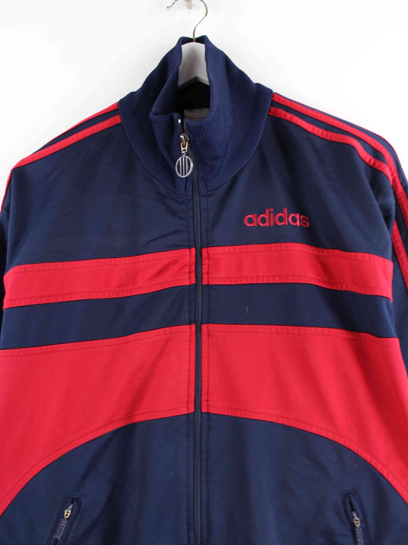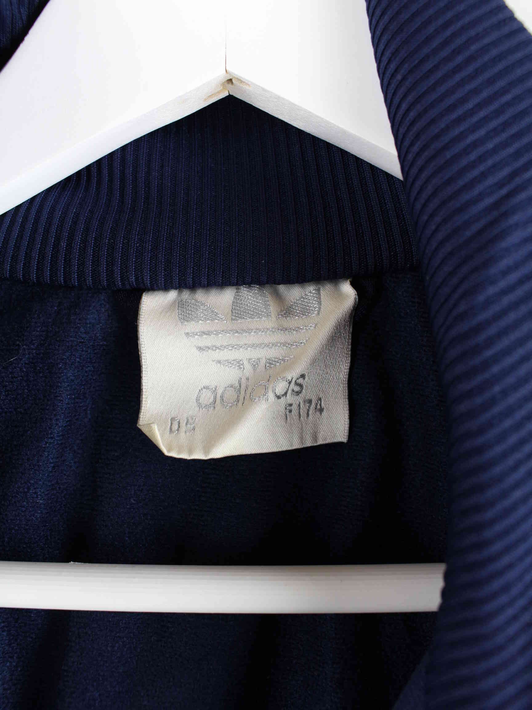 Blaue Trainingsjacke des Labels Adidas aus den 80'ern in Größe L. Sie ist aus Synthetik und in sehr gutem Zustand bei uns zu bekommen.