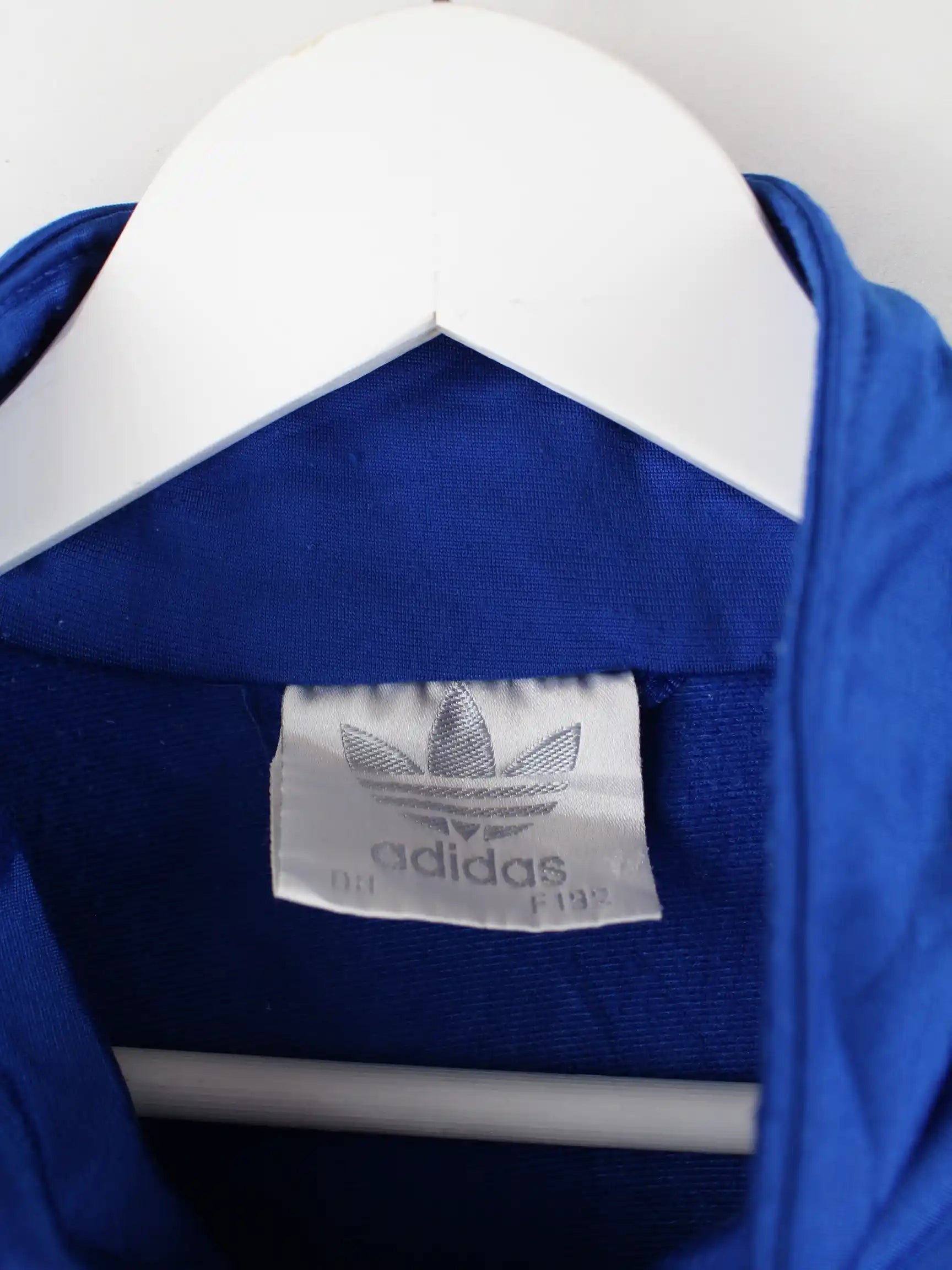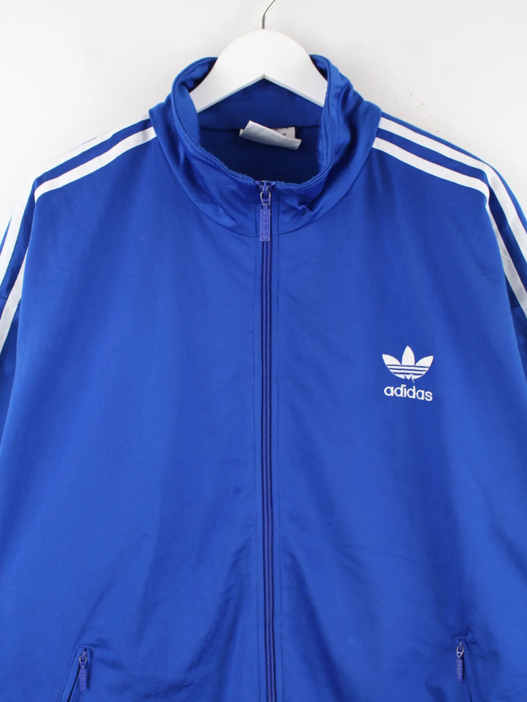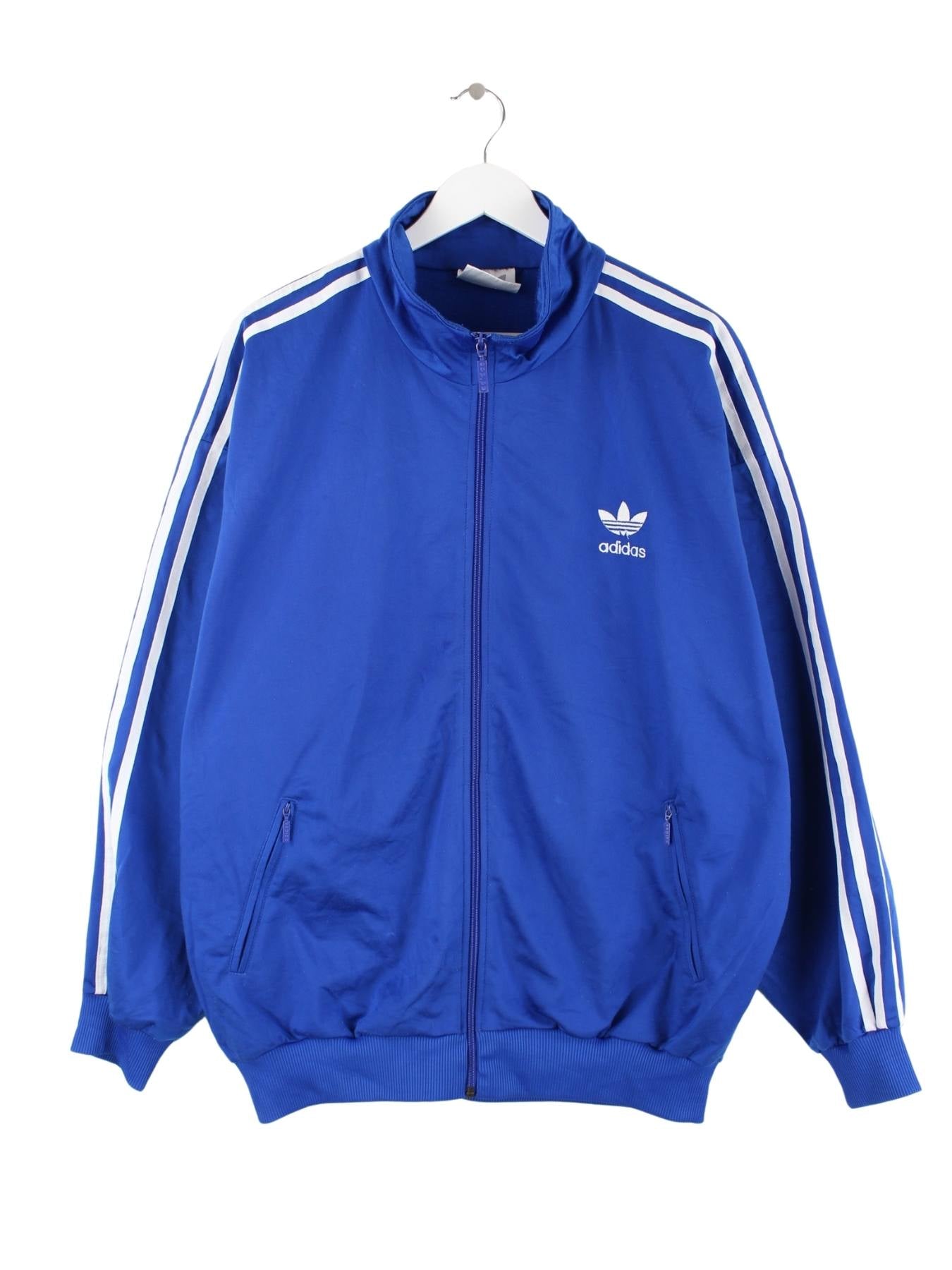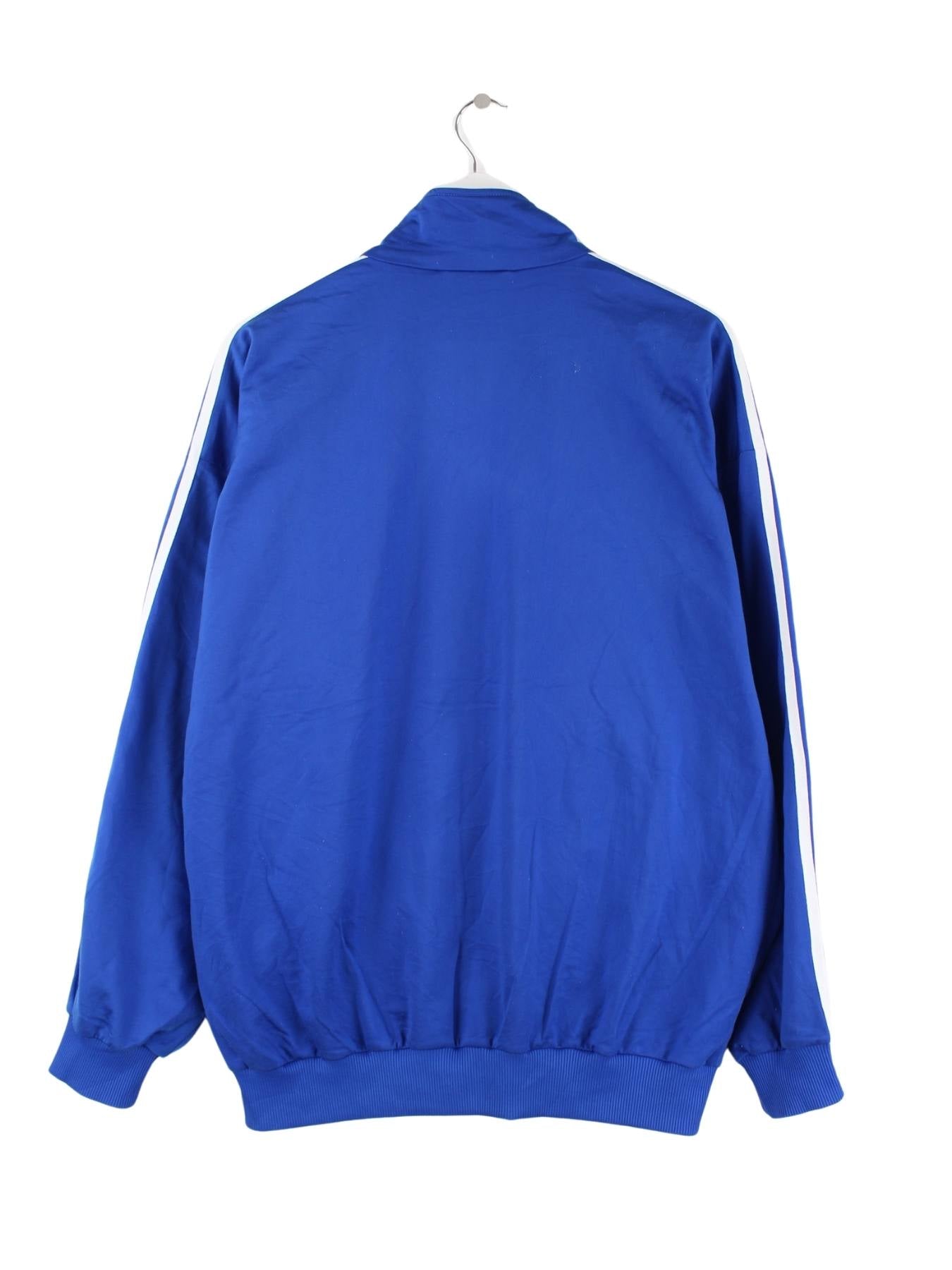 Blaue Trainingsjacke der Brand Adidas aus den 80'ern in Größe XXL. Sie ist aus Synthetik hergestellt und in gutem Zustand in Stock.