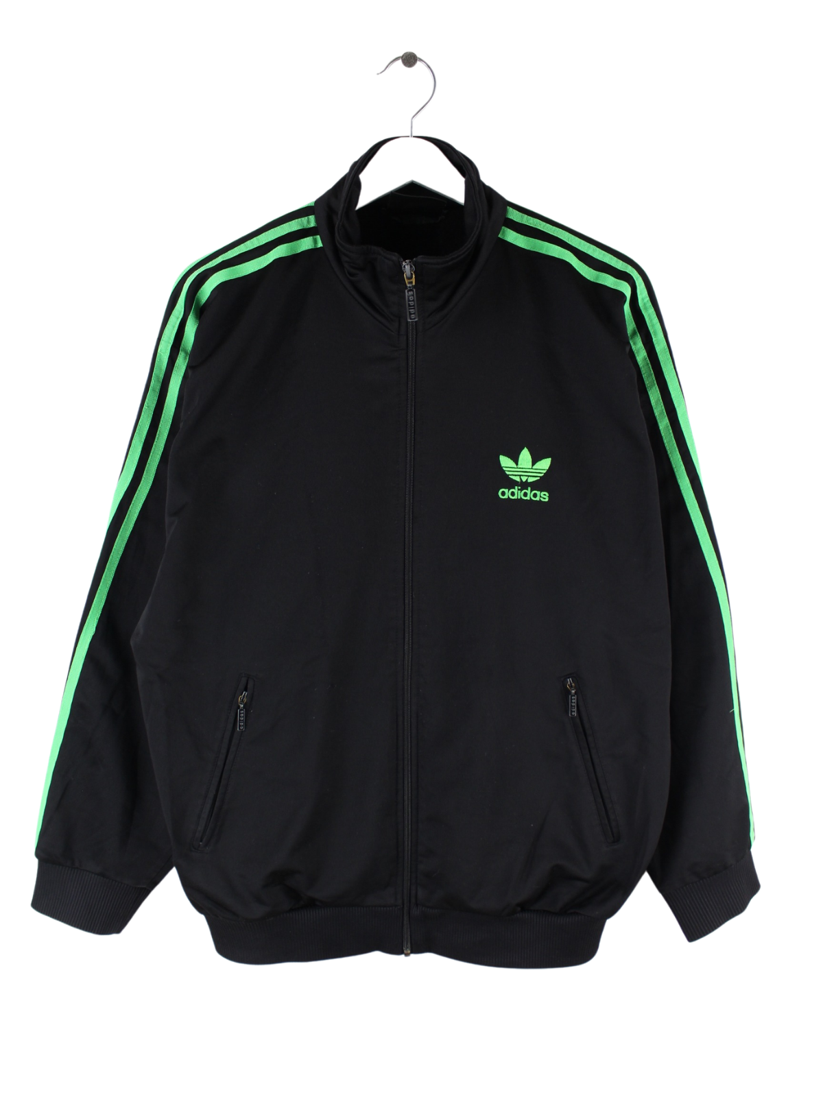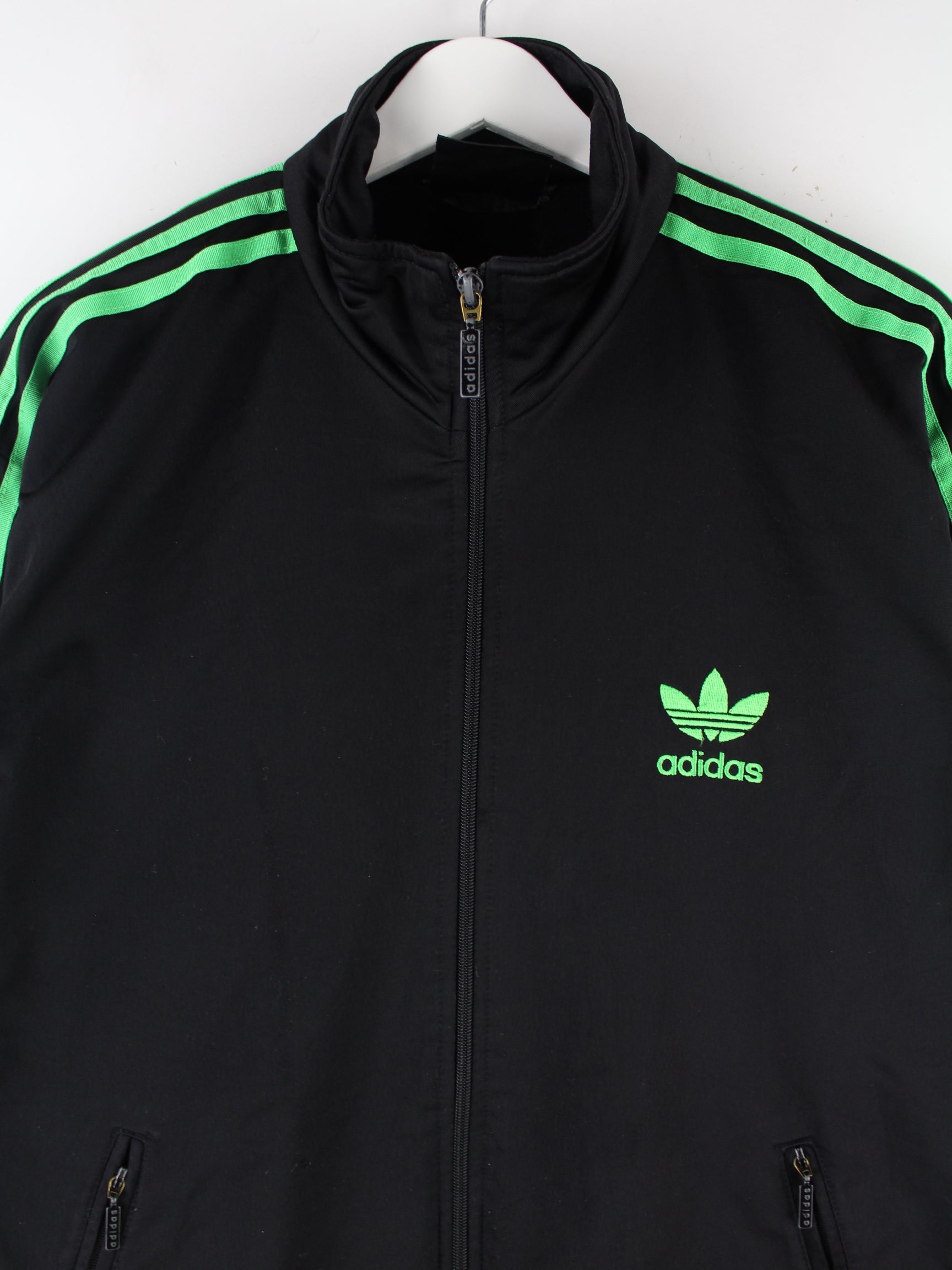 Schwarze Trainingsjacke der Brand Adidas aus den 80'ern in Größe M. Sie ist aus Synthetik und in sehr gutem Zustand im Angebot.