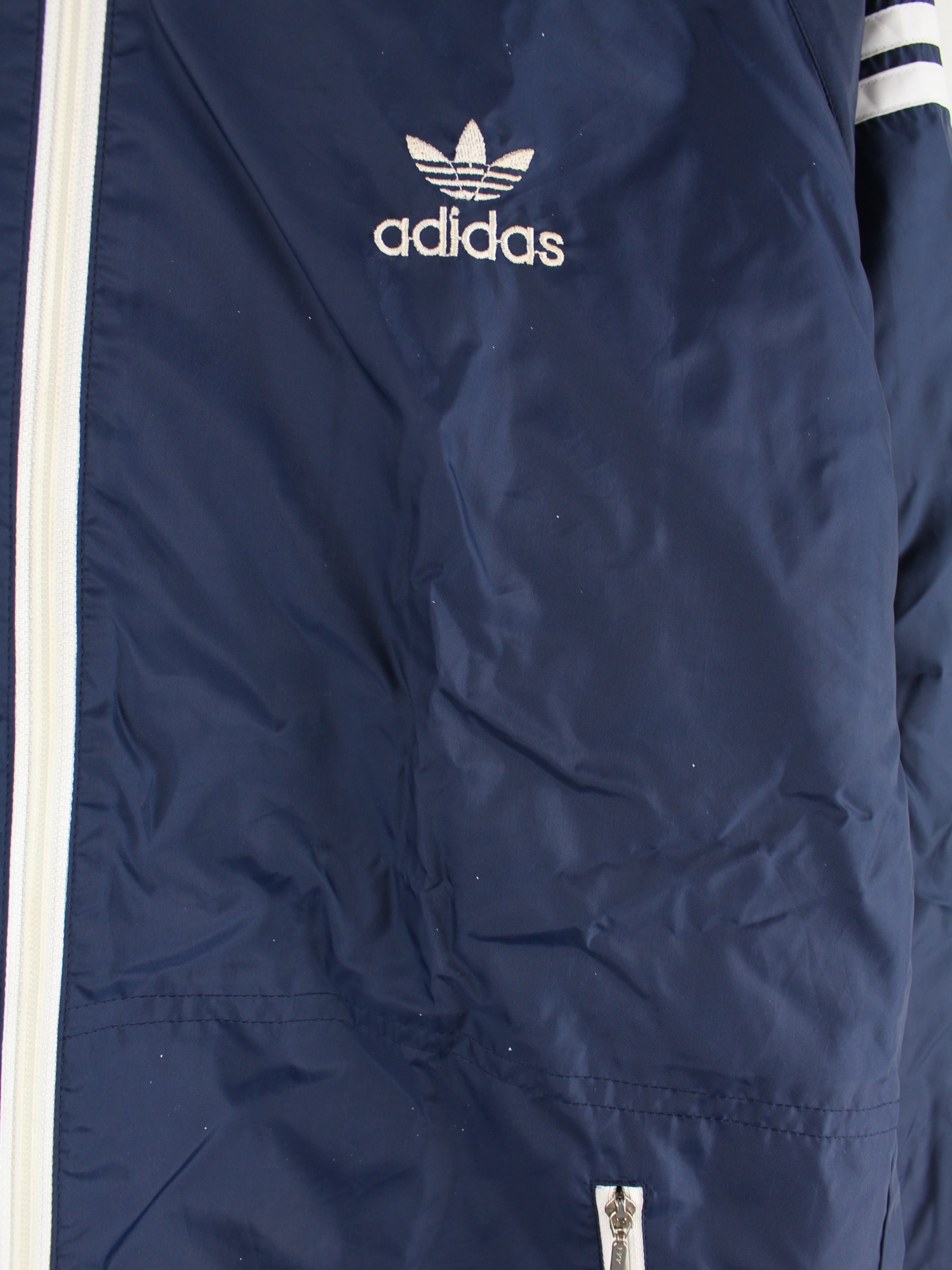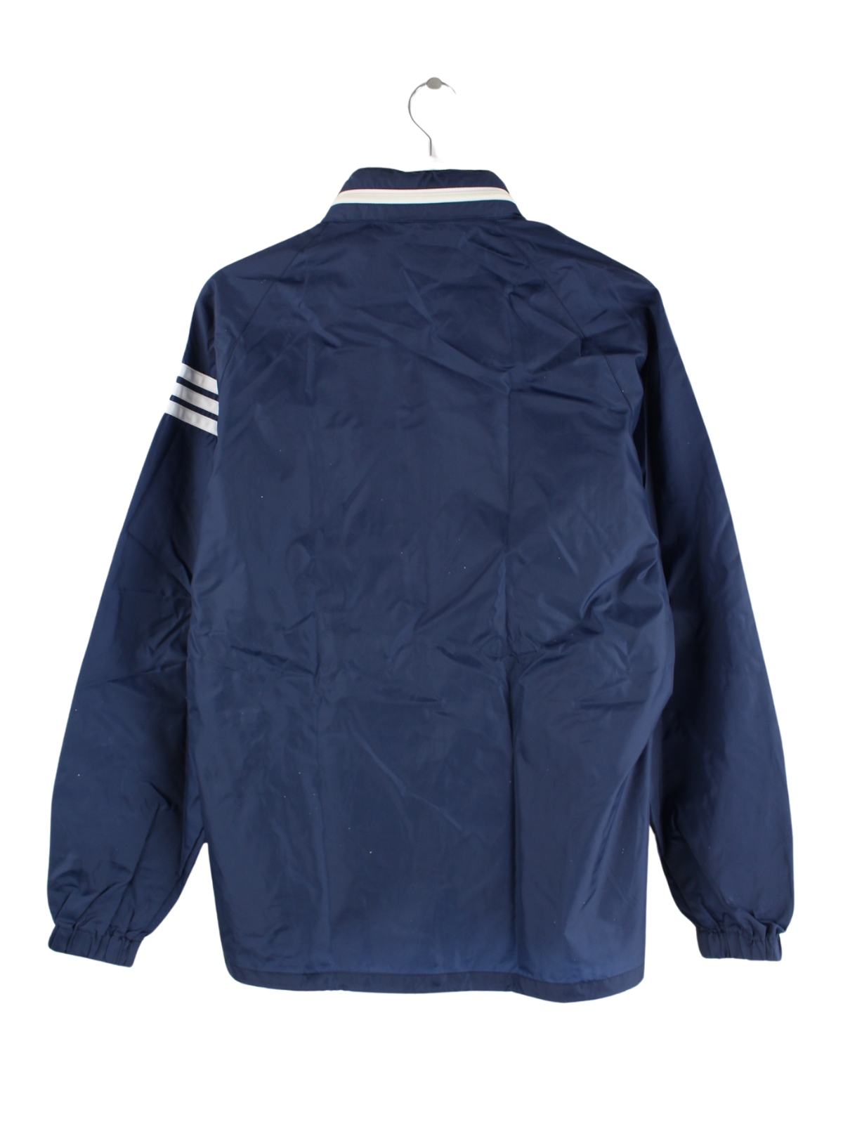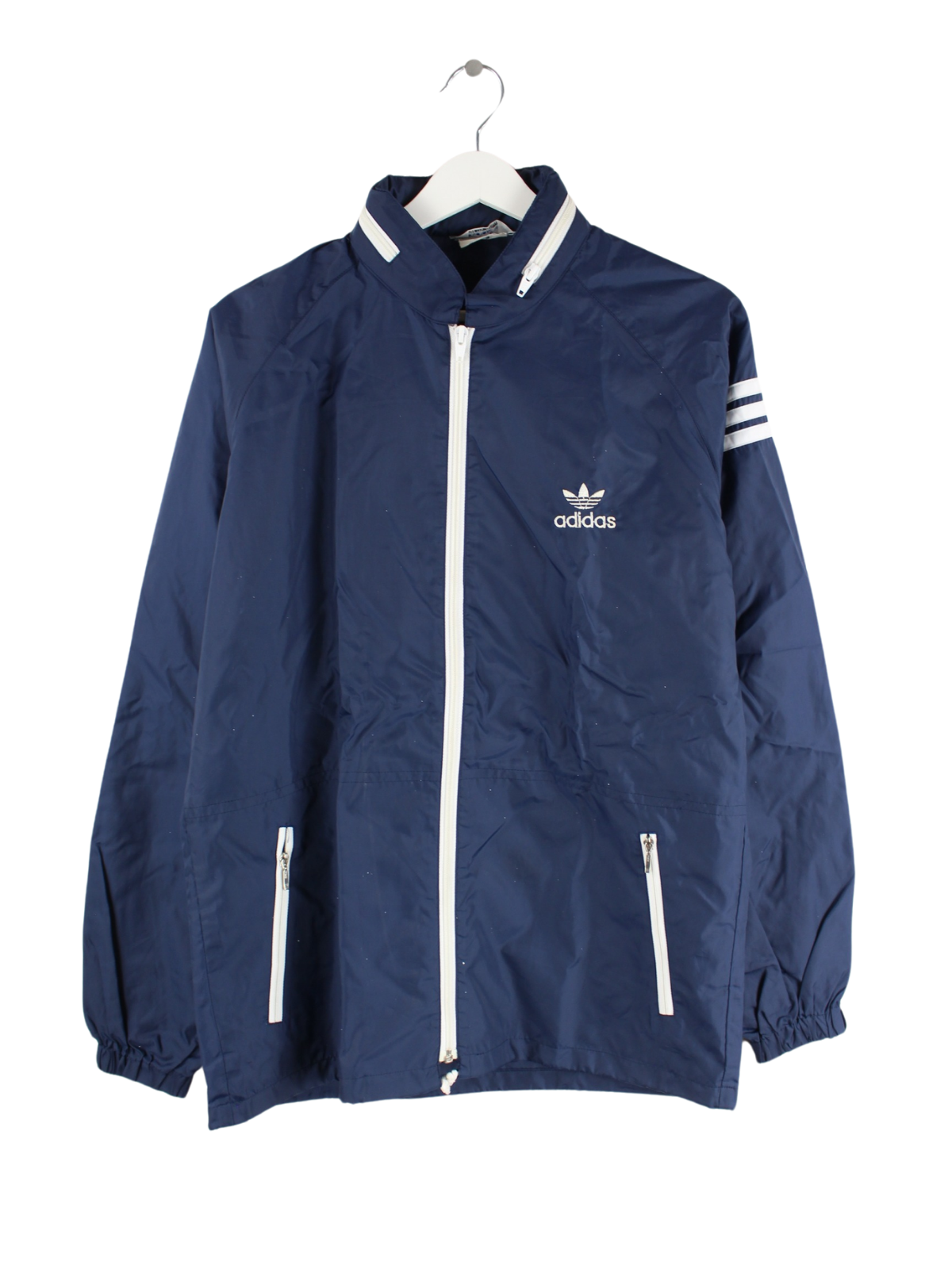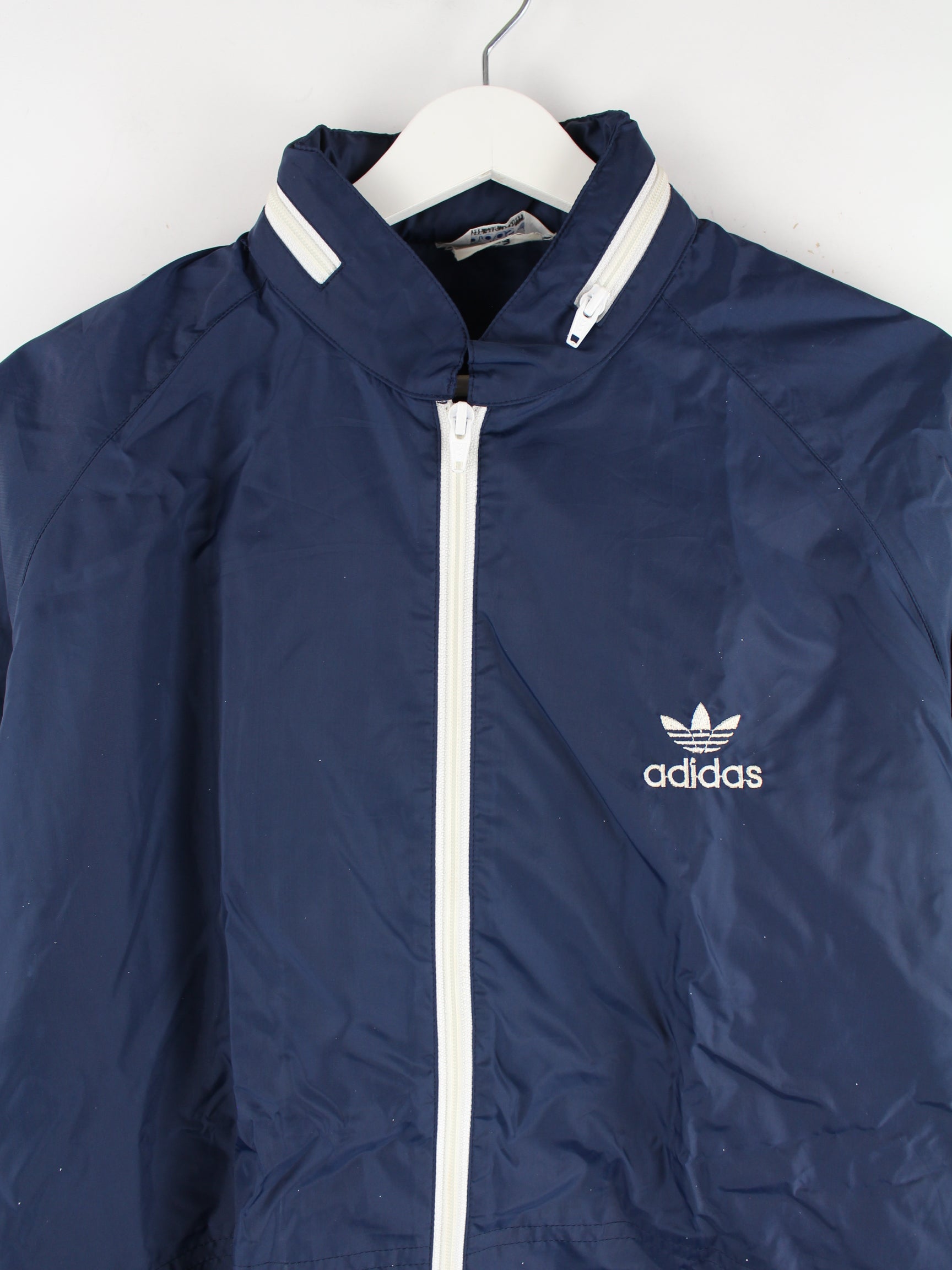 Leichte Jacke des Labels Adidas in Größe L aus den 80'ern. Sie ist aus Synthetik produziert und in Blau zu bekommen.