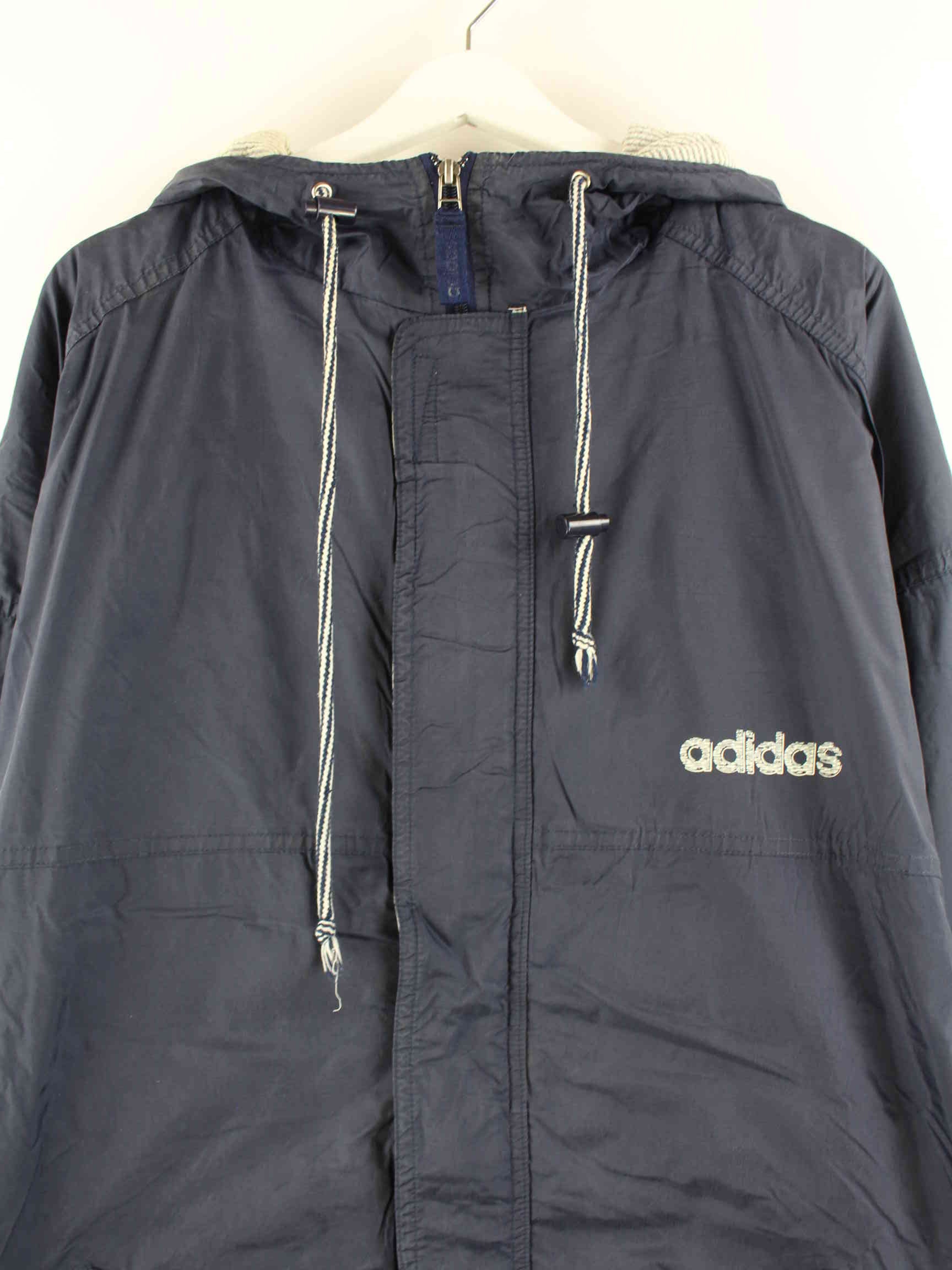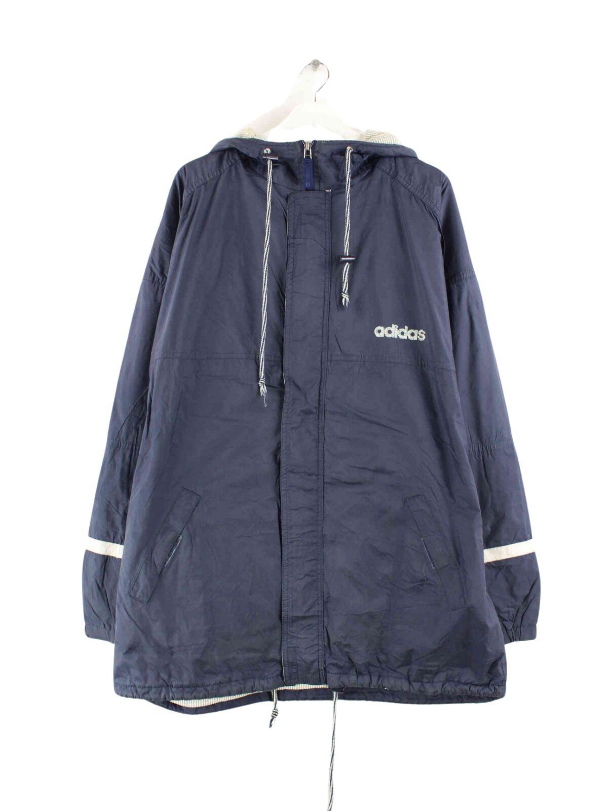 Blaue Leichte Jacke vom Label Adidas aus den 80'ern in Größe XL. Sie ist aus Synthetik angefertigt und in sehr gutem Zustand auf Lager.
