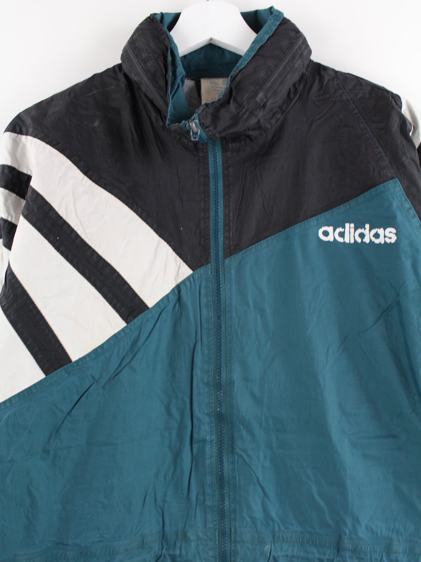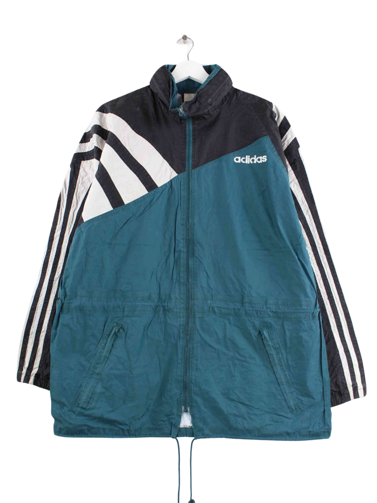 Leichte Jacke von Adidas in Größe XL aus den 80'ern. Sie ist aus Synthetik und in Grün bei uns zu bekommen.