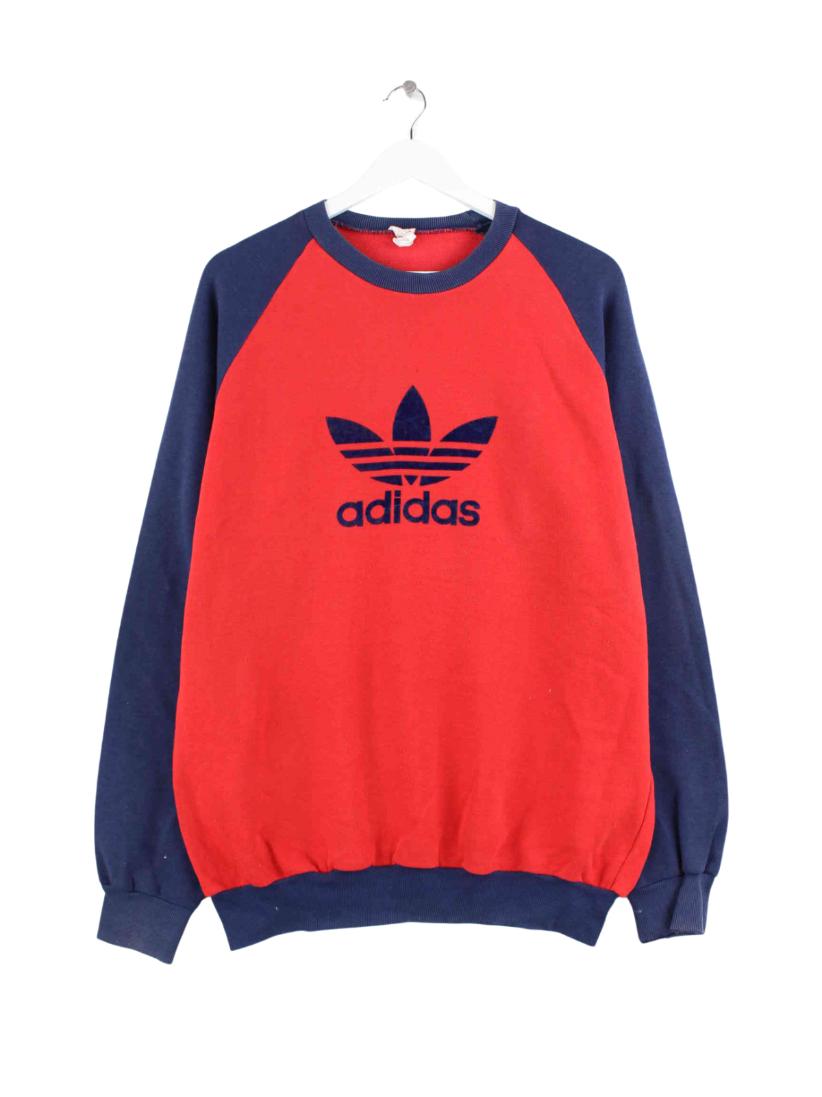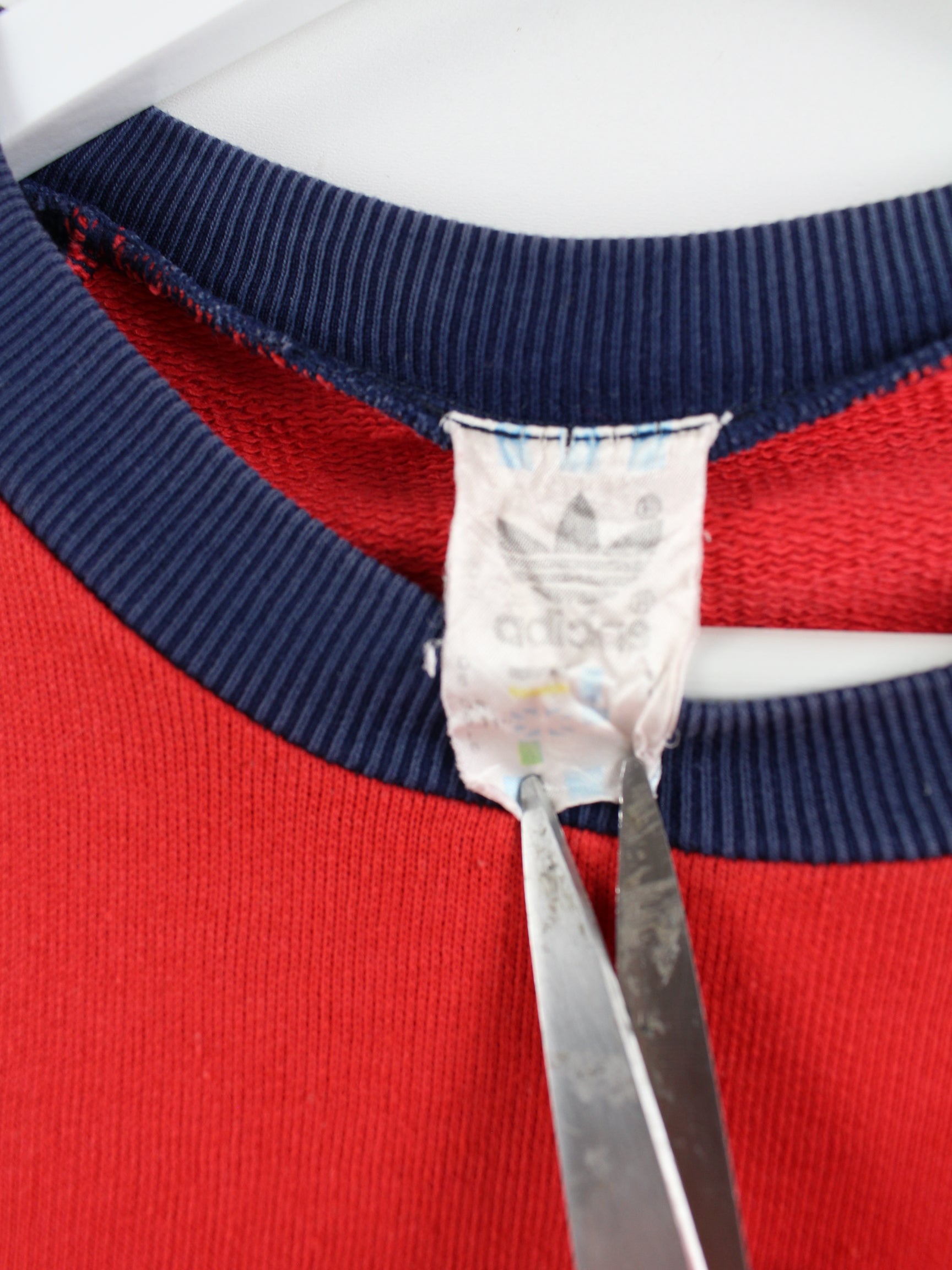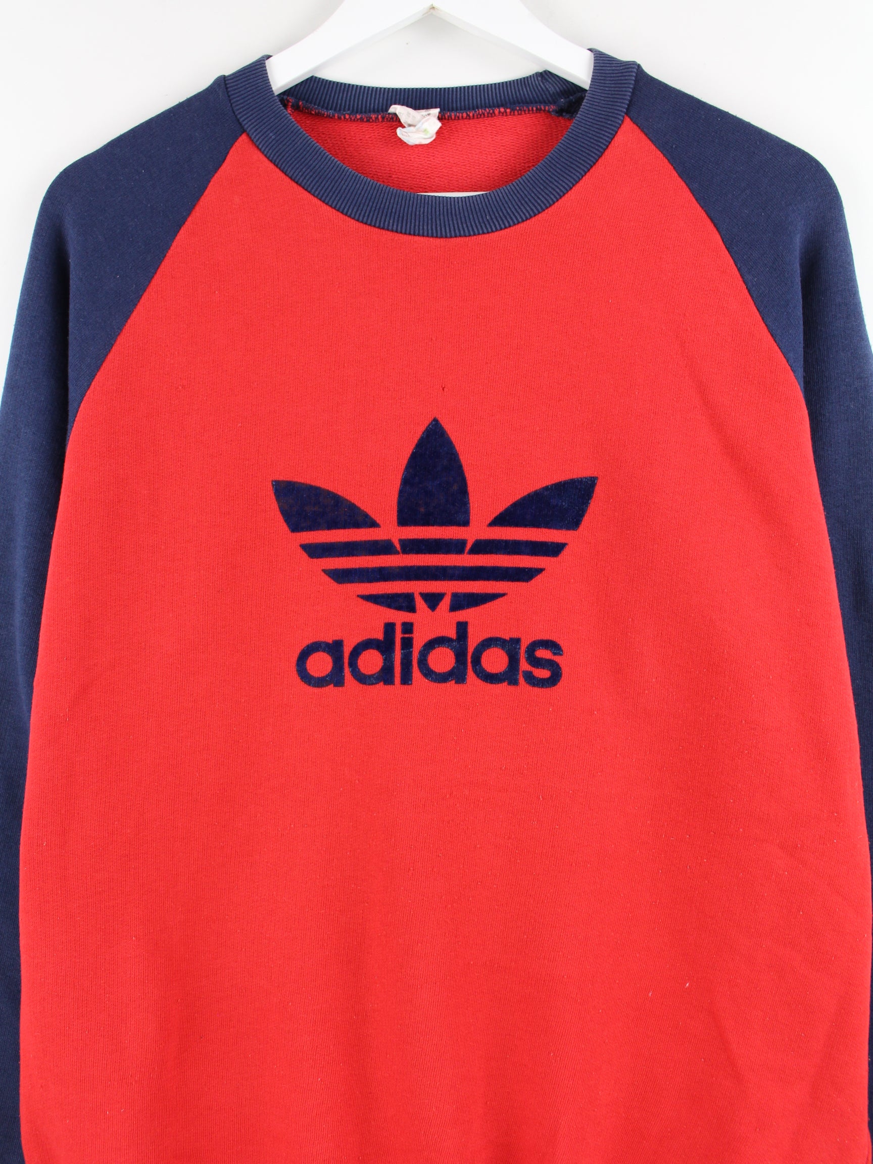 Roter Sweater aus dem Hause Adidas aus den 80'ern in Größe M. Er ist aus einer Baumwollmischung hergestellt und in sehr gutem Zustand auf Lager.