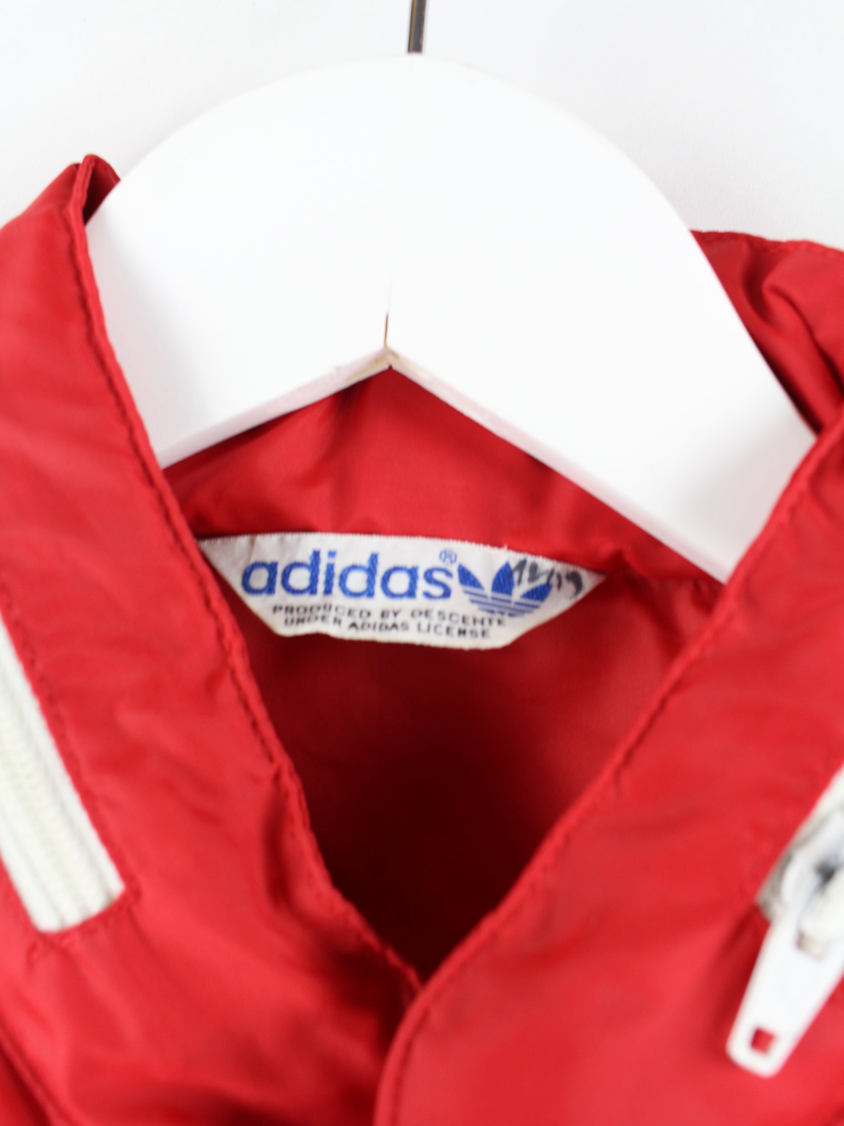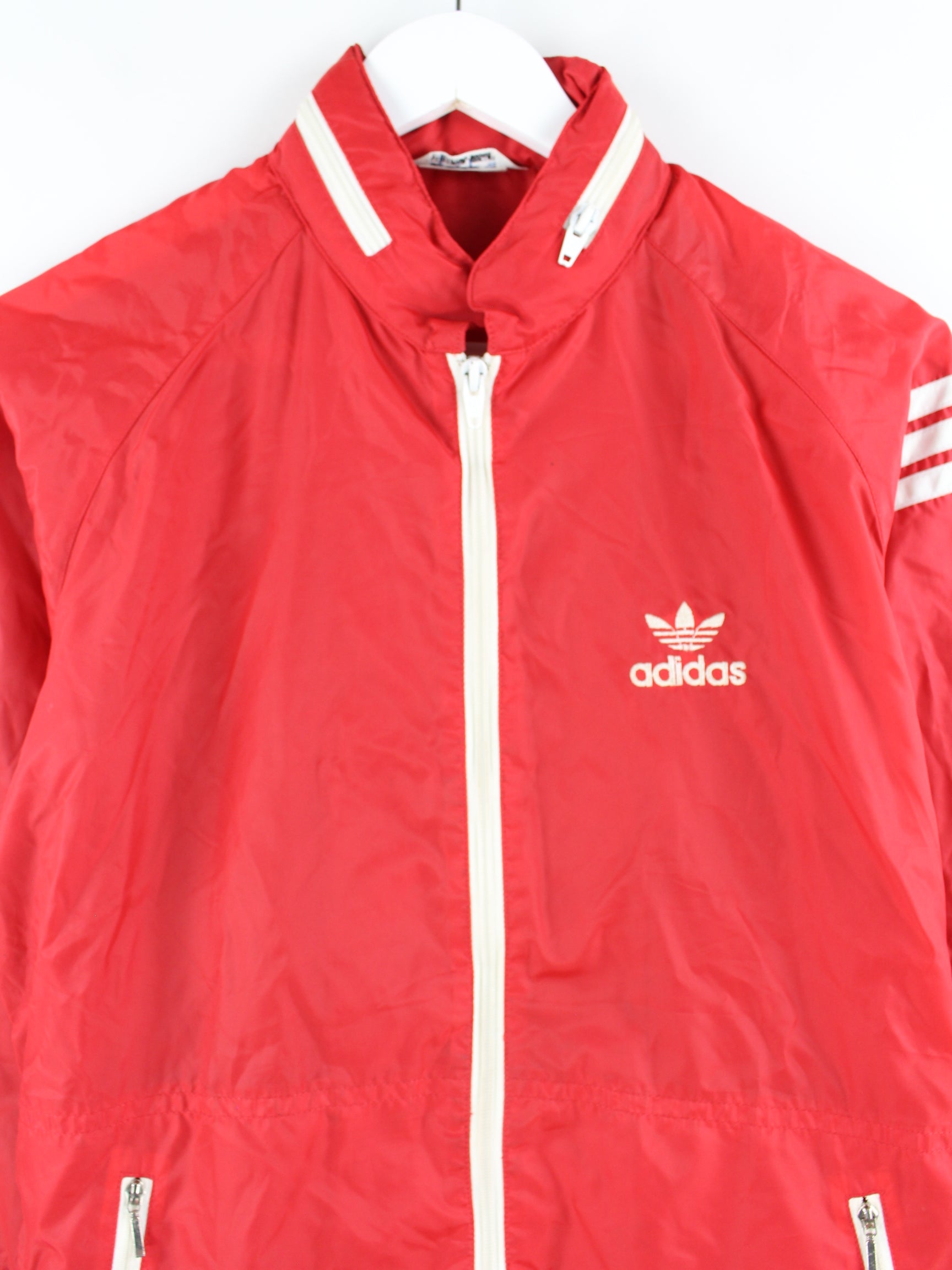 Leichte Jacke vom Brand Adidas in Größe XS aus den 80'ern. Sie ist aus Synthetik gefertigt und in Rot auf Lager.