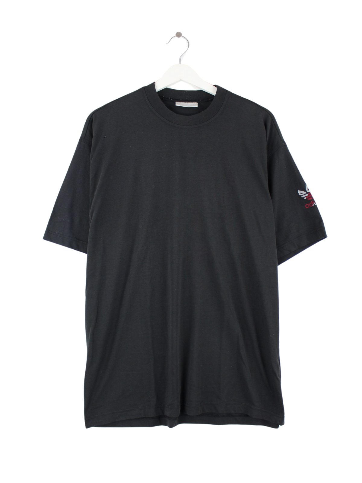 T-Shirt vom Brand Adidas in Größe M aus den 80'ern. Es ist aus Baumwolle angefertigt und in Schwarz vorrätig.