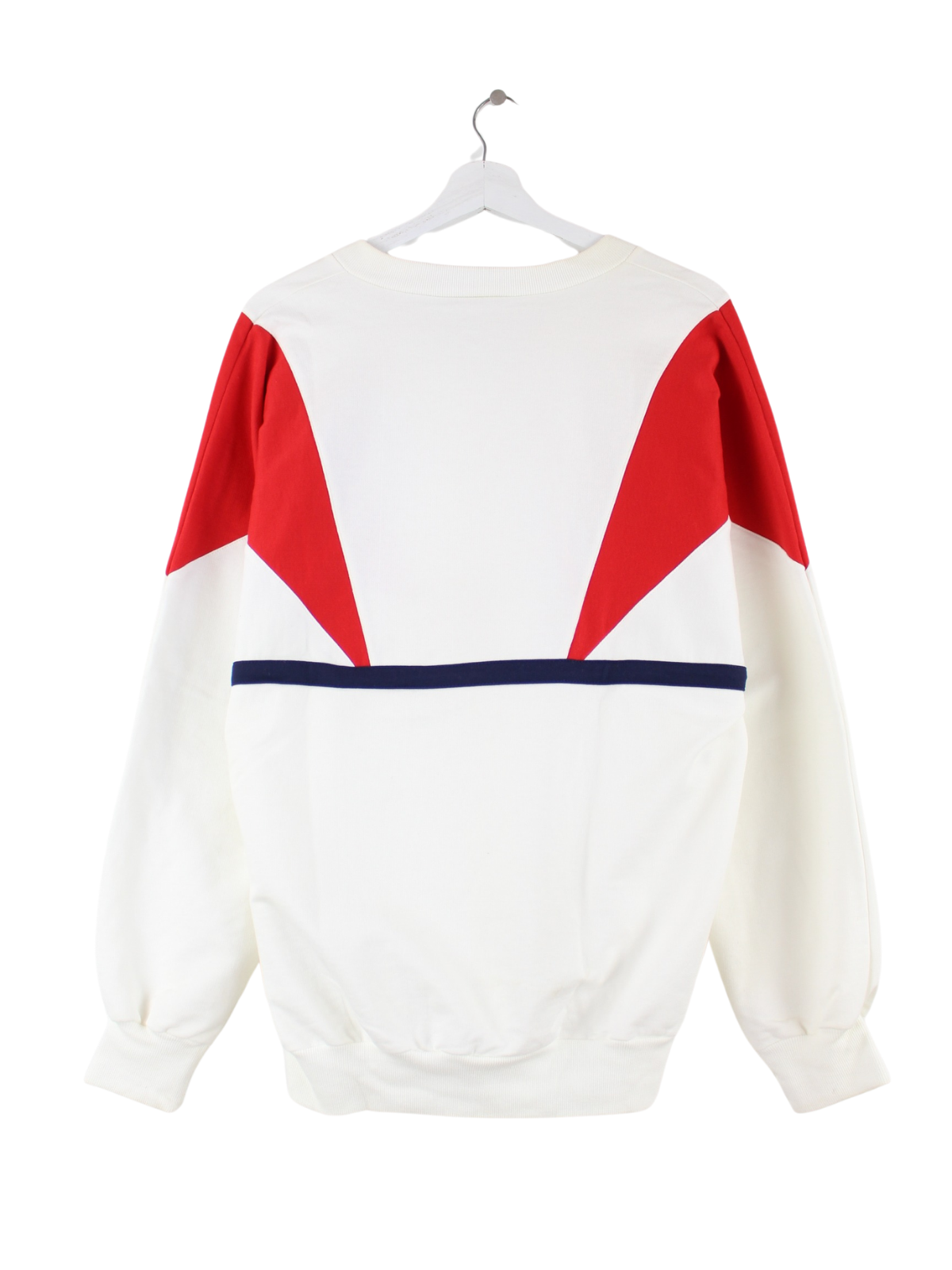 Weißer Sweater von Adidas aus den 80'ern in Größe L. Er ist aus Baumwolle angefertigt und in gutem Zustand bei uns vorrätig.