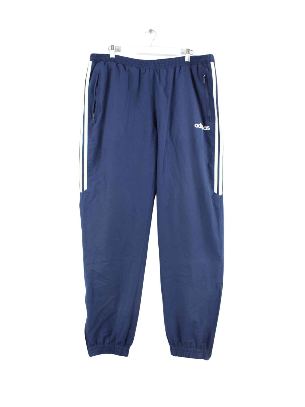Blaue Track Pants aus dem Hause Adidas aus den 90'ern in Größe XXL. Sie sind aus Synthetik und in sehr gutem Zustand bei uns zu bekommen.