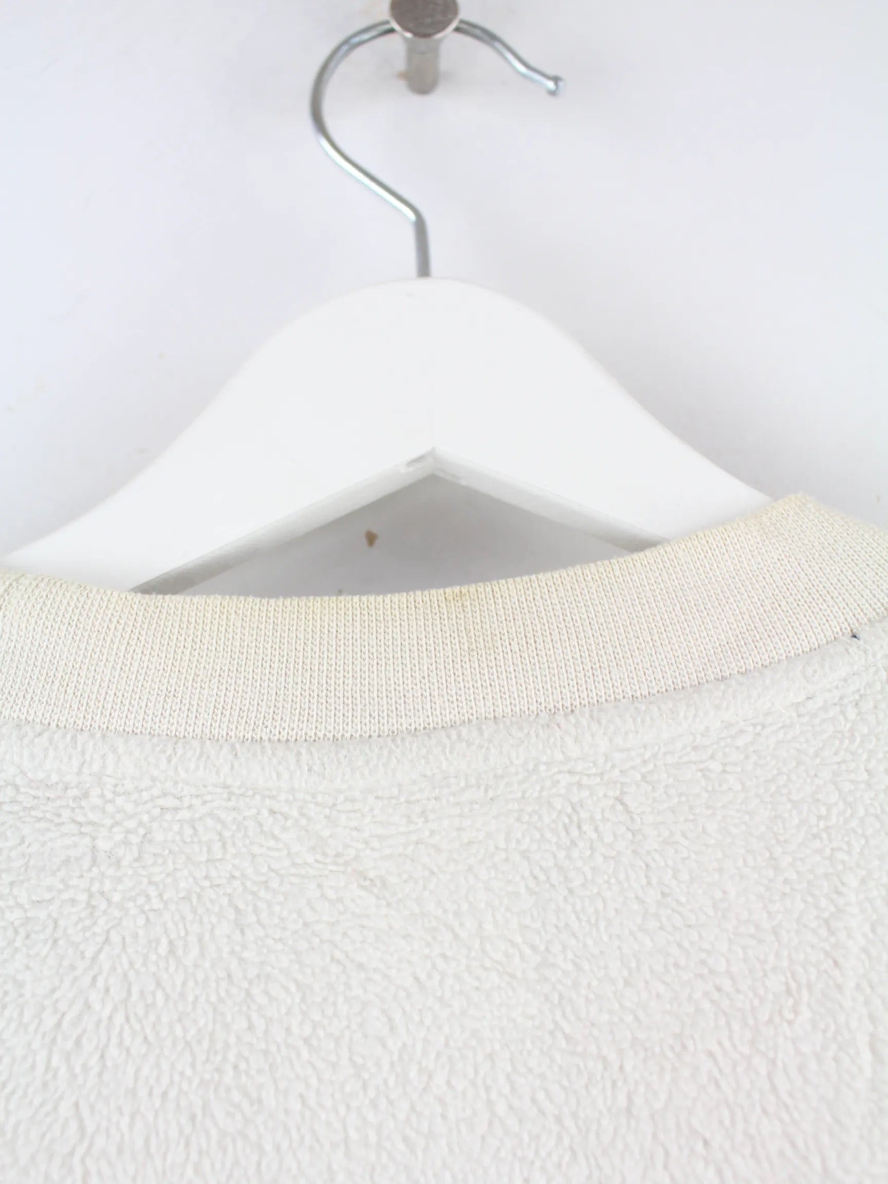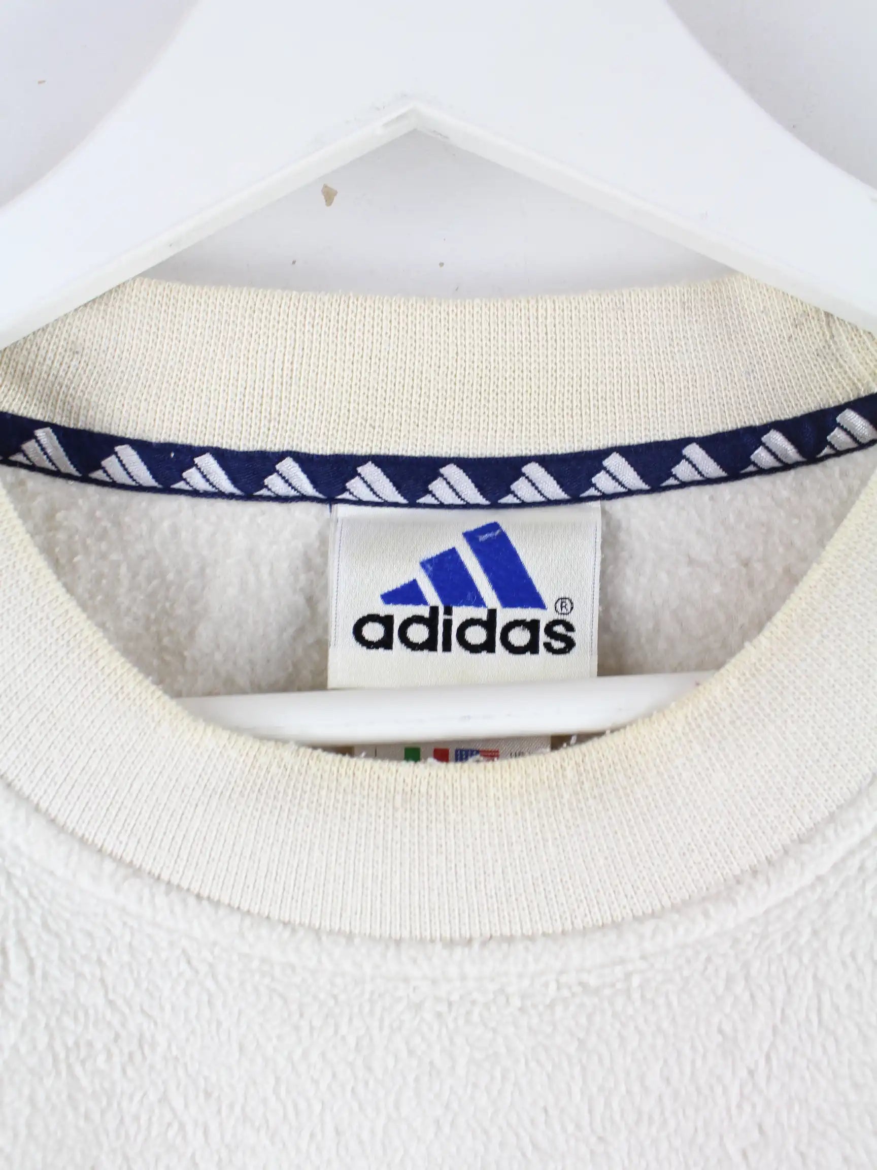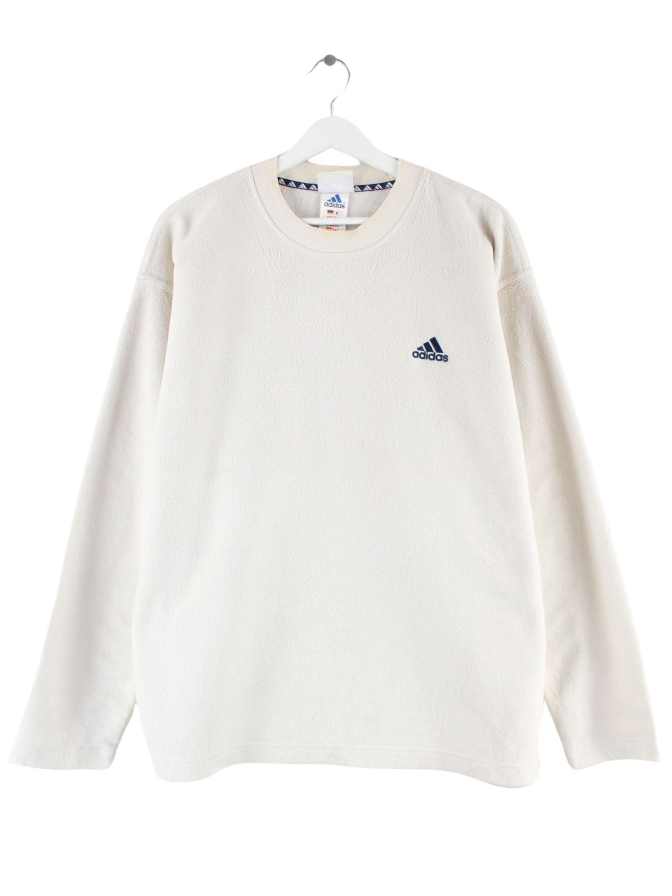 Beigefarbener Sweater der Brand Adidas aus den 90'ern in Größe M. Er ist aus gemütlichem Fleece angefertigt und in gutem Zustand zu bekommen.