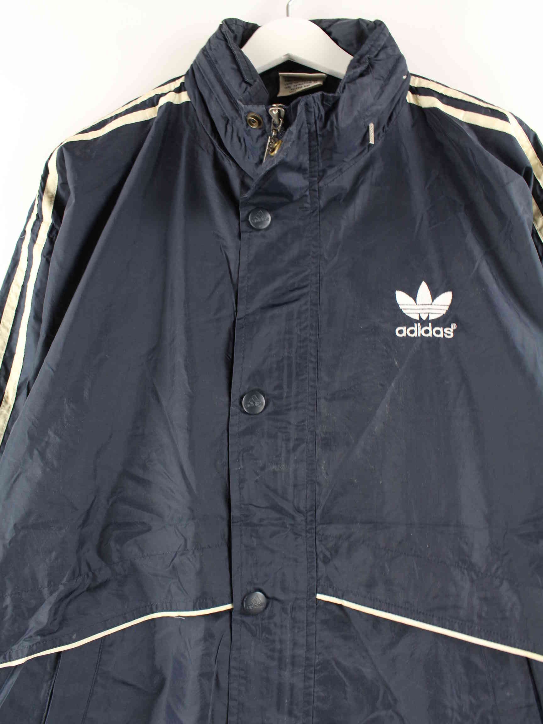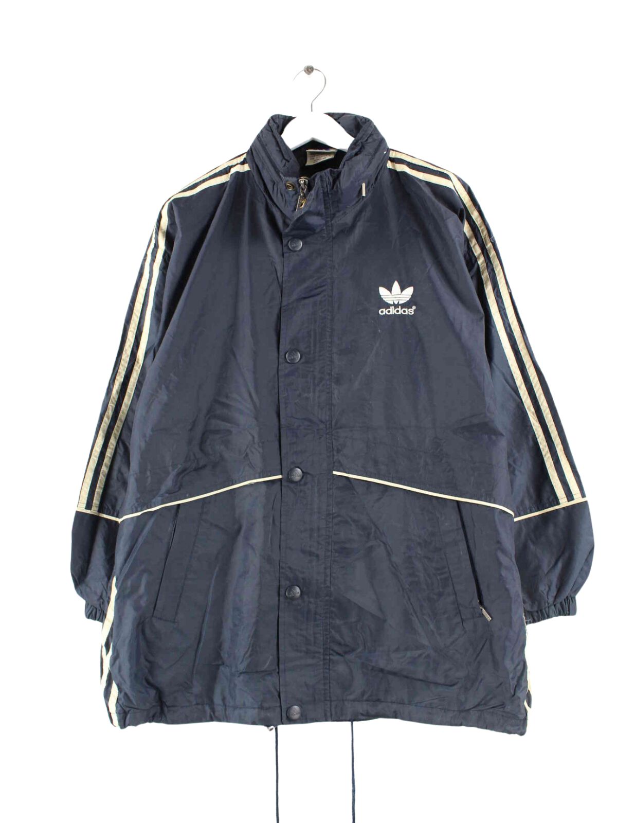Leichte Jacke vom Label Adidas in Größe M aus den 90'ern. Sie ist aus Synthetik gemacht und in Blau im Bestand.