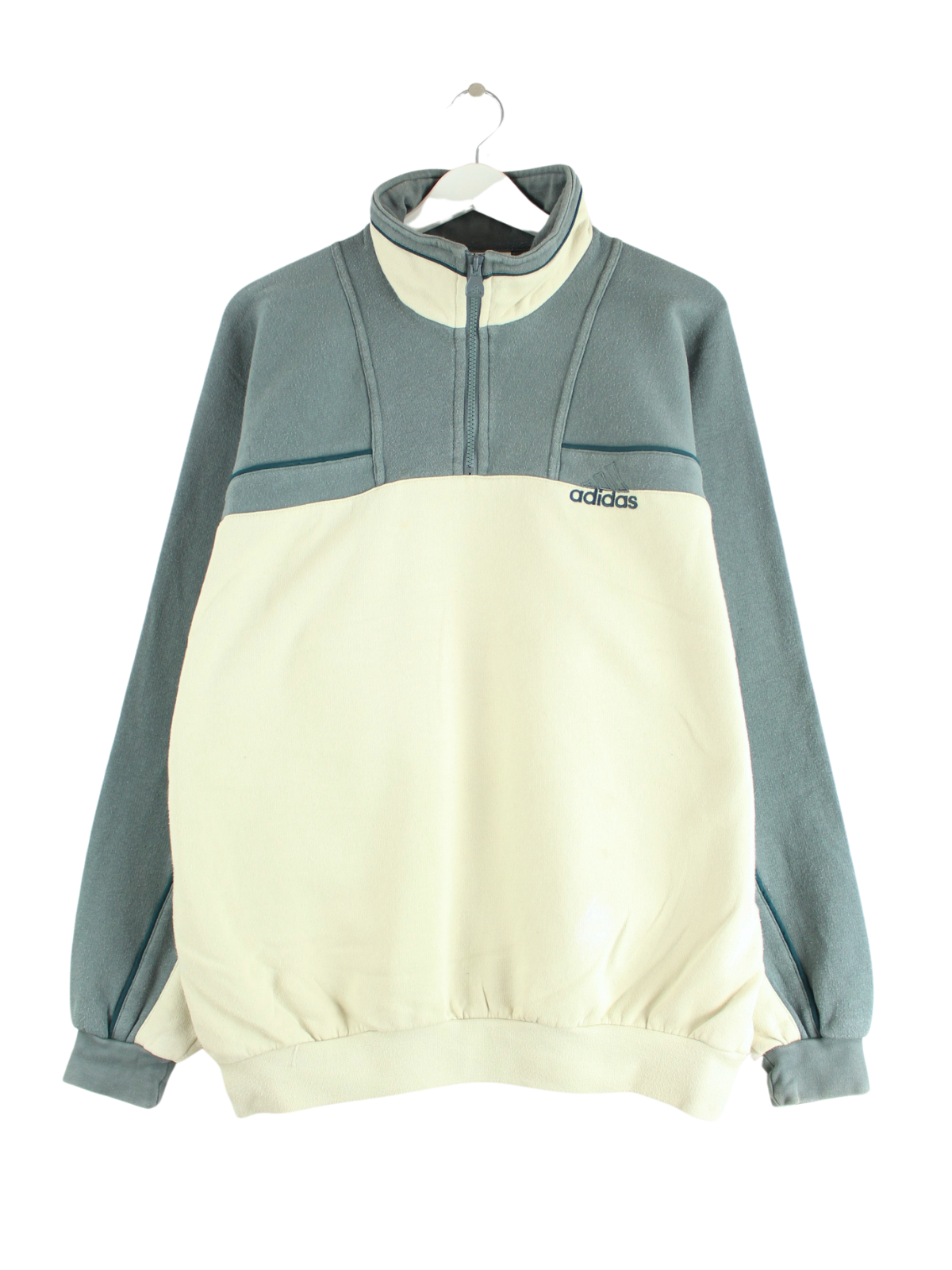 Adidas 90s Vintage Logo Embroidered Half Zip Sweater Beige L