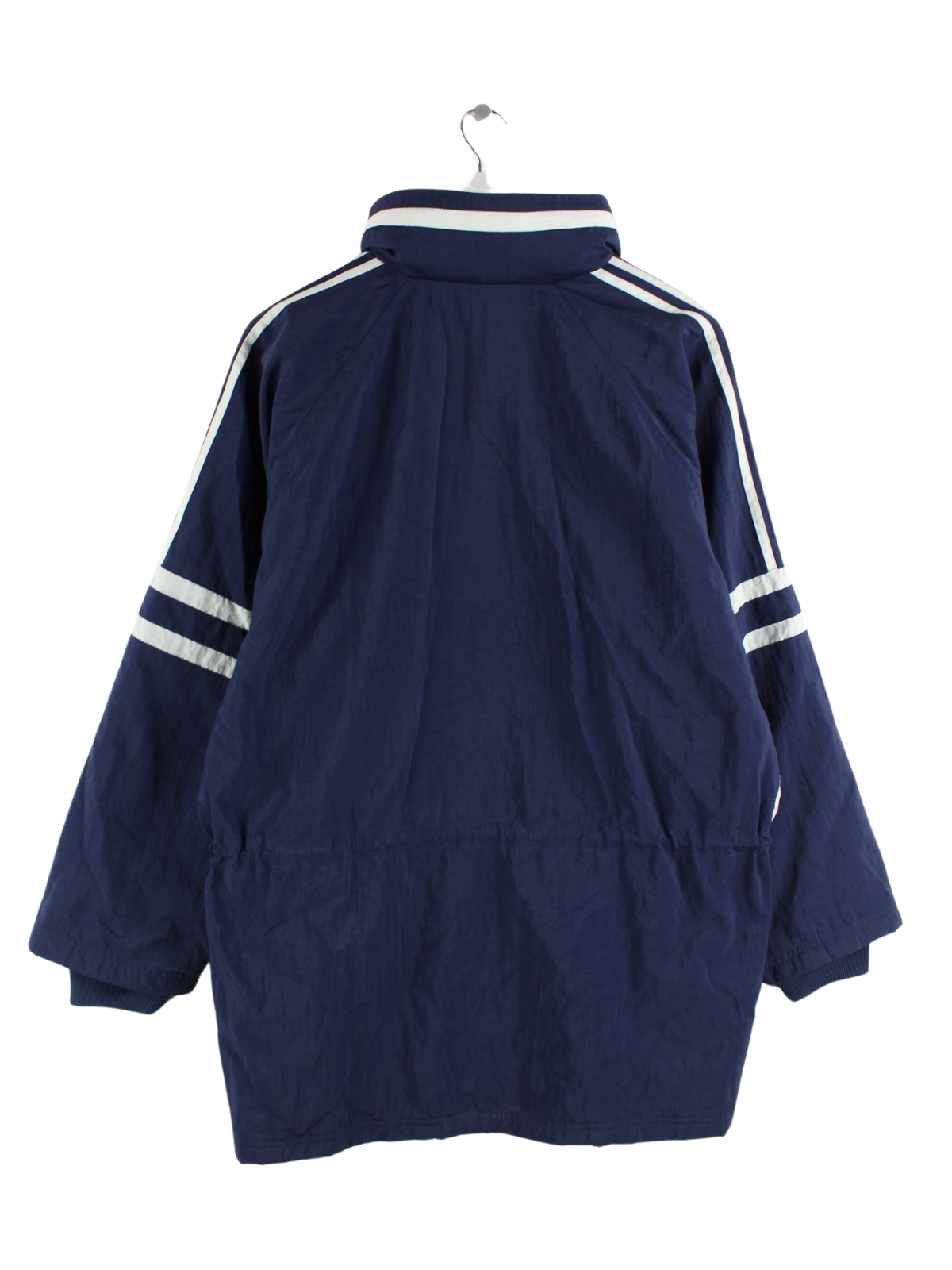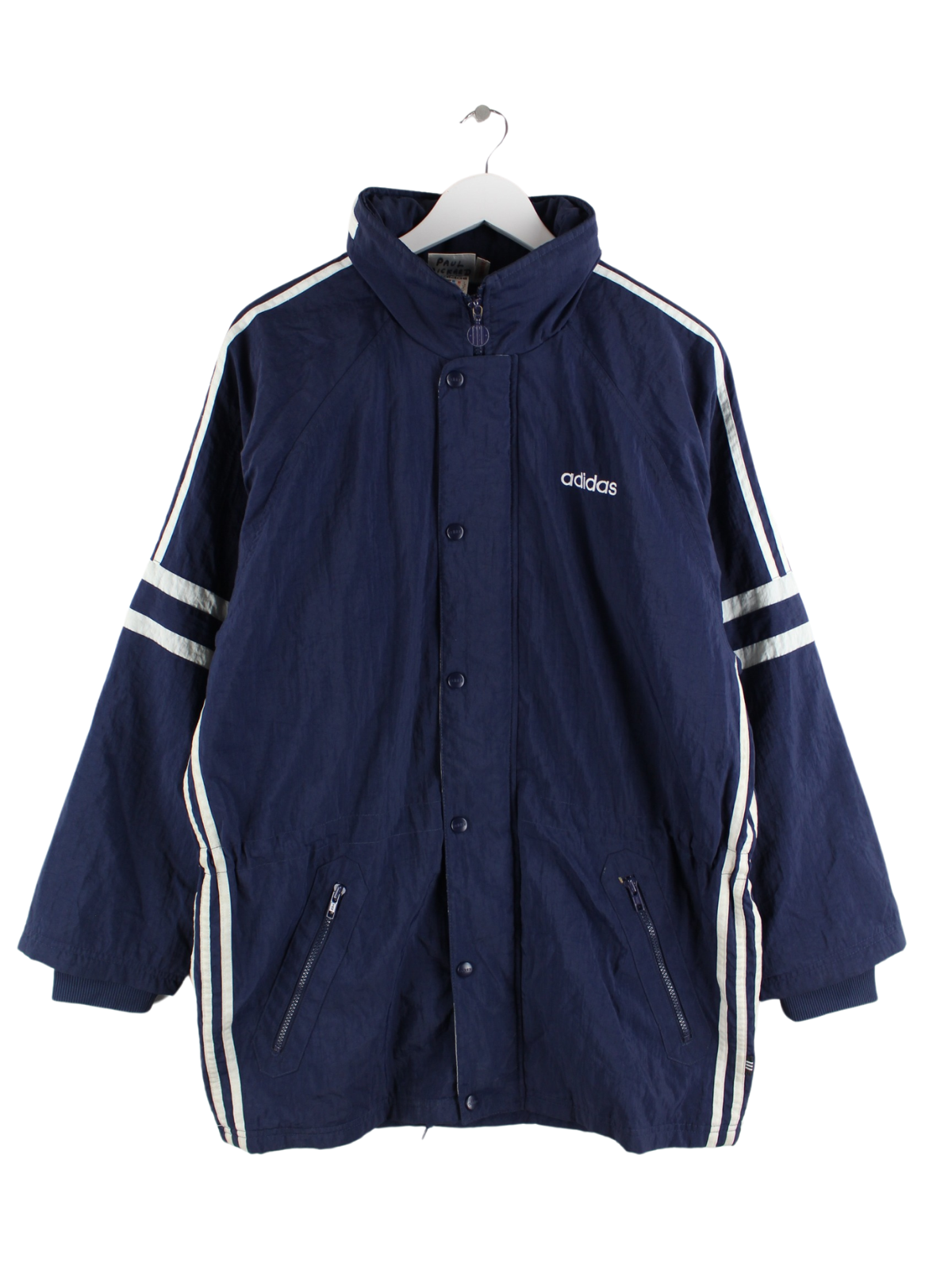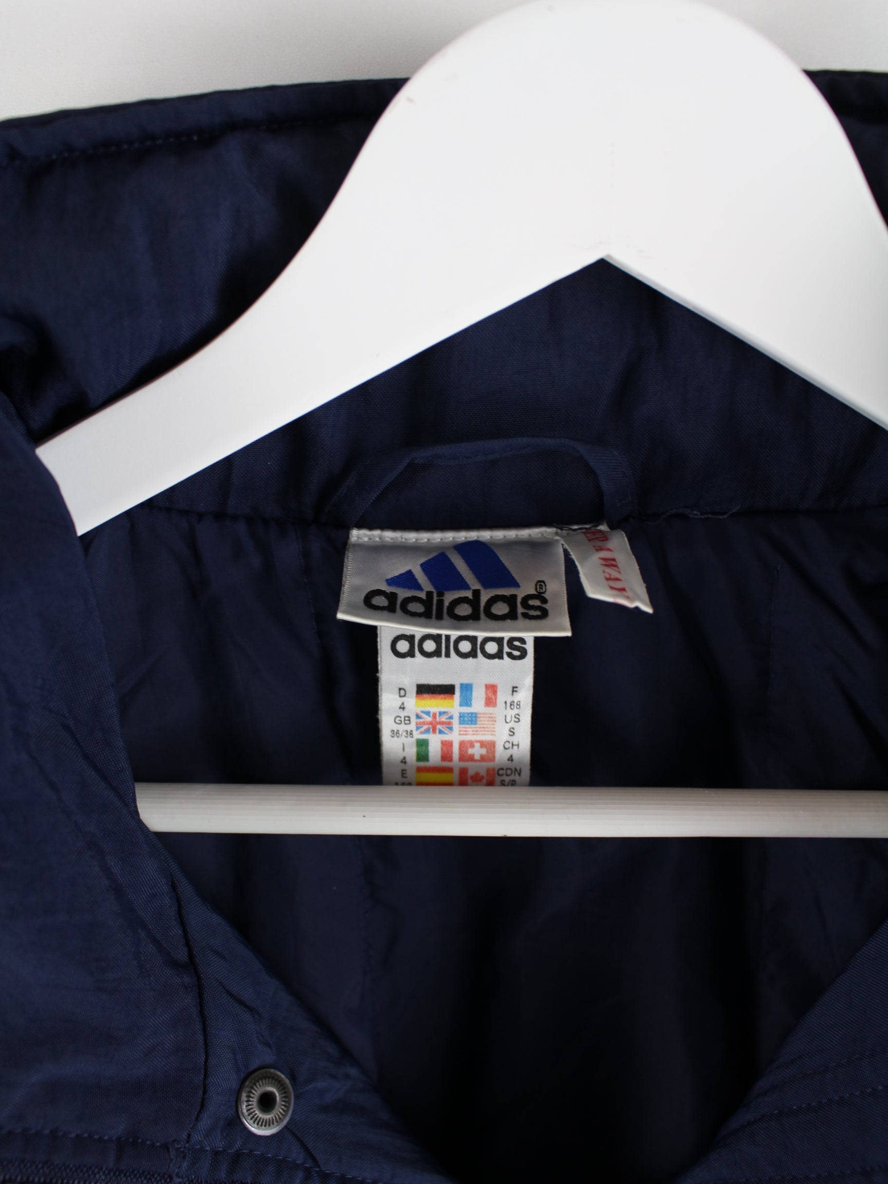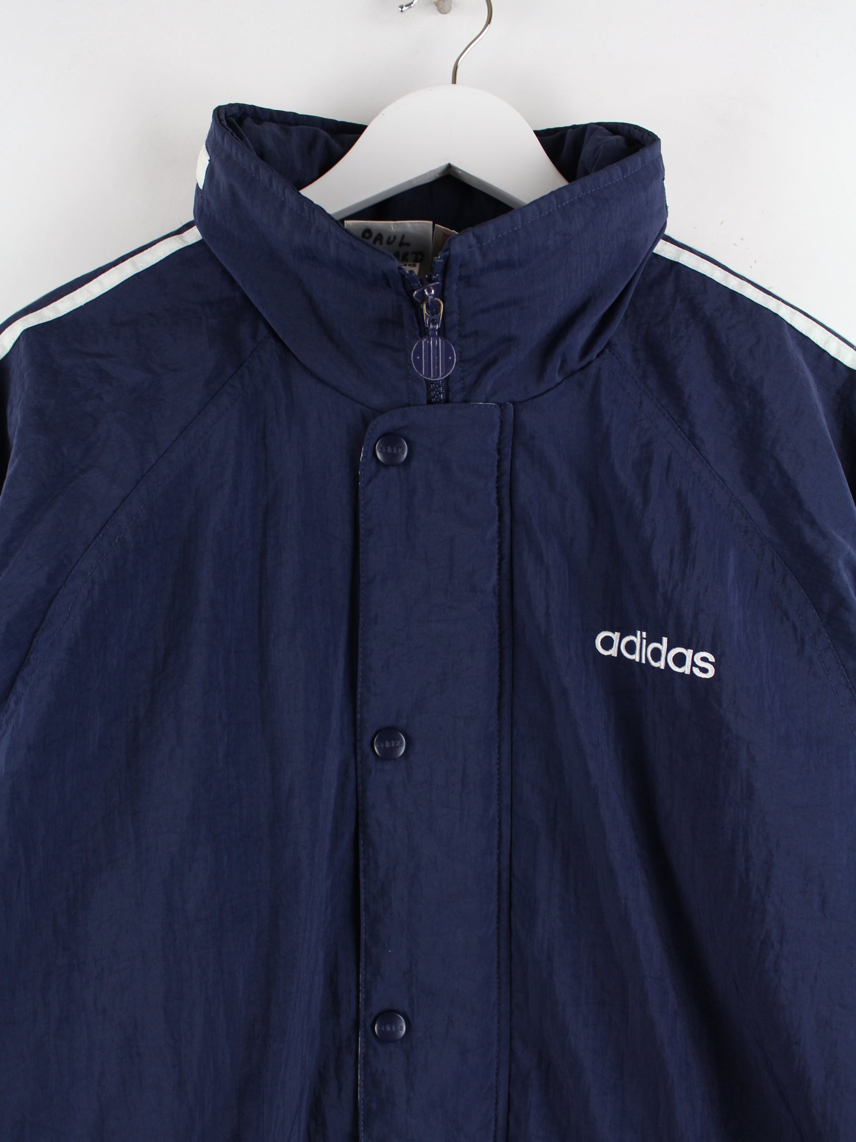 Leichte Jacke der Marke Adidas in Größe M aus den 90'ern. Sie ist aus Synthetik und in Blau lieferbar.