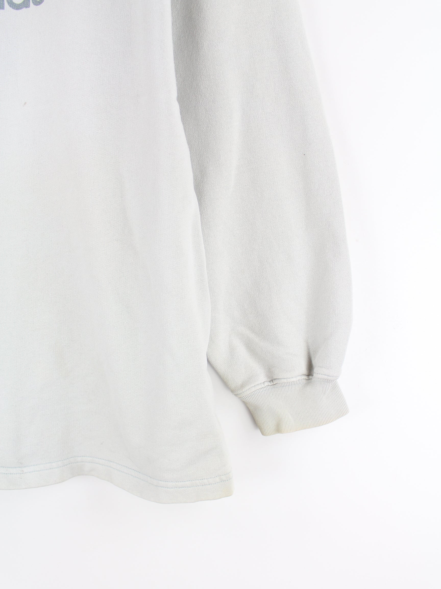 Sweater der Brand Adidas in Größe XL aus den 90'ern. Er ist aus einer Baumwollmischung gefertigt und in Grün bei uns zu bekommen. Mit tollem Vintage Print.