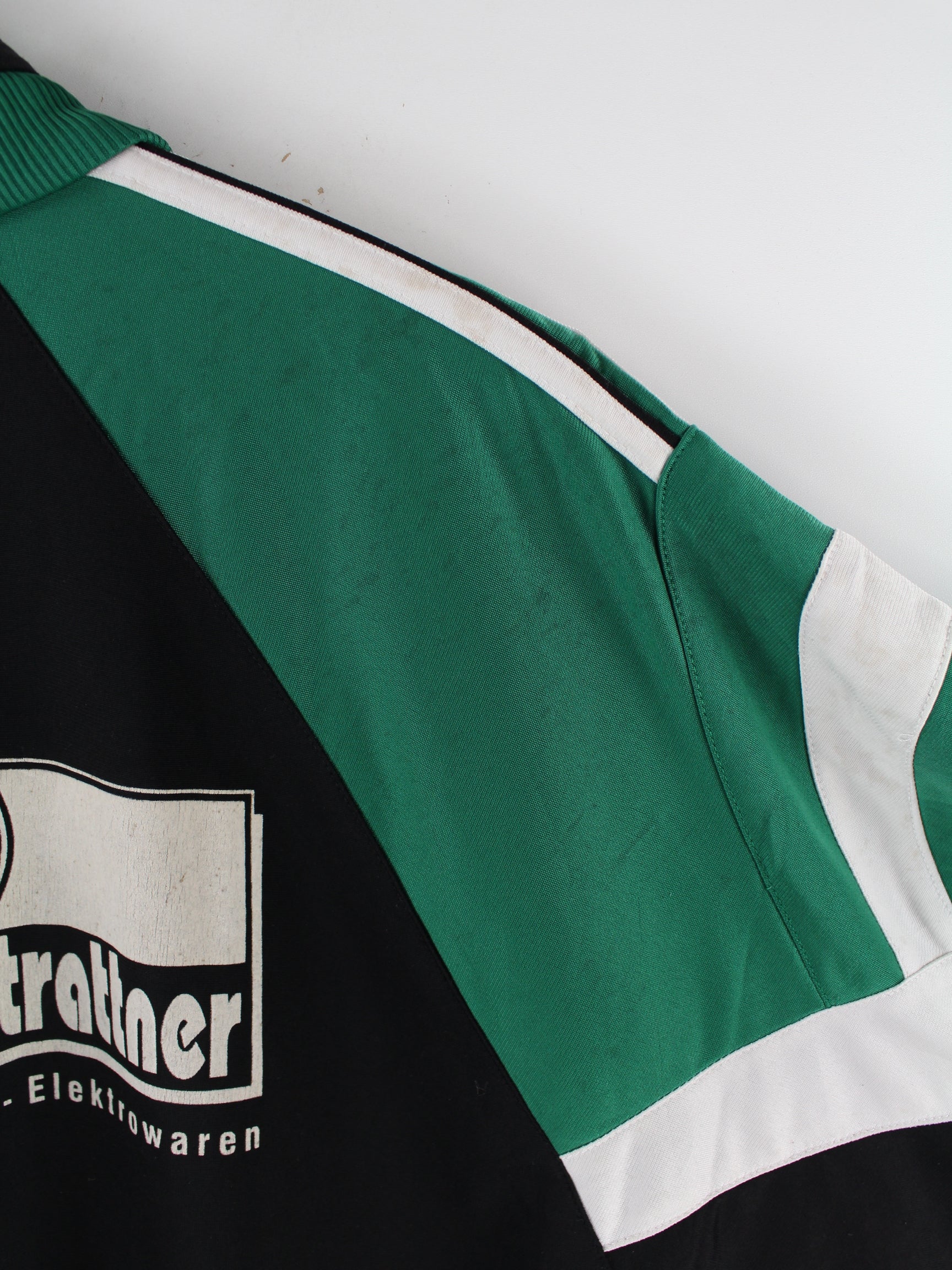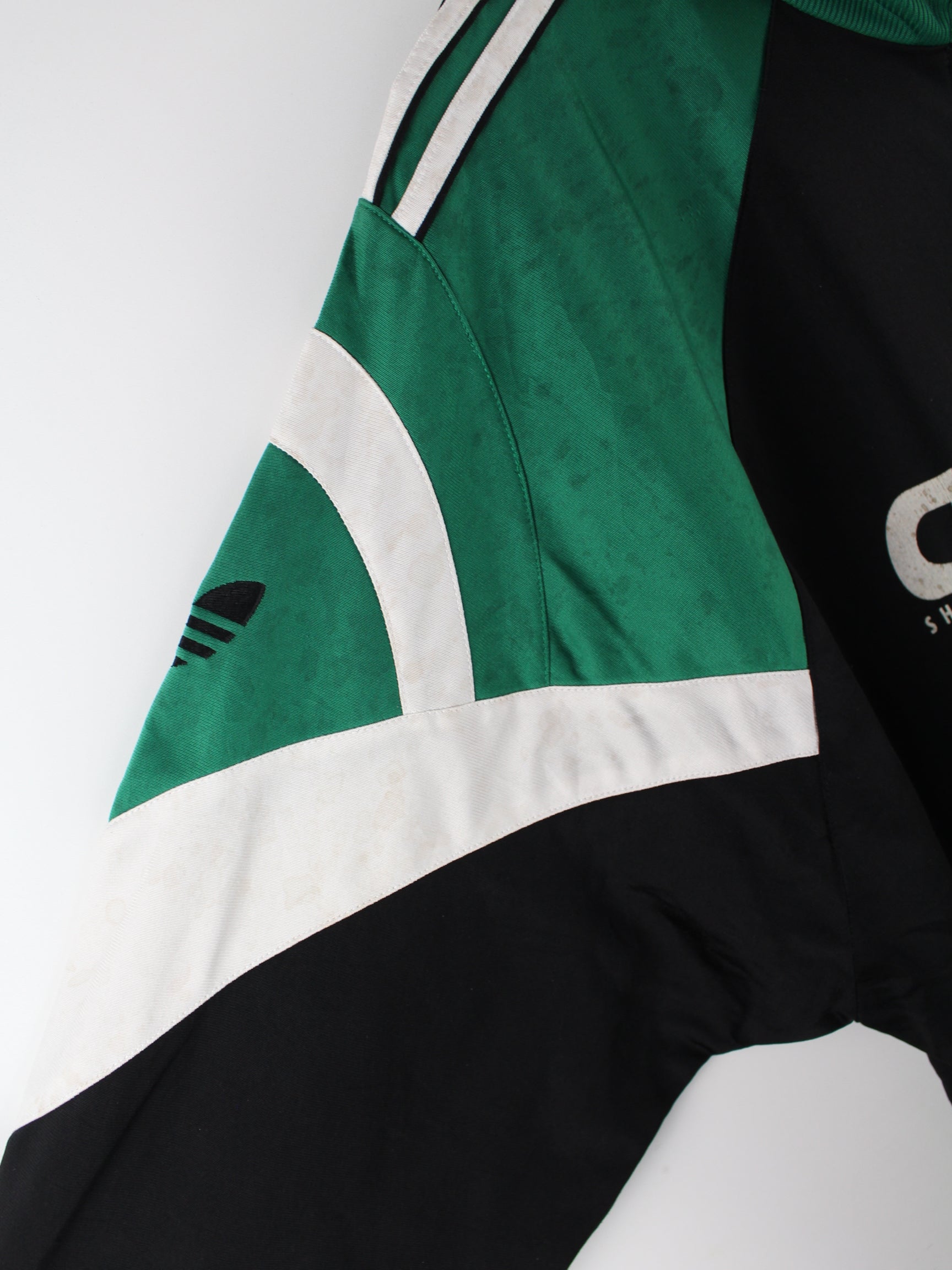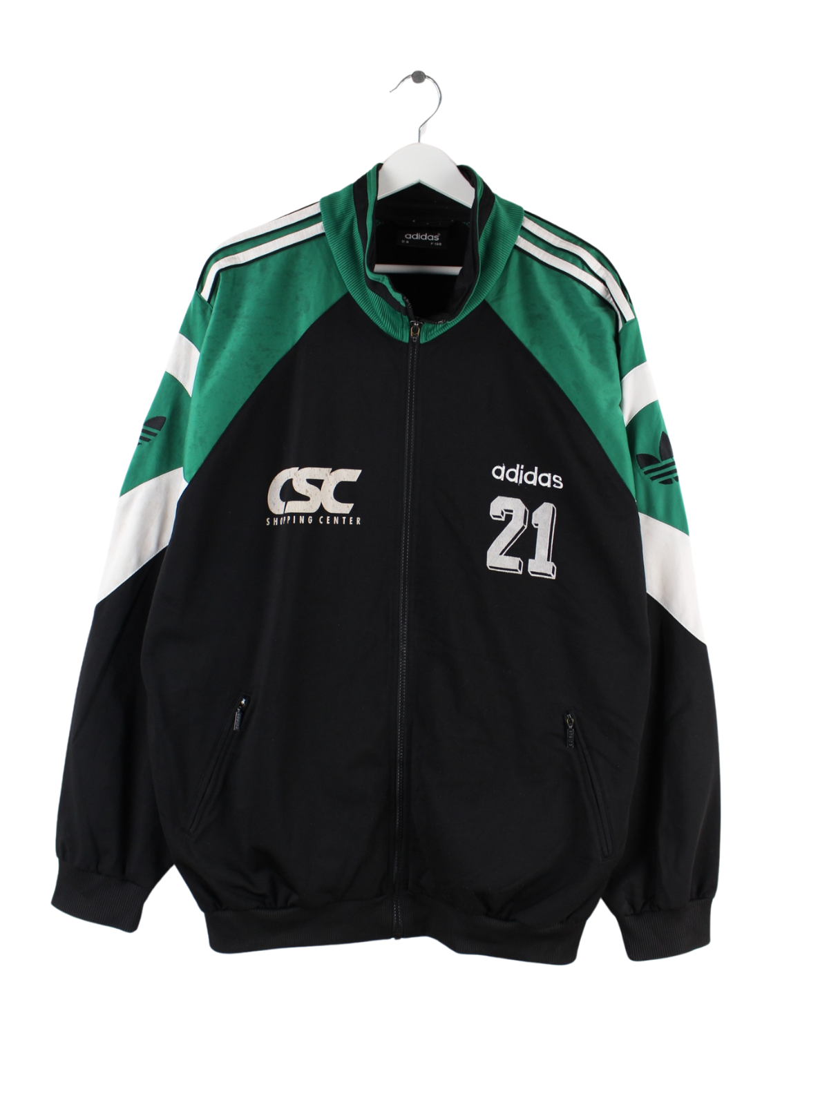 Schwarze Trainingsjacke der Brand Adidas aus den 90'ern in Größe XXL. Sie ist aus Synthetik . Den Zustand würden wir als 'In Ordnung' bezeichnen (vergl. Bilder).Mit schönem Vintage Print.