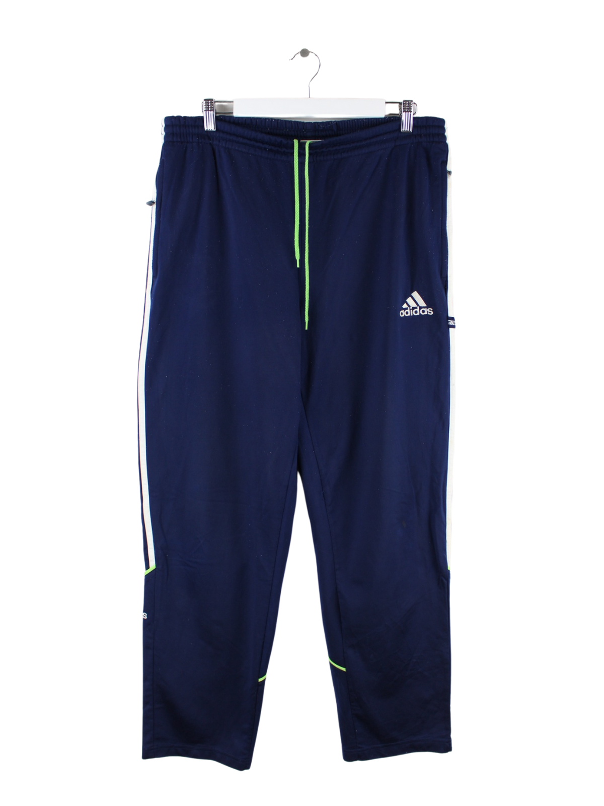 Track Pants von Adidas in Größe XL aus den 90'ern. Sie sind aus Synthetik hergestellt und in Blau lieferbar.