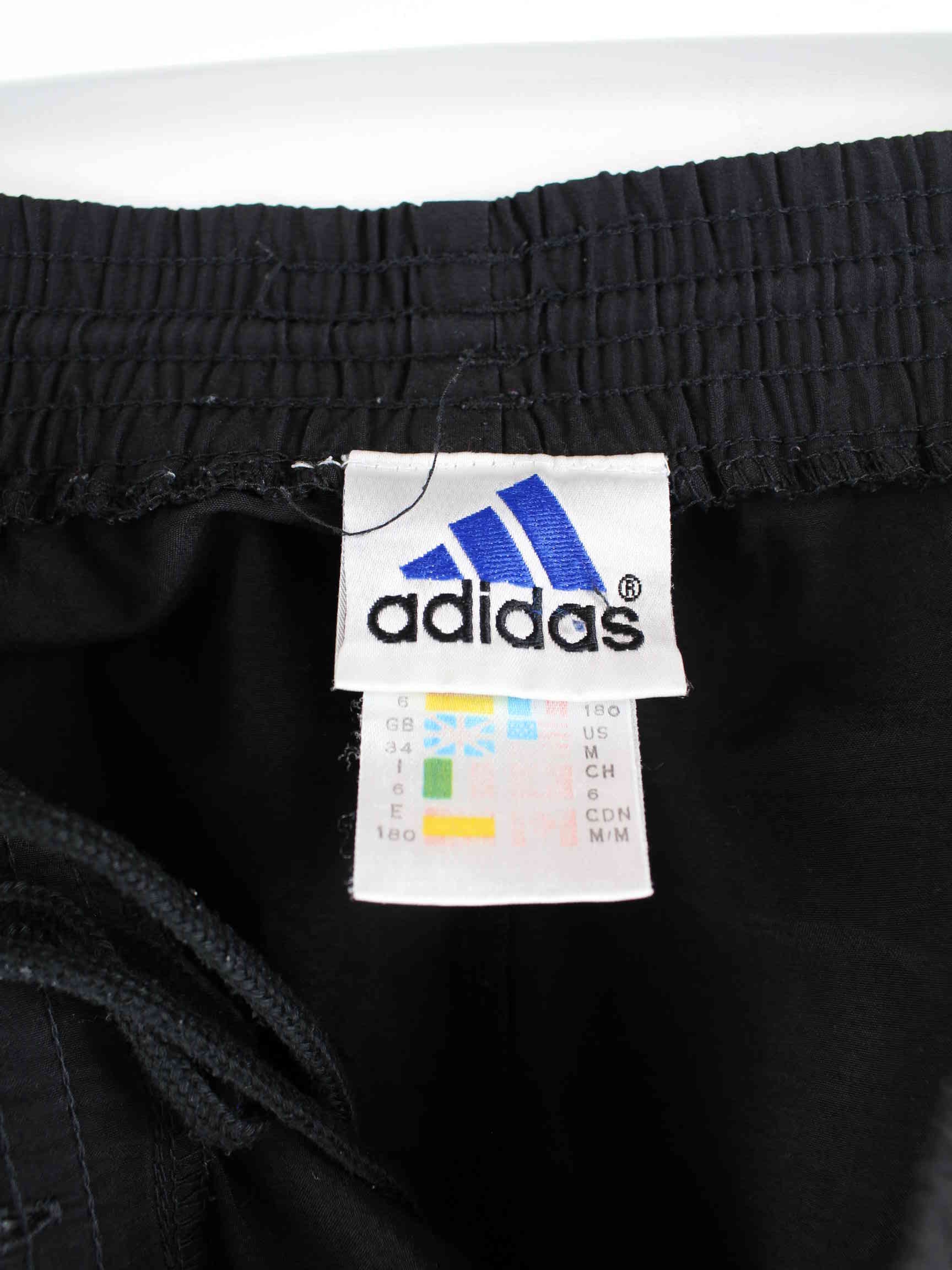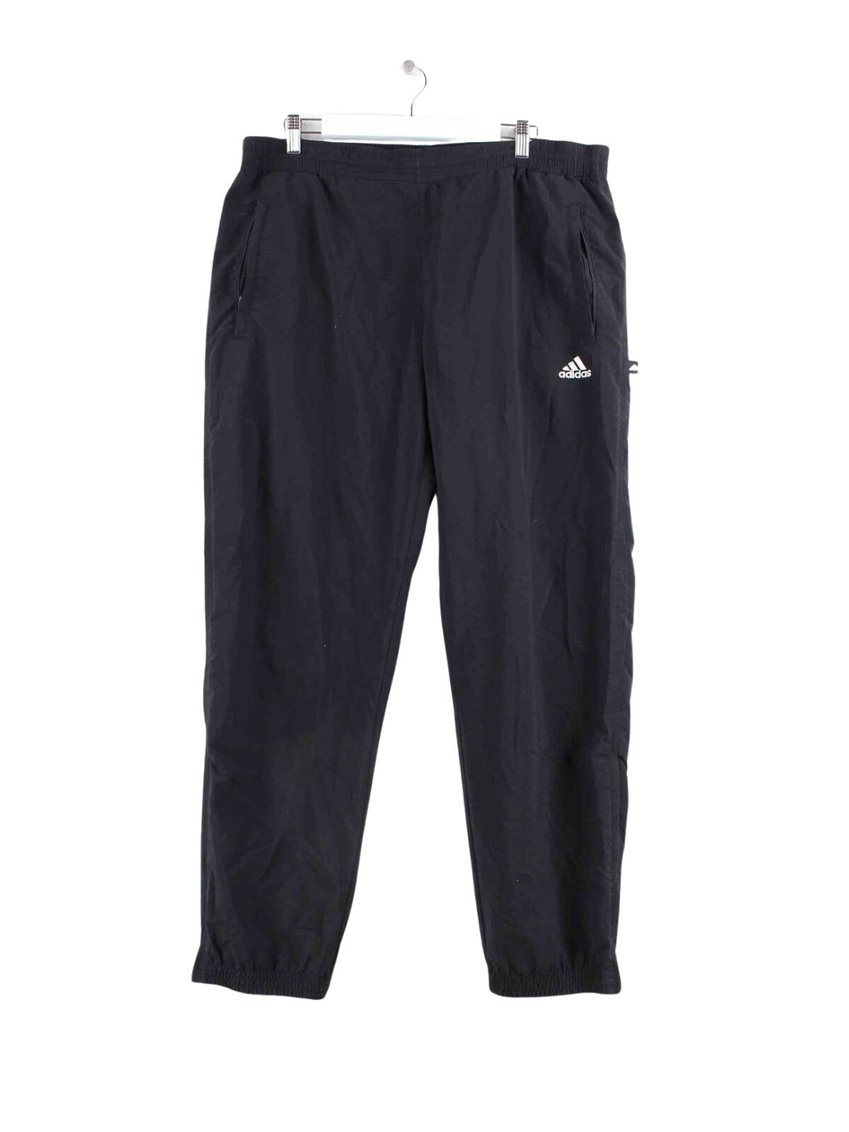 Schwarze Track Pants aus dem Hause Adidas aus den 90'ern in Größe XL. Sie sind aus Synthetik produziert und in gutem Zustand zu haben.