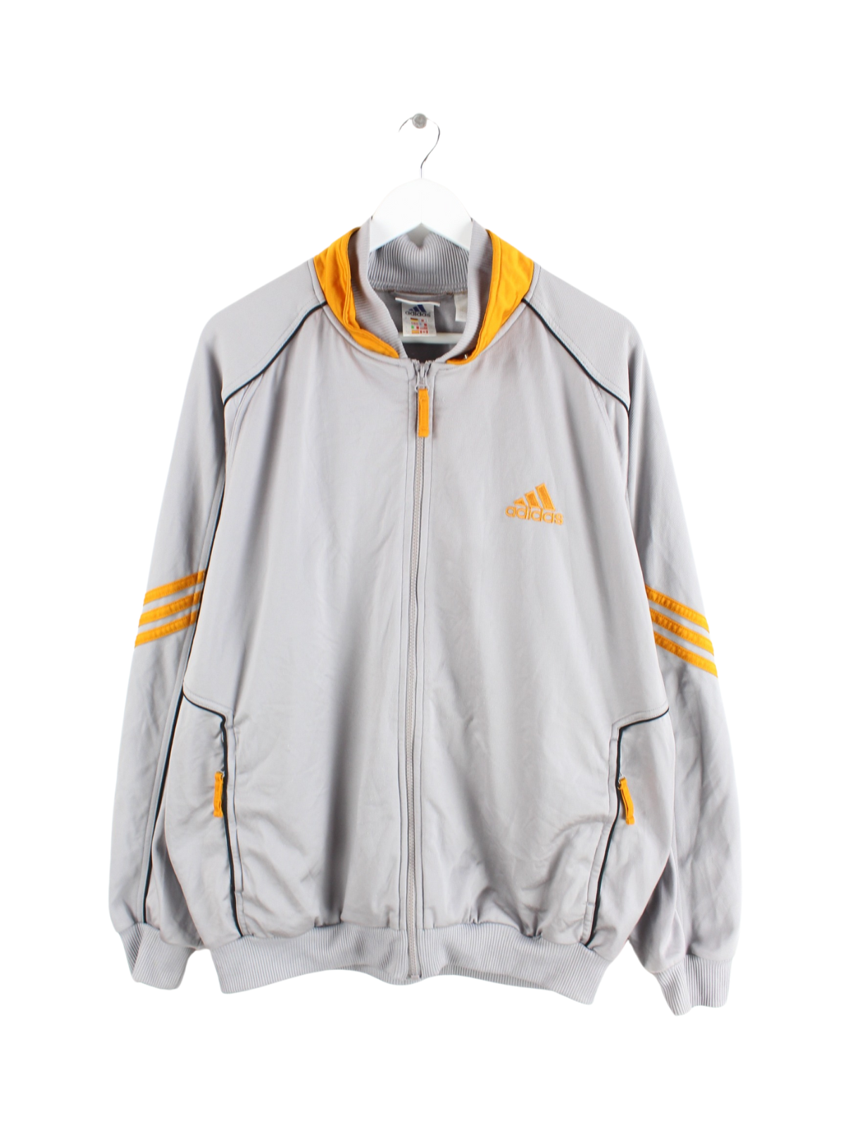 Graue Trainingsjacke von Adidas aus den 90'ern in Größe XXL. Sie ist aus Synthetik produziert und in gutem Zustand in Stock.