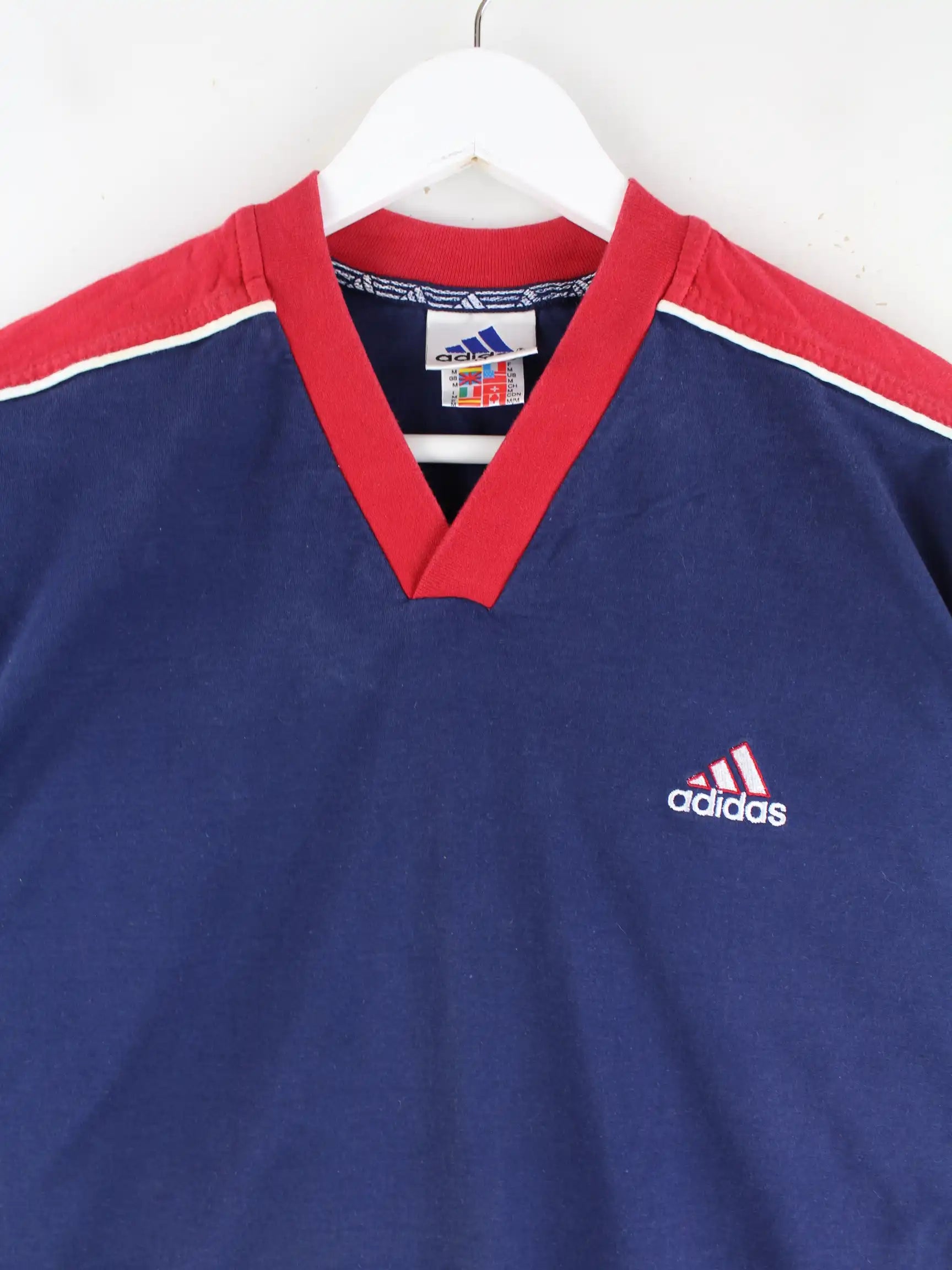 Adidas 90s Vintage V-Neck T-Shirt Blau M
