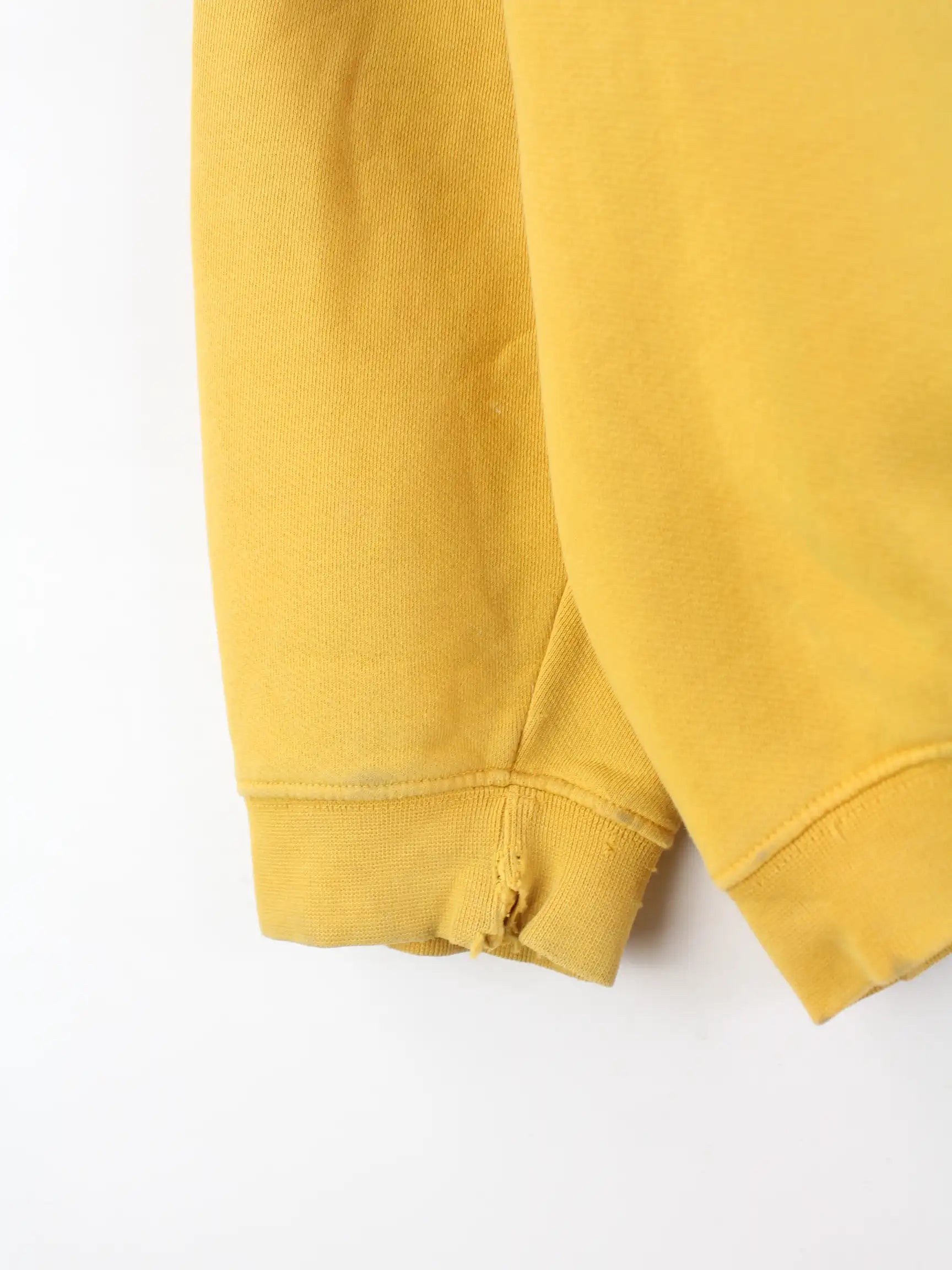 Sweater der Marke Adidas mit gestickten Motiven in Größe XXL aus den 90'ern. Er ist aus einer Baumwollmischung und in Gelb im Angebot.
