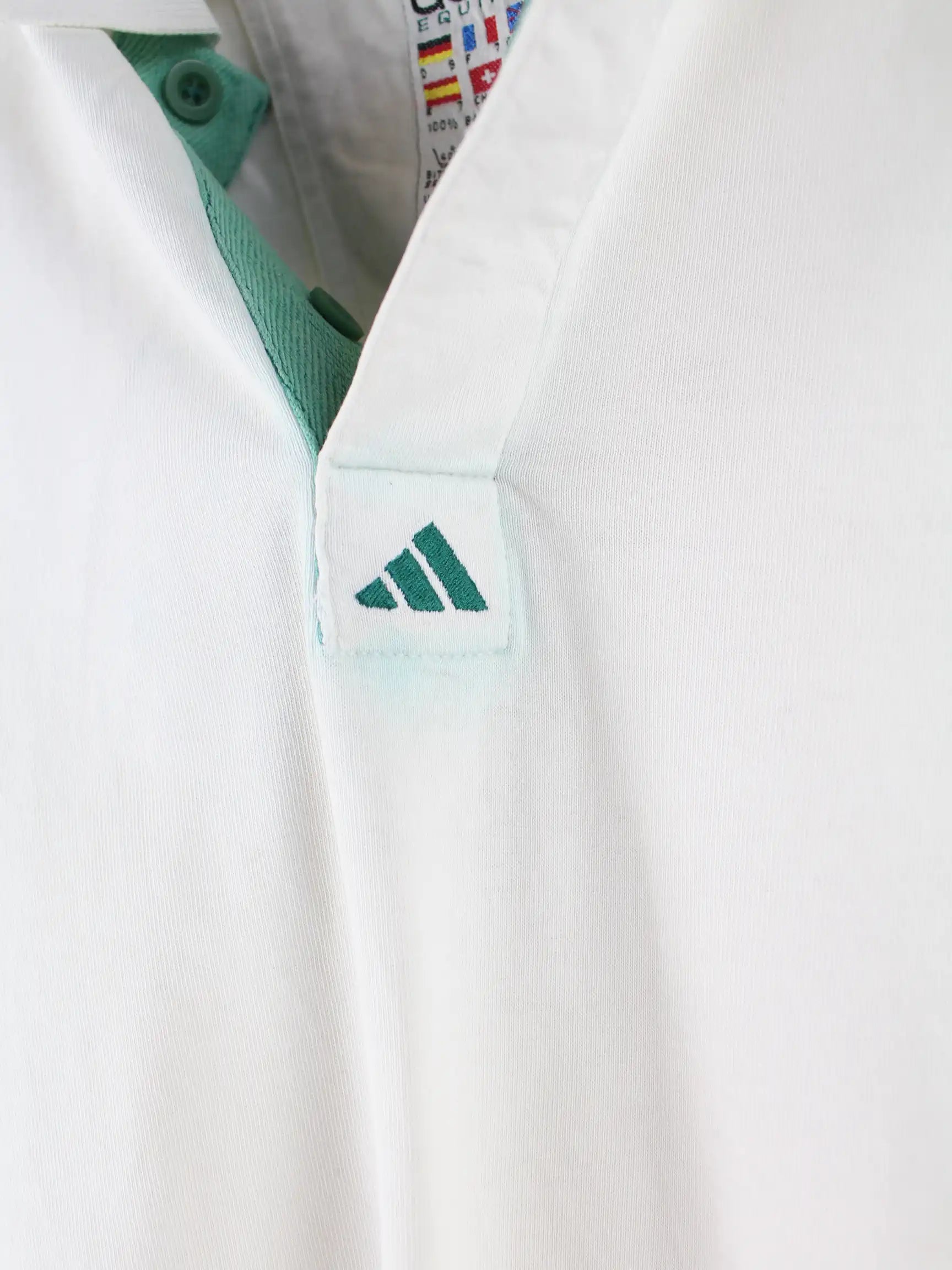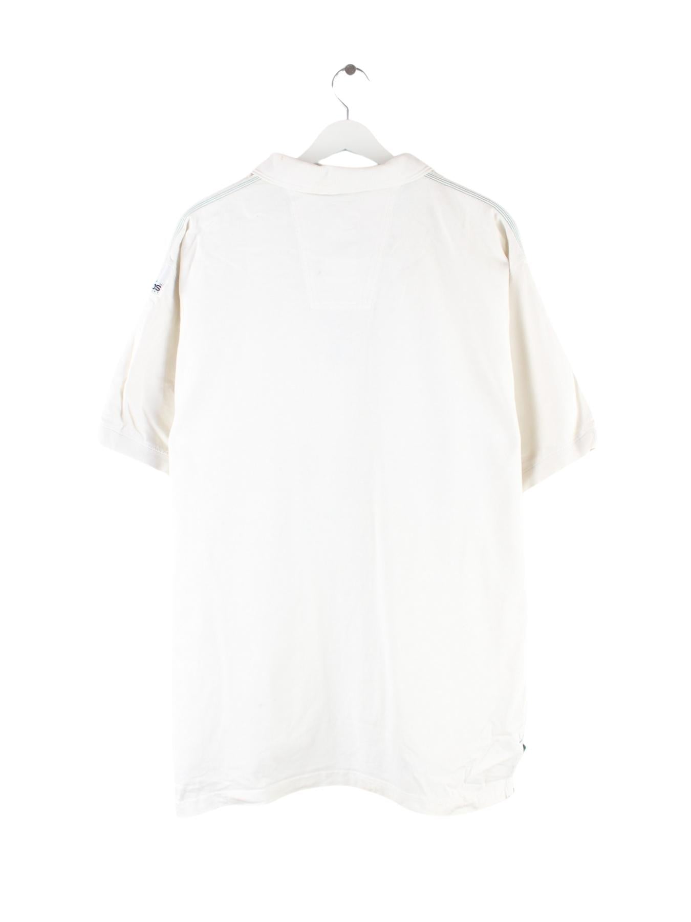 Poloshirt vom Brand Adidas in Größe XXL aus den 90'ern. Es ist aus Baumwolle gefertigt und in Weiß auf Lager.