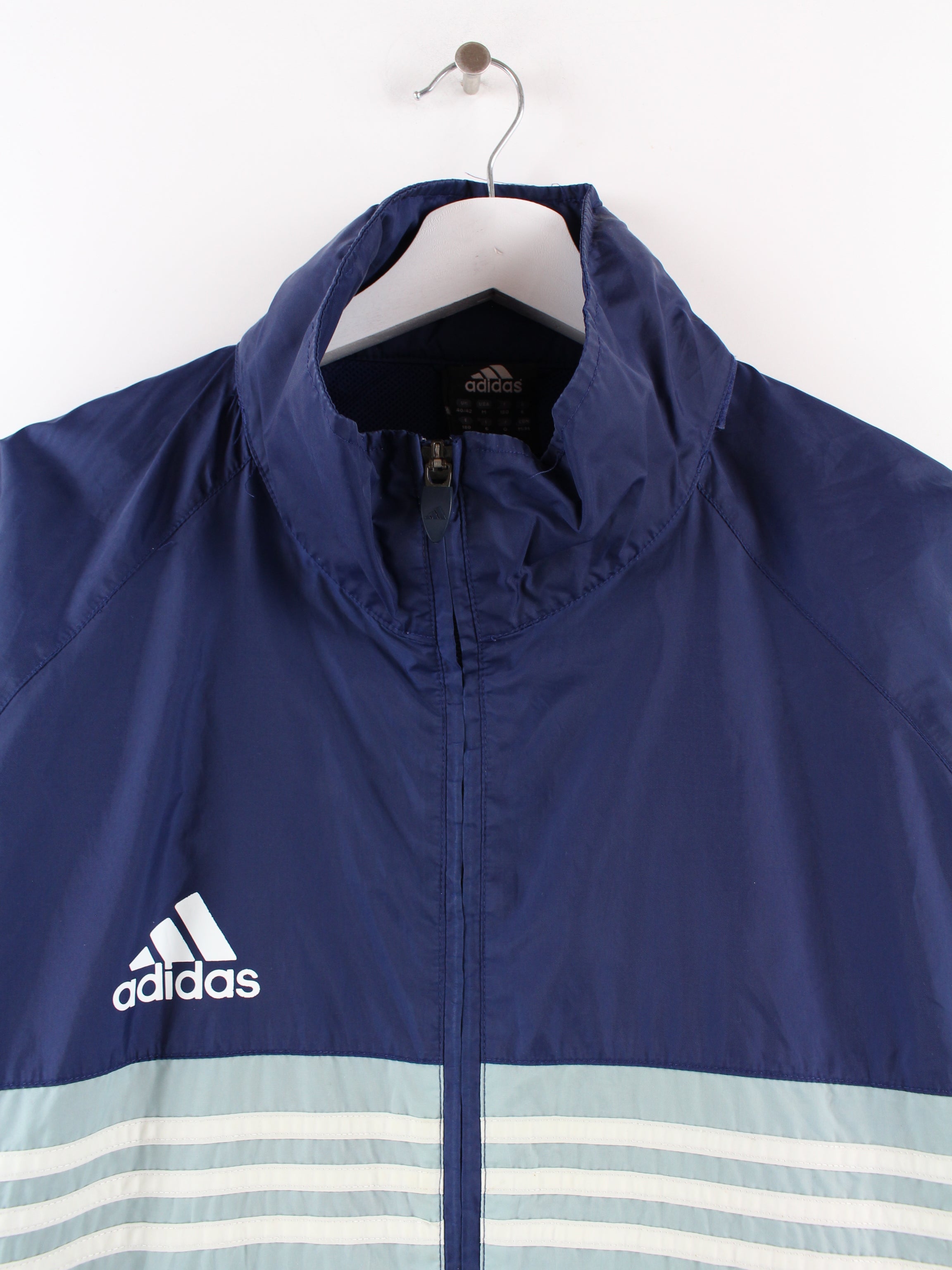 Blaue Vintage Trainingsjacke, der Marke Adidas.