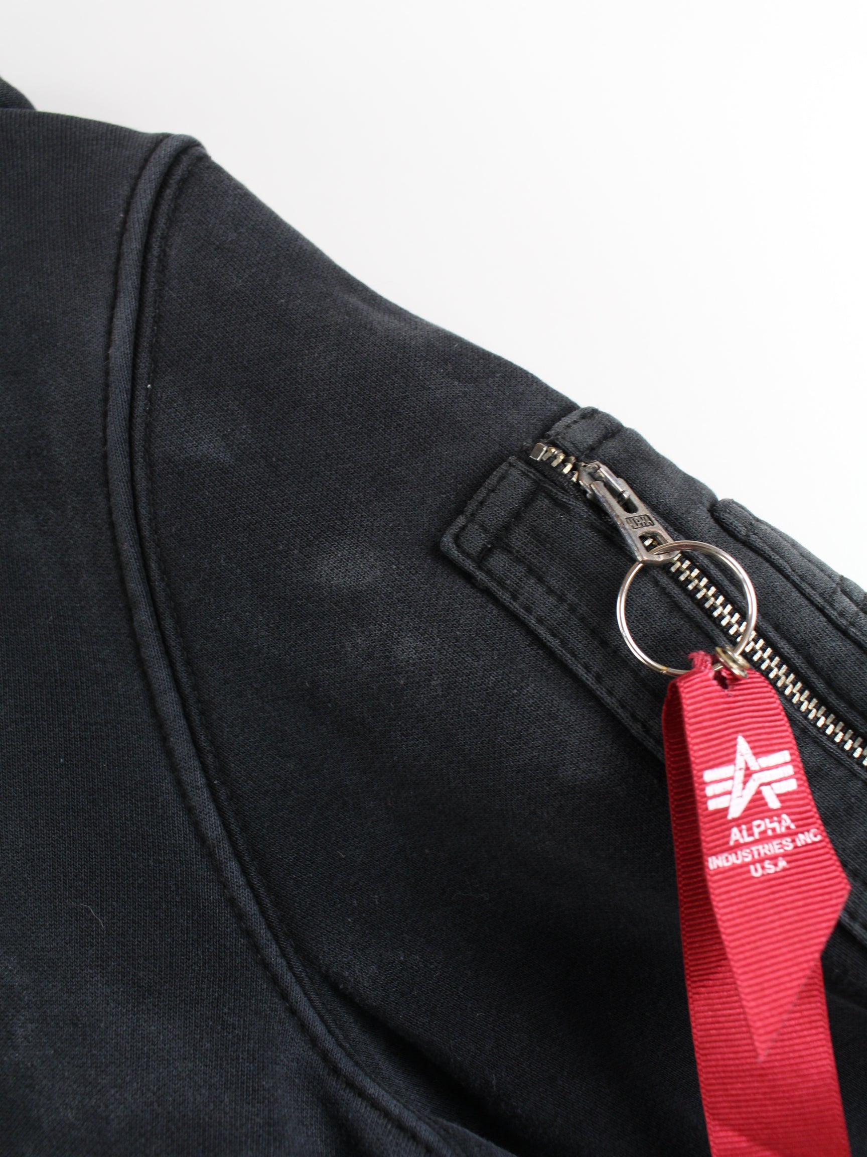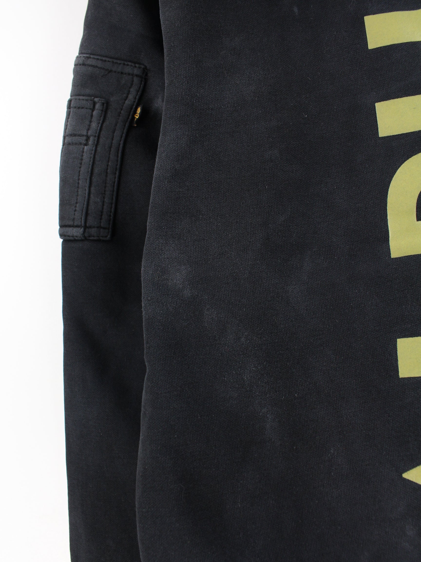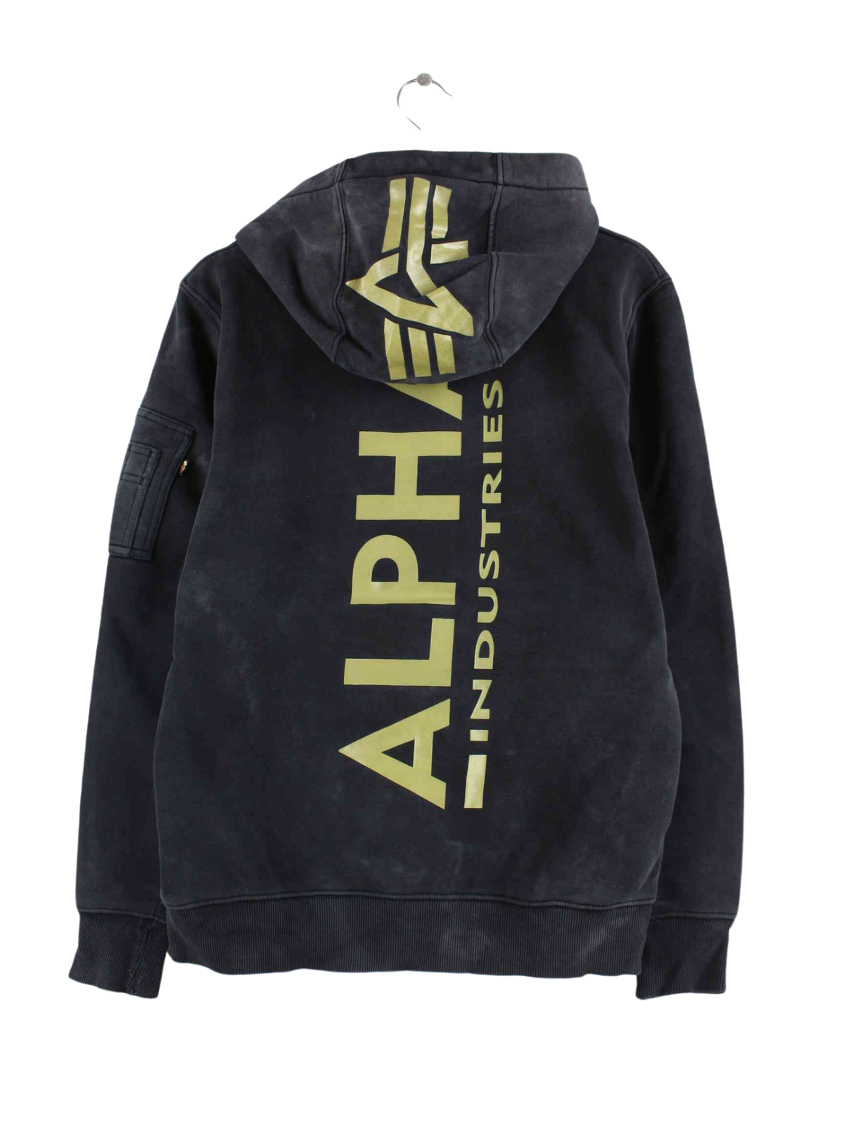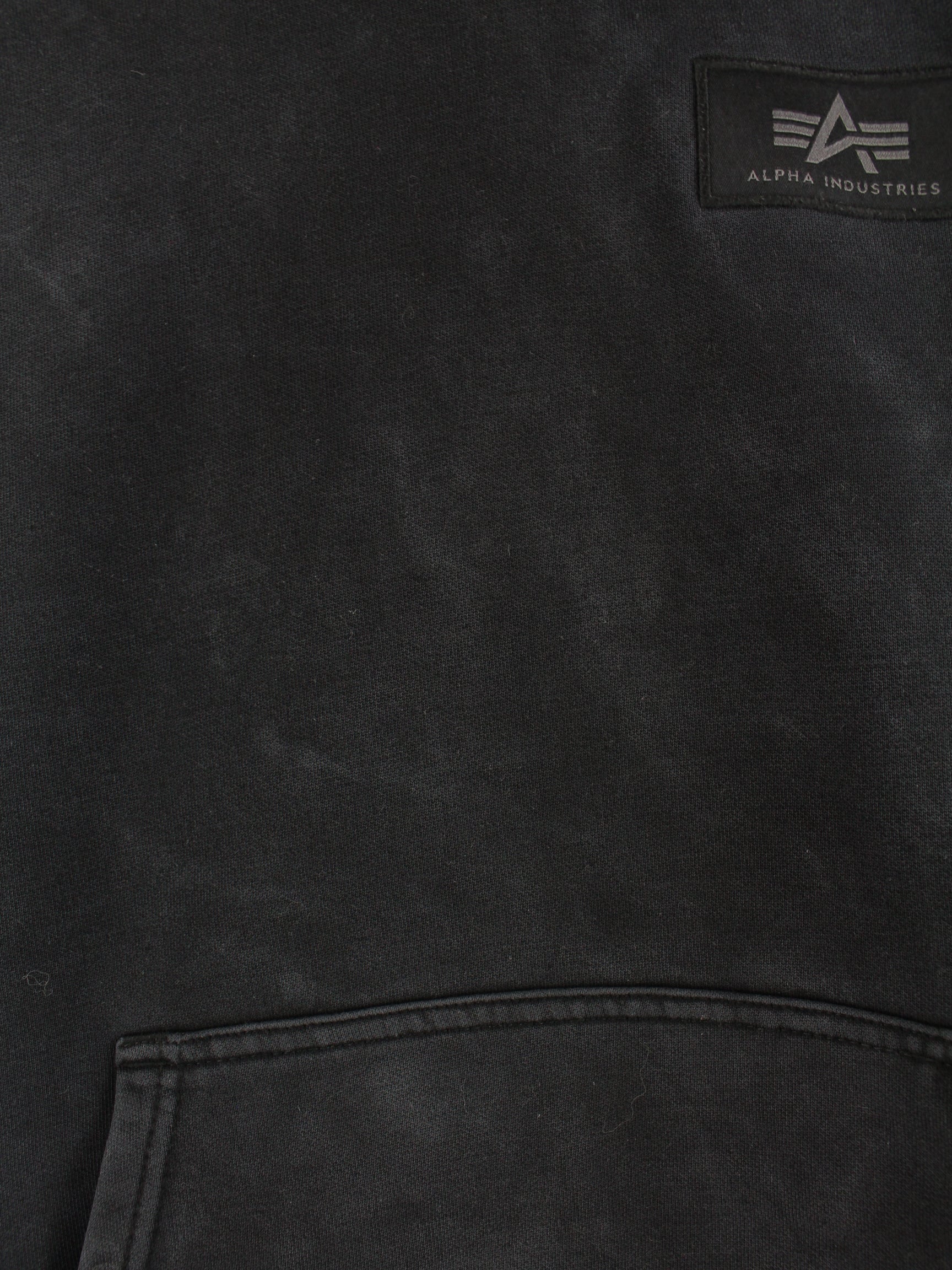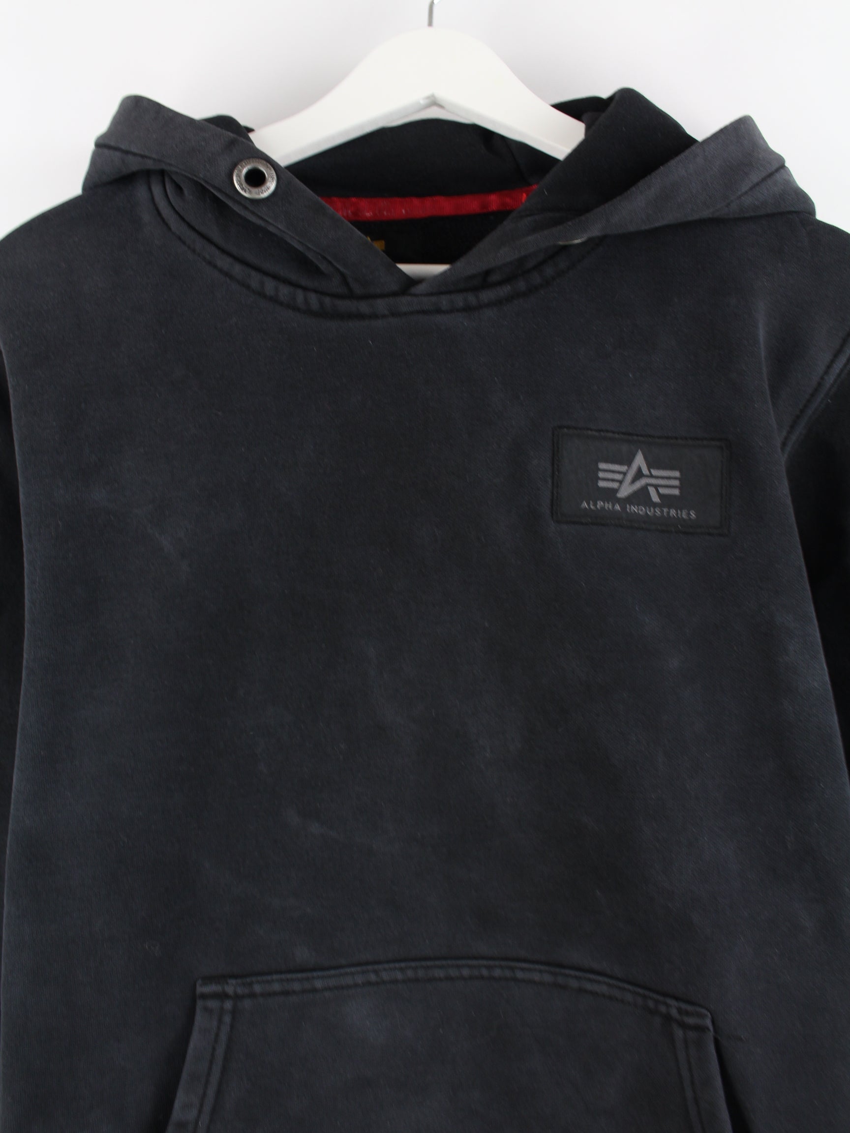 Hoodie vom Label Alpha Industries in Größe S. Er ist aus einer Baumwollmischung angefertigt und in Schwarz vorrätig.